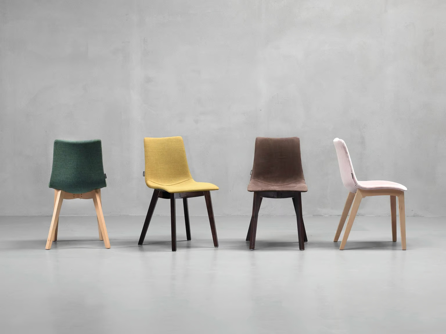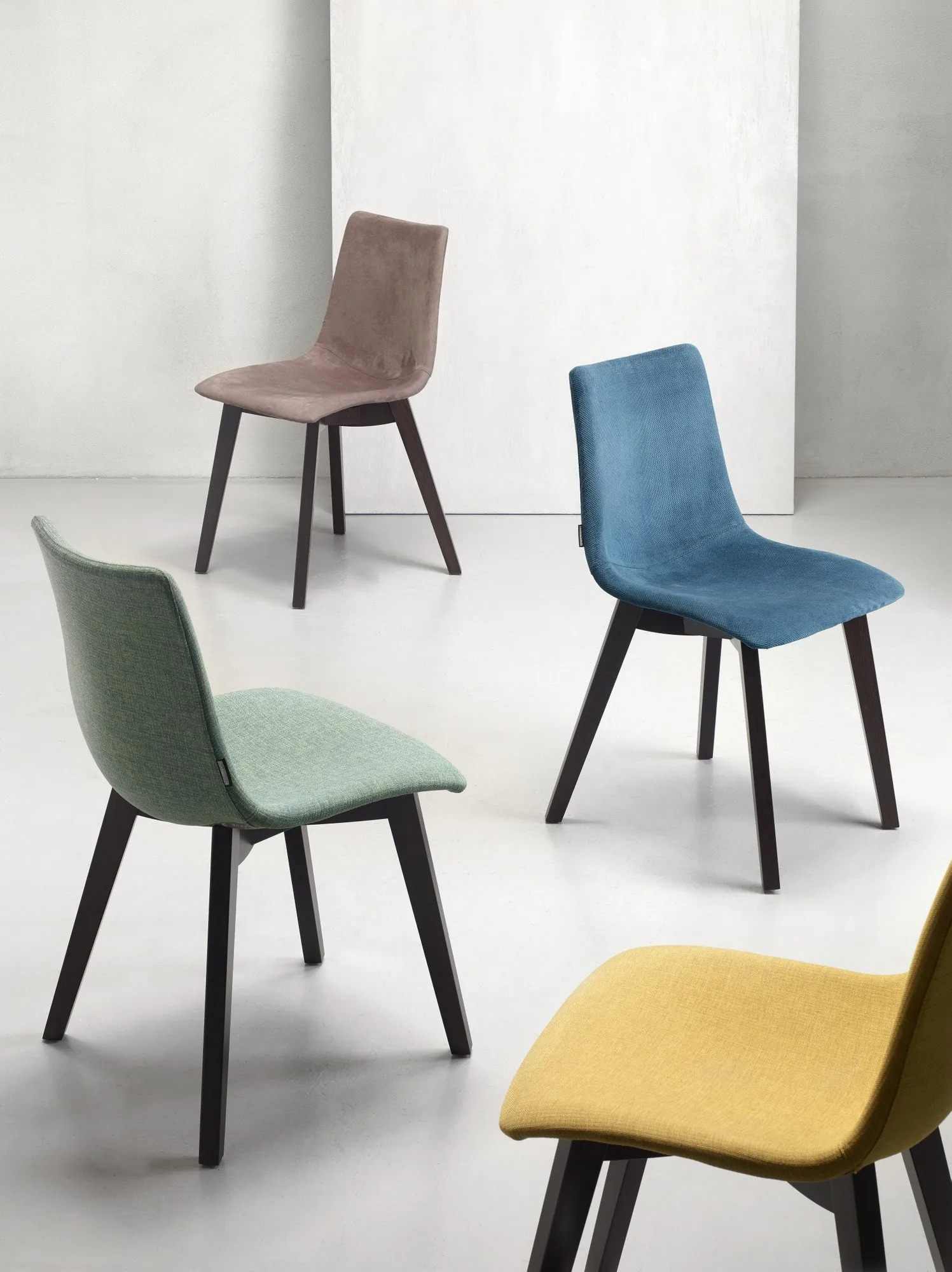 The NATURAL ZEBRA POP by Scab Design features an upholstered main body with an antishock polycarbonate core, supported by a beech frame available in natural or wenge stain. This modern design table and chair set is ideal for dining tables in restaurants, conference room furniture, and café chairs in coworking spaces. The 2014 version introduces new fabrics and innovative colors, appealing to design and comfort enthusiasts. Available in mink brown and saffron with a wenge beech frame, or blush pink, mink brown, and jade green with a natural beech frame, the collection also includes peacock green textures with chrome-plated steel or anthracite painted bodies. The durable seating and ergonomic, stackable chairs make it suitable for event spaces, banquet halls, and educational institutions. Price includes two pieces with the same configuration.