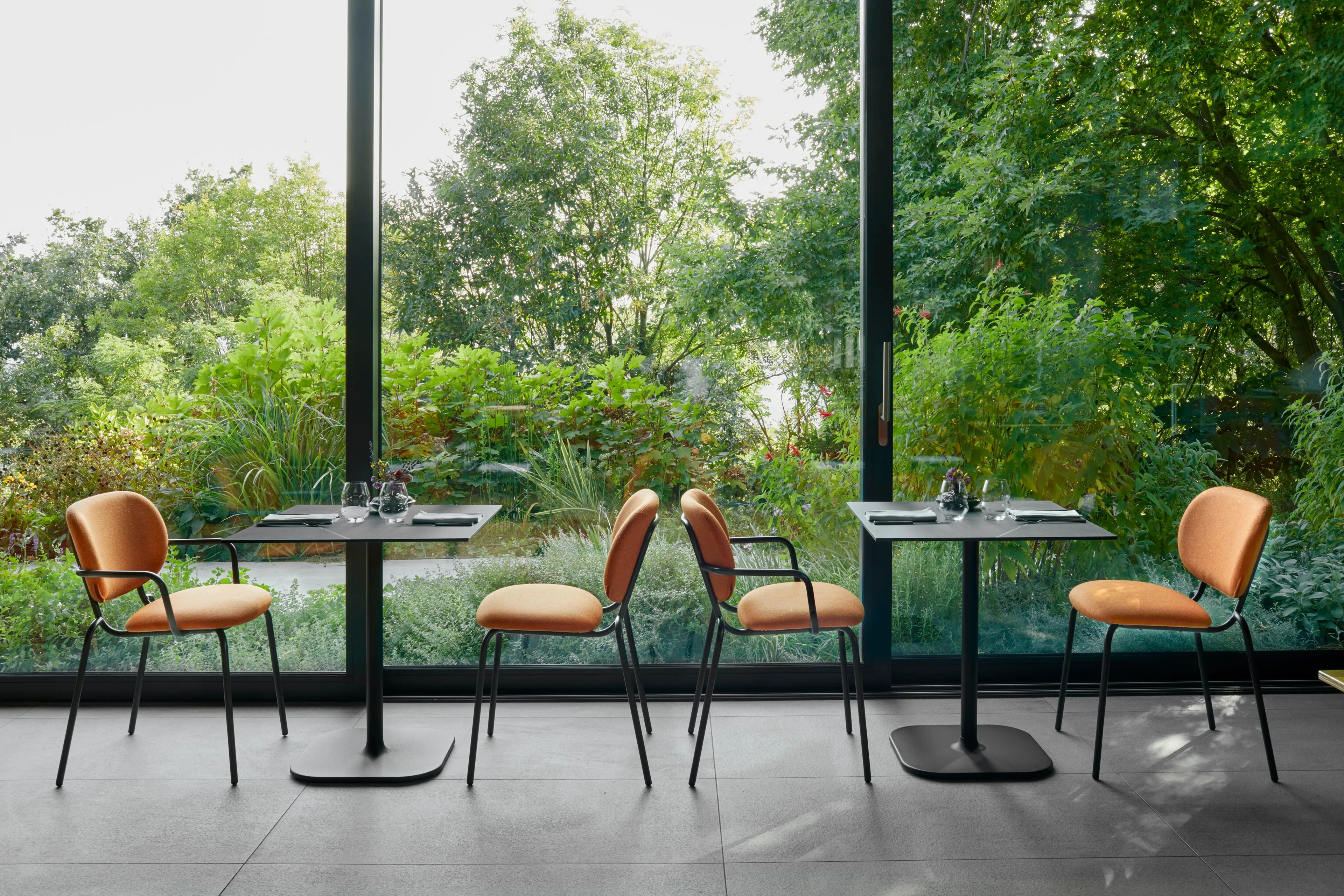 The SI-SI BOLD chair features a robust 20 mm diameter tubular steel frame, offering a durable seating solution for various environments. It is available in a wide selection of fabrics, including eco-friendly wool blends crafted from recycled materials, adhering to environmental standards throughout the production process. Designed by Meneghello Paolelli, this version enhances the SI-SI collection with its plush padding, making it ideal for indoor use. The design incorporates a distinctive 'biscuit' aesthetic, providing both character and comfort. Suitable for dining tables, conference rooms, and cafés, these stackable chairs are perfect for modern design tables and ergonomic seating needs in educational institutions and event venues.