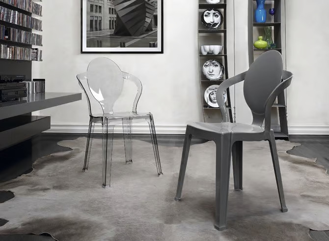 SPOON, designed by Roberto Semprini, is a versatile seating option ideal for various professional environments. Crafted from recyclable polycarbonate, this chair is available in both transparent and colored translucent finishes. Its slightly concave oval back offers a blend of modern aesthetics and structural integrity, making it suitable for dining tables, conference room furniture, and café settings. The chair's design supports nearly limitless stackability, enhancing its practicality for spaces requiring flexible seating arrangements. Suitable for both indoor and outdoor use, the dimensions are W52 D56 Hs46 H89 cm. The price includes a set of two chairs with the same configuration, providing a cohesive look for any venue.