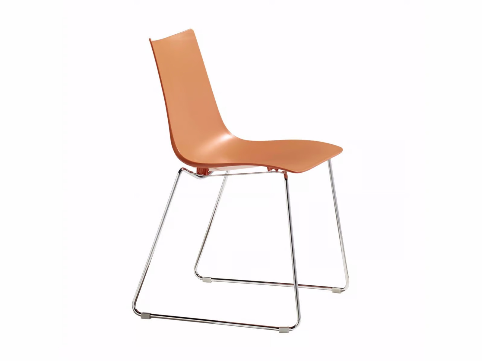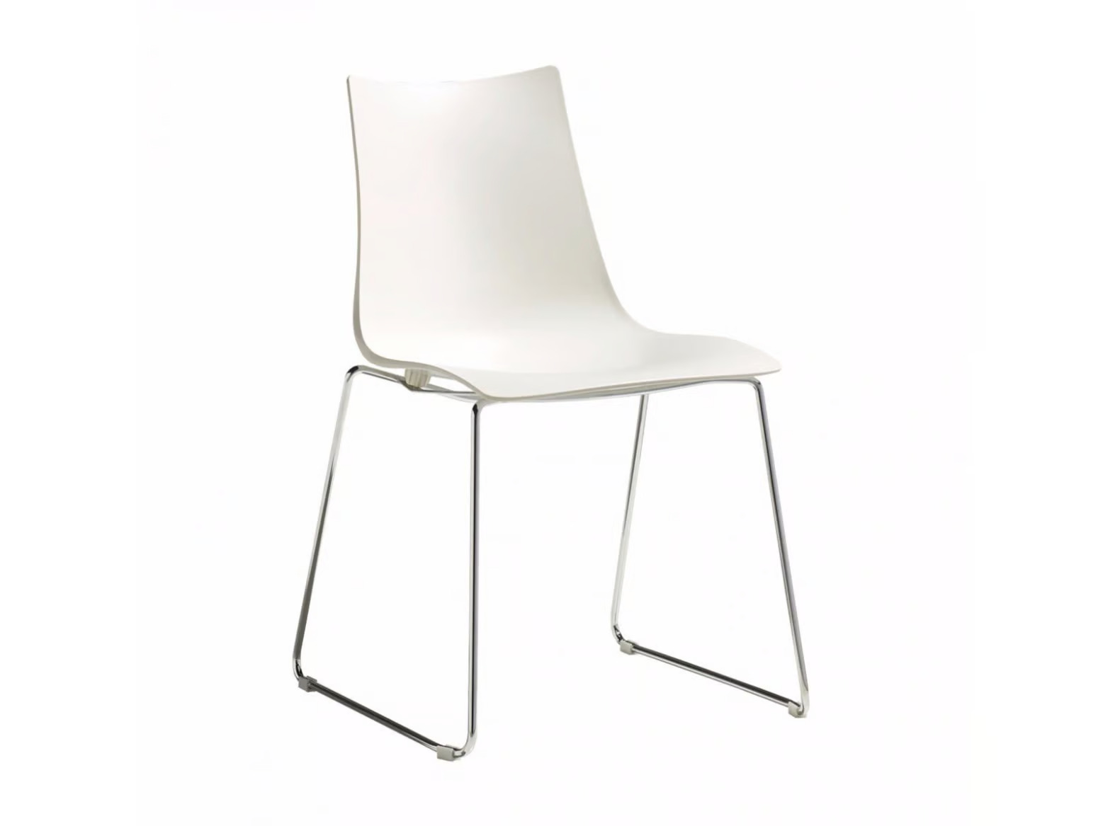 The ZEBRA TECNOPOLIMERO by Scab Design, crafted by architect Luisa Battaglia, is a versatile seating solution ideal for restaurants, conference rooms, coworking spaces, cafés, event venues, and educational institutions. This chair features a stackable sledge frame made from 11 mm chrome-plated tubular steel, offering both durability and modern design. Its ergonomic shape provides optimal back support, while the techno-polymer body is eco-friendly and fully recyclable. The chair's exterior boasts a glossy finish, complemented by a scratch-resistant matte interior. Available in chic colors like flax, dove grey, light blue, and anthracite, it seamlessly integrates into various settings. The ZEBRA TECNOPOLIMERO is offered in multiple configurations, including stackable chairs, café chairs, and stools, with options for sled or four-leg bases, with or without arms, and even a swivel version.