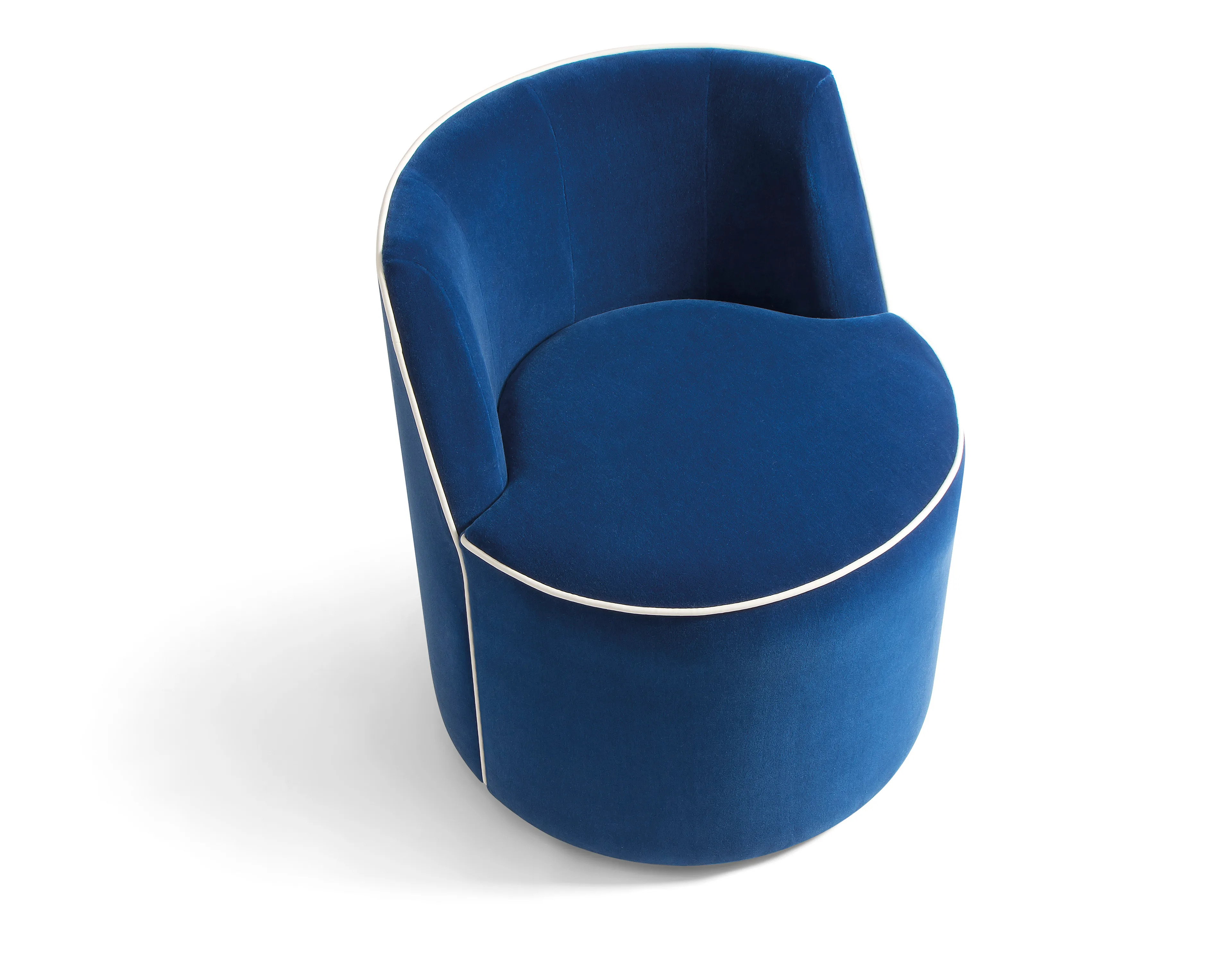The Carrie lounge chair offers a sophisticated solution for diverse environments, including hotels, cafés, and office spaces. Its modern design is complemented by a swivel base, providing both elegance and functionality. Available in a variety of custom upholstery options, this chair can be tailored to suit any interior aesthetic. Optional piping adds a touch of refinement, while the included cushion enhances comfort. Ideal for compact spaces, the Carrie chair combines ergonomic design with luxury, making it a versatile choice for residential interior designers and commercial settings alike. This piece exemplifies the perfect blend of style and comfort, suitable for any lounge seating arrangement.