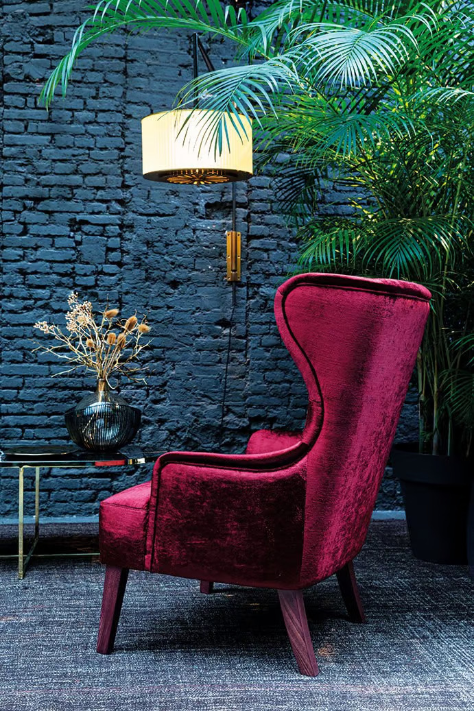 The Cesare offers a blend of modern and retro styling, featuring low, relaxed armrests and a supportive wing back. Its design is enhanced by optional loose cushions, providing comfortable seating solutions for various settings. Upholstered in a range of fabrics, the Cesare complements its solid wood legs and frame, making it suitable for plush lounges, corporate lobbies, and design-focused guest rooms. This piece of modern lounge furniture is ideal for hotels, cafés, and waiting rooms, offering both luxury sofas and armchairs. Its ergonomic design and customizable upholstery options make it a versatile choice for residential interior designers seeking compact furniture for small spaces or modular sofas for offices.