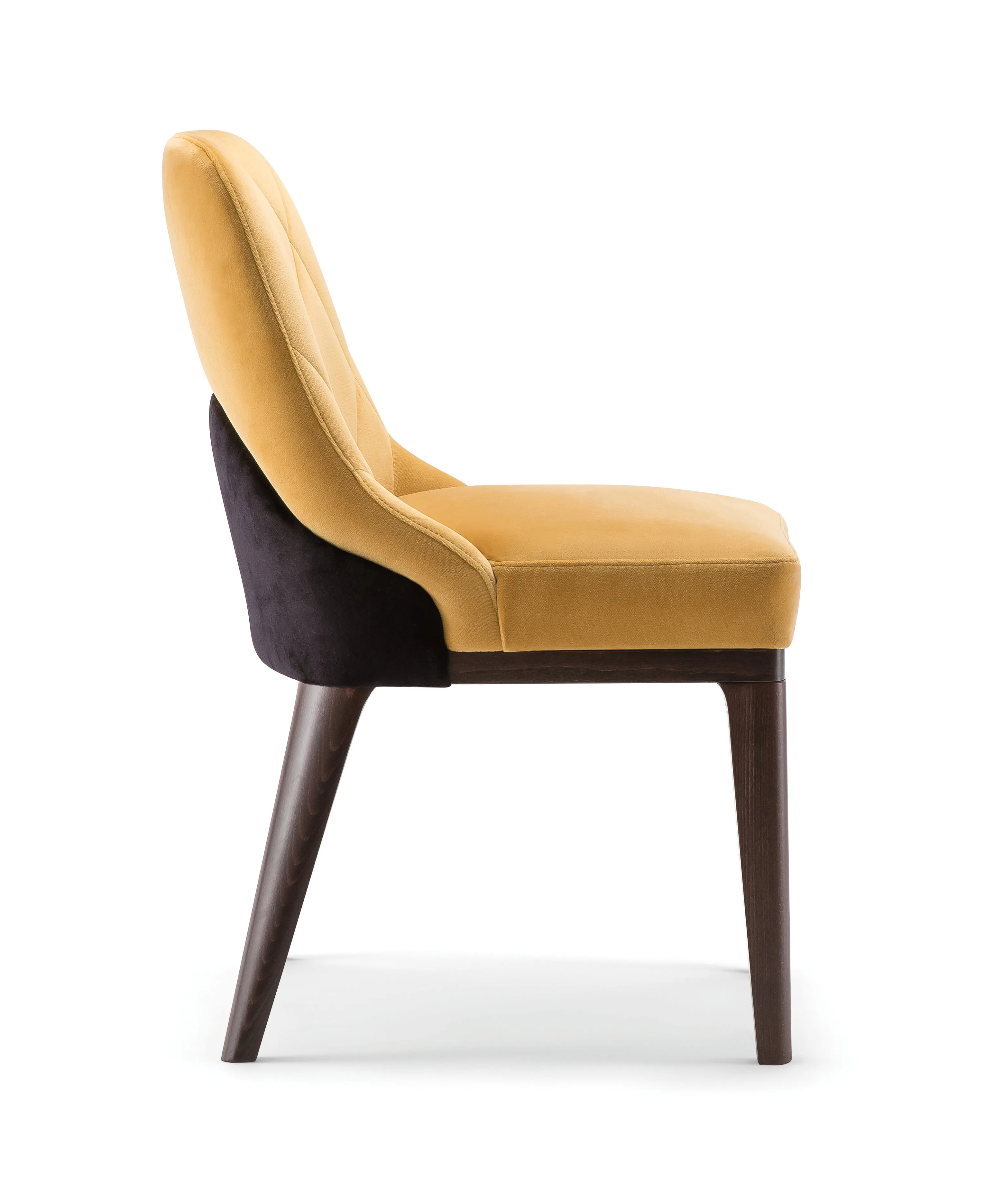 The GILL Chair is designed for versatility and durability, making it an ideal choice for dining tables in restaurants, conference room furniture, and café settings. Its sturdy wooden legs provide reliable support, while the elegant design features a curved contrasting panel on the backrest. This ergonomic chair can be upholstered in a variety of fabrics or leather, allowing customization to match any venue's aesthetic. The option to select from a range of stains for the legs further enhances its adaptability. Compact and comfortable, the GILL Chair is perfect for modern design tables in coworking spaces, event venues, and educational institutions. Its stackable nature ensures easy storage, making it a practical solution for banquet halls and event spaces.
