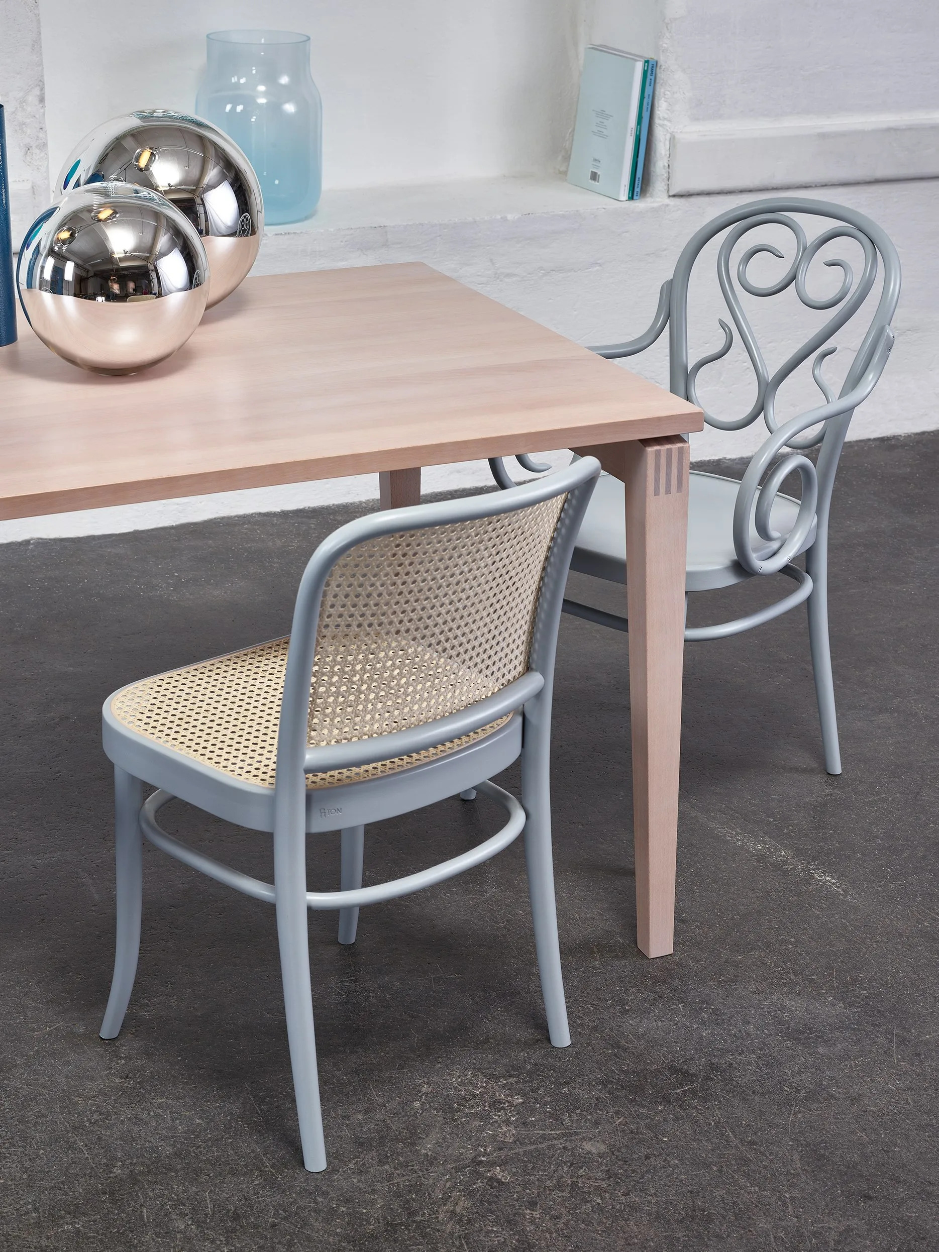 The 811 Fabric Chair by Ton A.S. is a versatile seating option ideal for various professional environments, including restaurants, conference rooms, coworking spaces, cafés, event venues, and educational institutions. Drawing inspiration from a 1930 design by Josef Hoffmann, this chair merges Art Nouveau influences with straightforward geometric shapes. Crafted using traditional manual bending techniques from Bystrice pod Hostynem, the chair features a durable wooden frame. Its design includes an upholstered seat for comfort and a woven cane backrest, offering both style and support. This chair is stackable, making it a practical choice for spaces requiring flexible seating arrangements. Its ergonomic design ensures comfort, while its robust construction guarantees longevity, making it a reliable addition to dining tables and modern design tables alike.