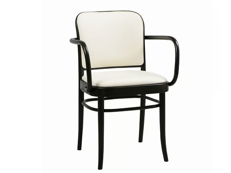 The 811 wooden chair by Ton A.S. is a versatile seating option, ideal for various settings such as restaurants, conference rooms, coworking spaces, cafés, event venues, and educational institutions. Drawing inspiration from a 1930 design by Josef Hoffmann, this chair merges Art Nouveau influences with straightforward forms. Its construction reflects the traditional manual bending techniques practiced in Bystrice pod Hostynem since 1861. The chair features a geometric design, combining an upholstered seat with a woven cane backrest, offering both comfort and style. Its stackable nature makes it a practical choice for spaces requiring flexible seating arrangements. This chair complements modern design tables and serves as durable seating for dining tables and café settings, enhancing the functionality of conference room furniture.