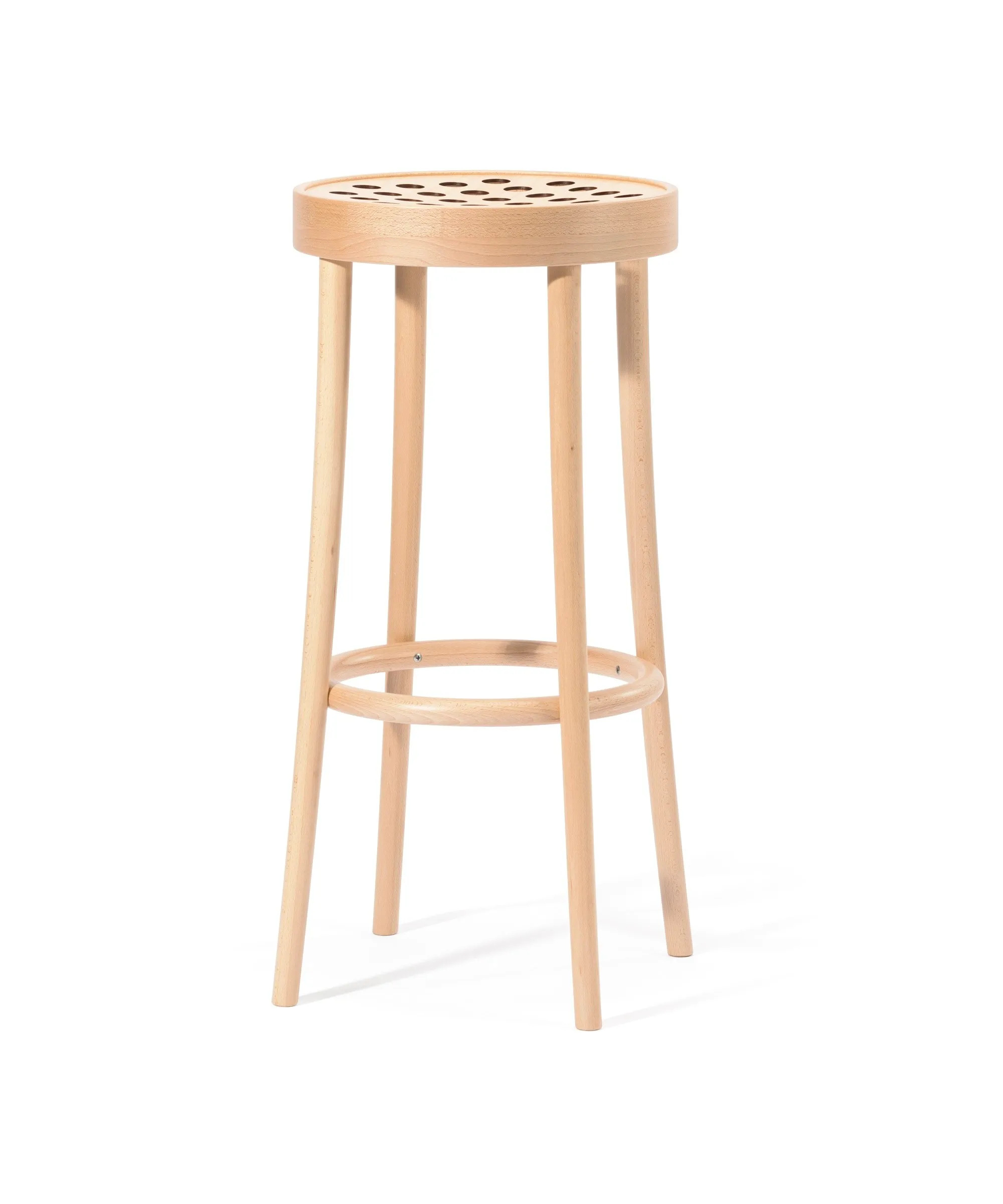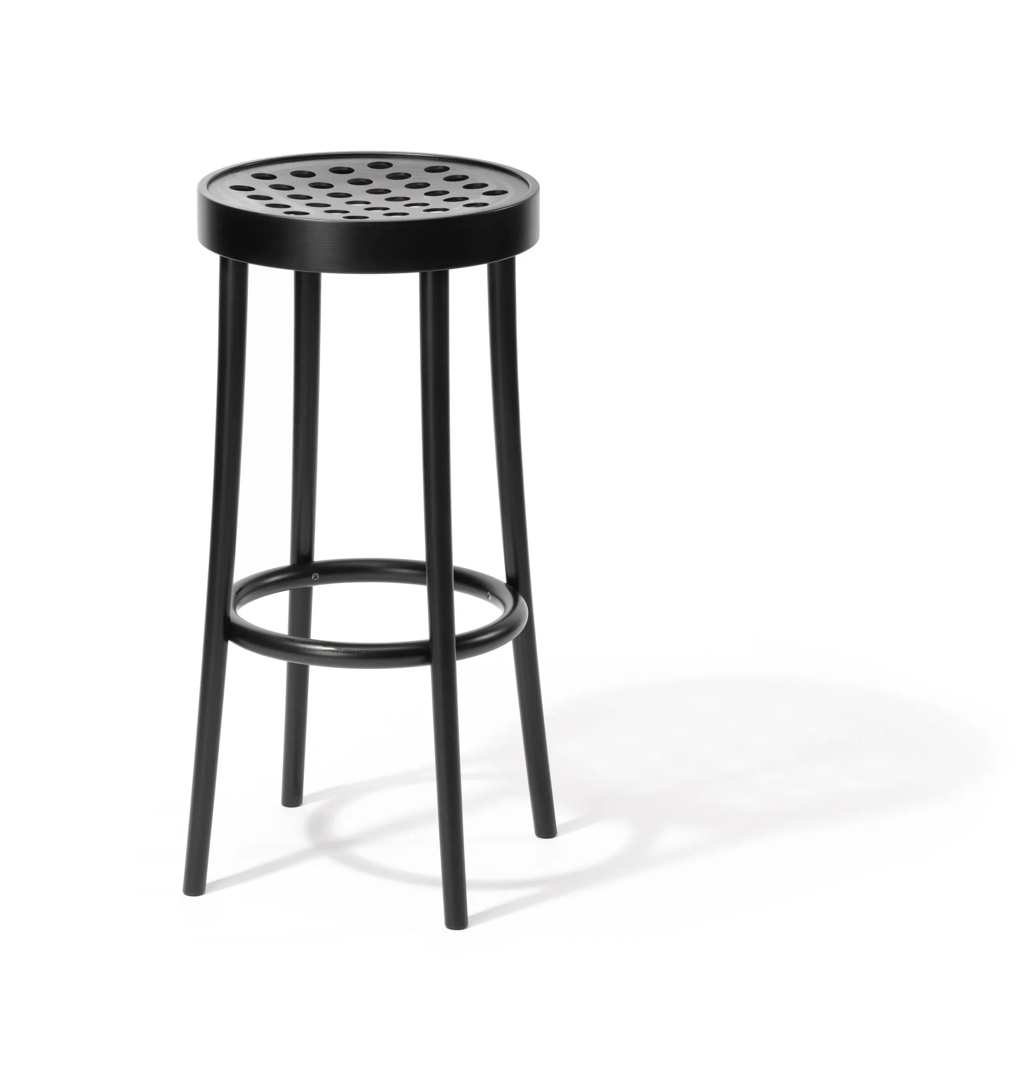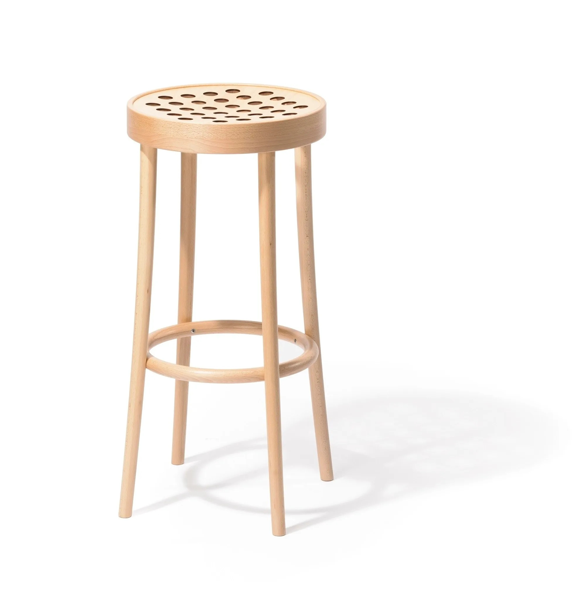 The 822 collection, crafted by Claesson Koivisto Rune for Ton, features high stools made from solid beech wood and veneer. Inspired by Josef Hoffmann’s 1930 modernist model 811, these pieces blend traditional bentwood technology with contemporary design elements. The collection's proportions emphasize natural forms, while the distinctive circular holes in the seat and backrest add a graphic touch, harmonizing with the surrounding interior or the attire of the user. Constructed from PEFC-certified beechwood, known for its pale hue and soft texture, these stools offer a sustainable choice for dining tables, café chairs, and conference room furniture. Available in various finishes, including oil and lacquer, the 822 collection provides durable seating with a timeless character, suitable for modern design tables and ergonomic, stackable chairs in diverse settings.