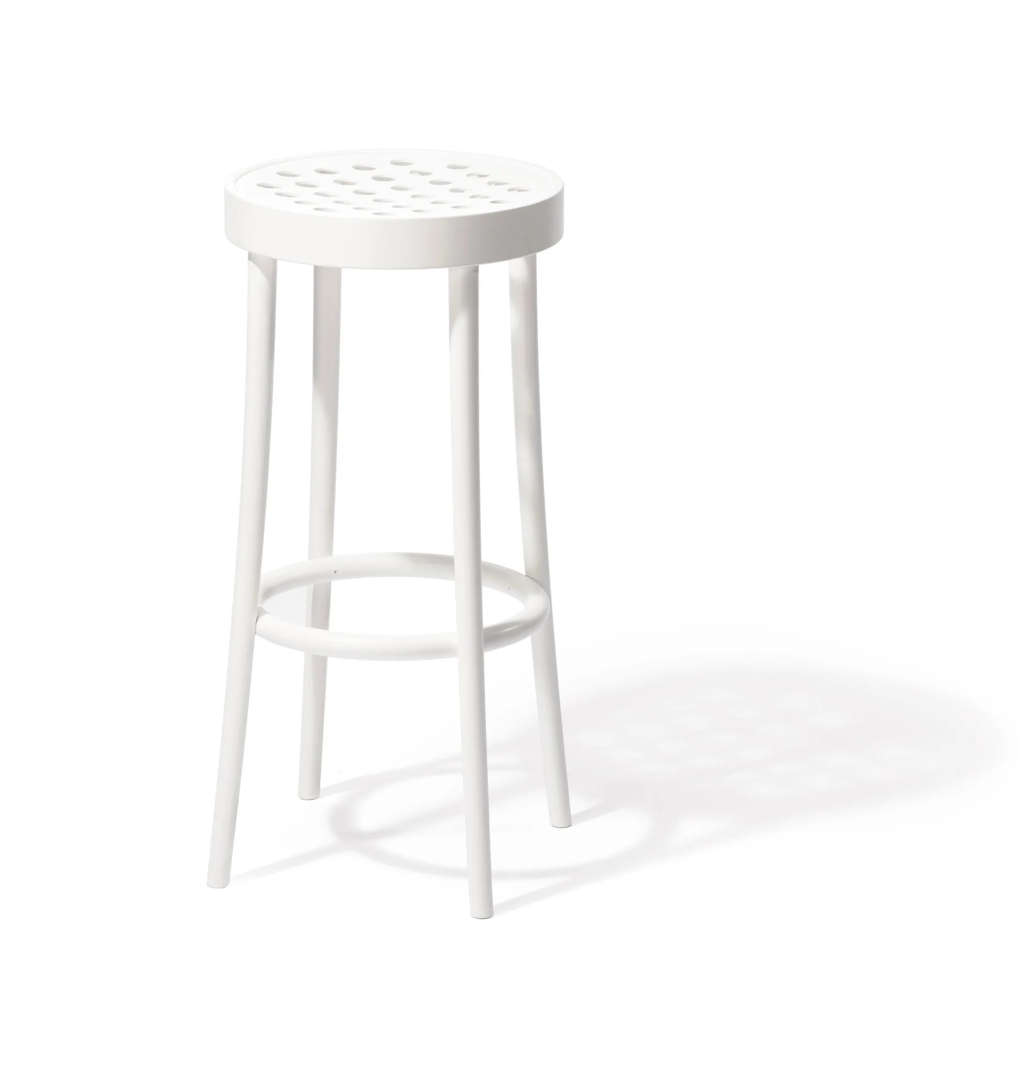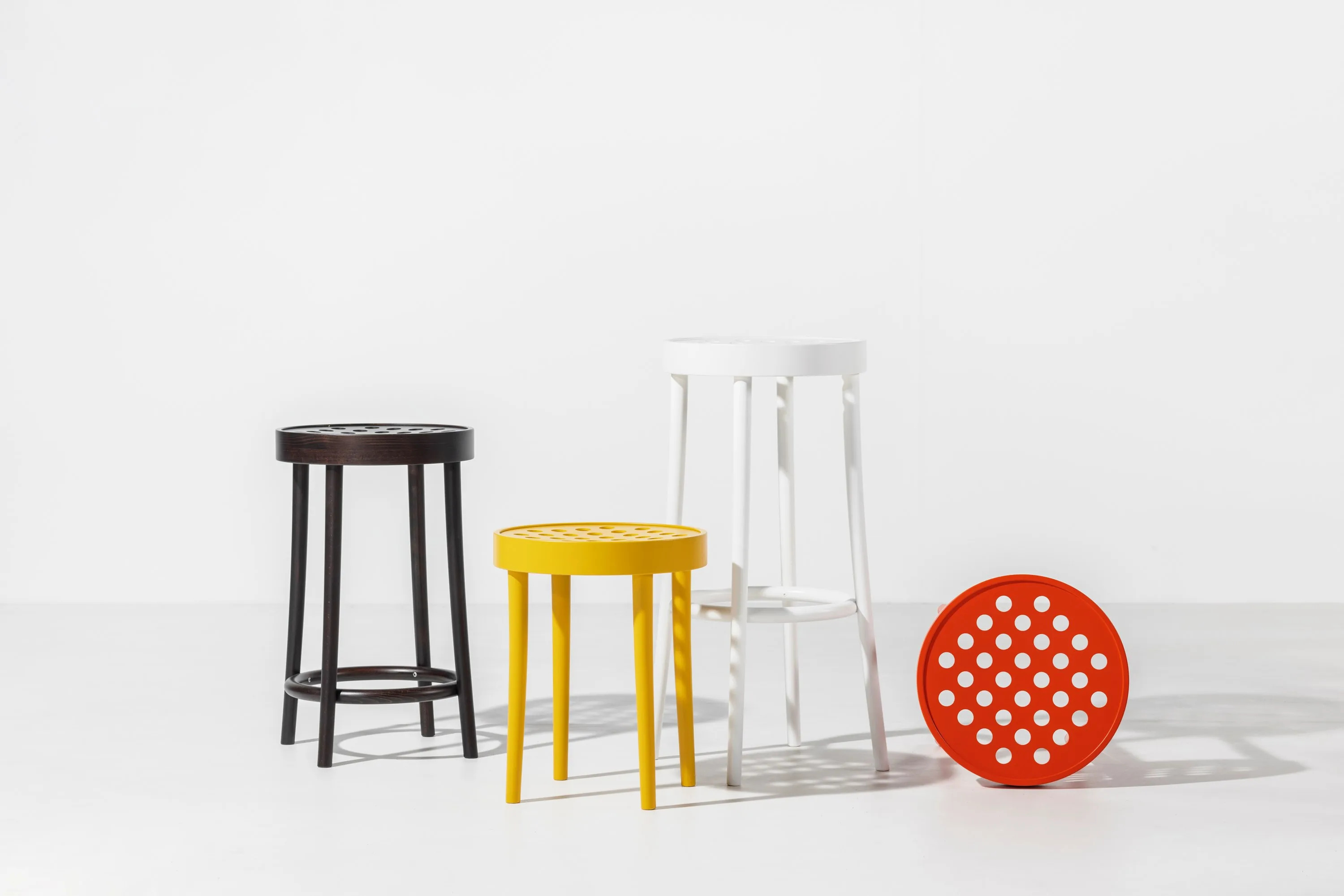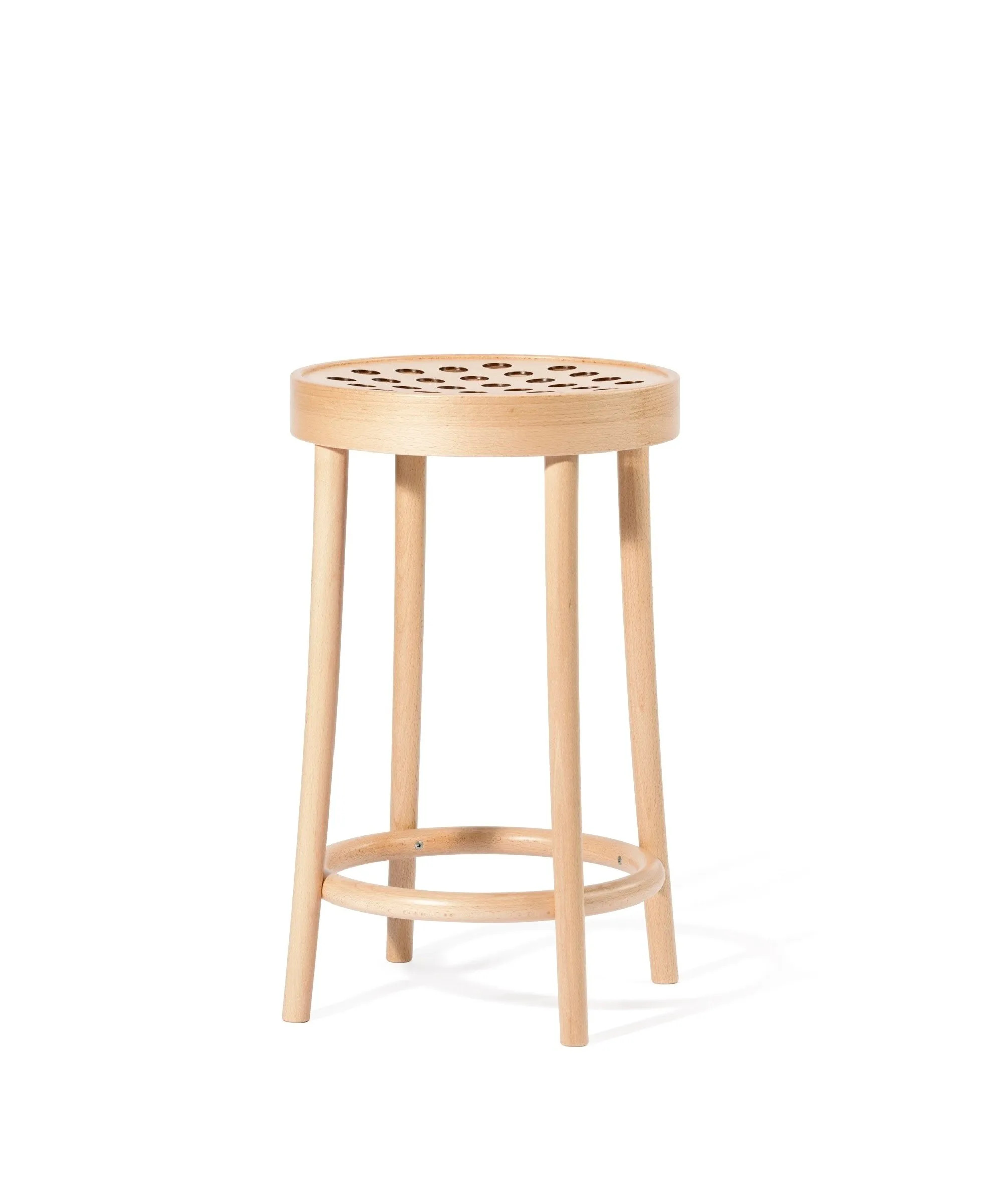 The 822 collection, crafted by Claesson Koivisto Rune for Ton, features high stools made from solid beech wood and veneer. Inspired by Josef Hoffmann’s 1930 modernist model 811, these pieces blend traditional bentwood technology with contemporary design elements. The collection's proportions emphasize natural forms, while the distinctive circular holes in the seat and backrest add a graphic touch, harmonizing with the surrounding interior or the attire of the user. Constructed from PEFC-certified beechwood, known for its pale hue and soft texture, these stools offer a sustainable choice for dining tables, café chairs, and conference room furniture. Available in various finishes, including oil and lacquer, the 822 collection provides durable seating with a timeless character, suitable for modern design tables and ergonomic, stackable chairs in diverse settings.