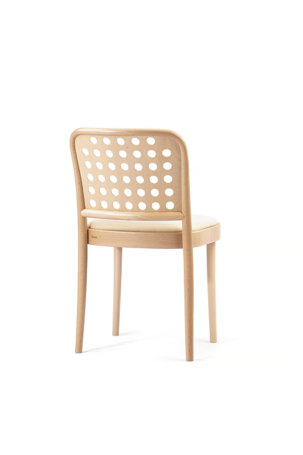 The 822 chair, crafted from solid beech and veneer, features an integrated cushion and is designed by Claesson Koivisto Rune for Ton. Inspired by Josef Hoffmann’s 1930 modernist model 811, this chair blends traditional bentwood technology with a contemporary aesthetic. Its design incorporates circular holes in the seat and backrest, creating a visual connection with its surroundings and the user’s attire, offering a timeless appeal. The 822 collection utilizes shaped plywood and manually bent solid wood, exclusively using PEFC-certified beechwood known for its pale color and soft texture. Available in natural finishes with oil or lacquer, as well as various stains and pigments, this chair complements dining tables, café settings, and conference room furniture. Its ergonomic and stackable design makes it ideal for durable seating in restaurants, coworking spaces, educational institutions, and event venues.