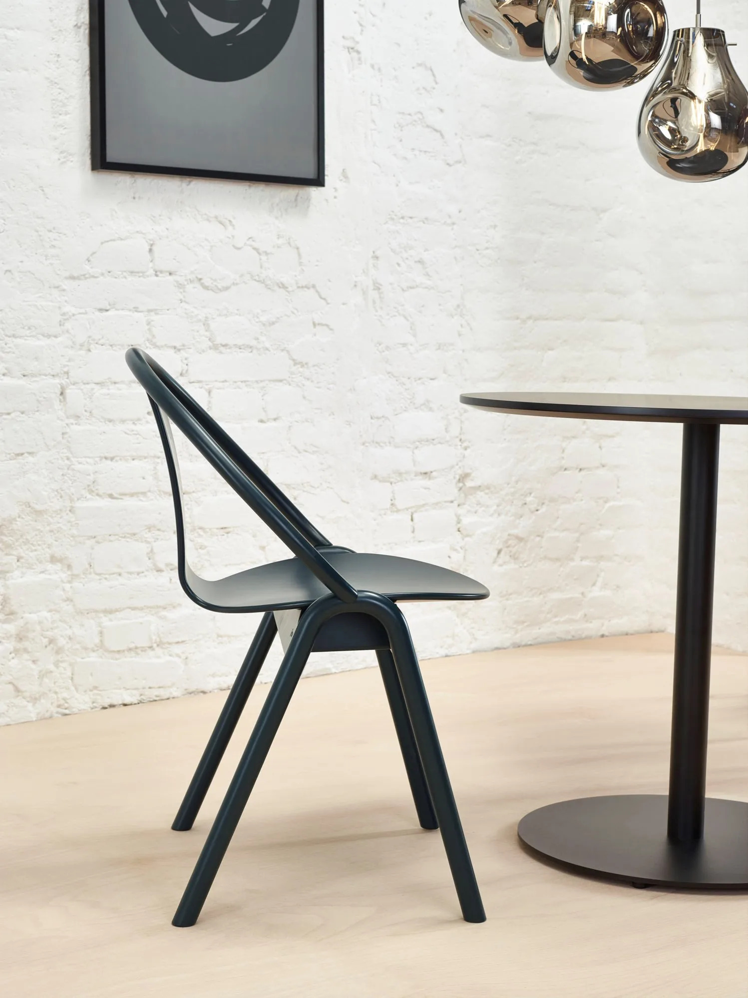 The AGAIN chair, crafted from wood with a plywood seat and backrest, offers a versatile seating solution for various settings such as restaurants, conference rooms, and educational institutions. Its stackable design allows for efficient storage, accommodating up to four chairs in a compact space. Available in multiple wood finishes, this chair combines modern design with durability. Designed by Alex Gufler, the collection showcases a unique approach to wood bending, typically seen in metal furniture, highlighting the expertise of TON's woodworking techniques. The chair features a seamless blend of bent wooden rods and a lightweight, ergonomically curved plywood seat, ensuring both comfort and strength without visible joints. Ideal for dining tables, café settings, and conference room furniture, the AGAIN chair is a testament to innovative design and craftsmanship.