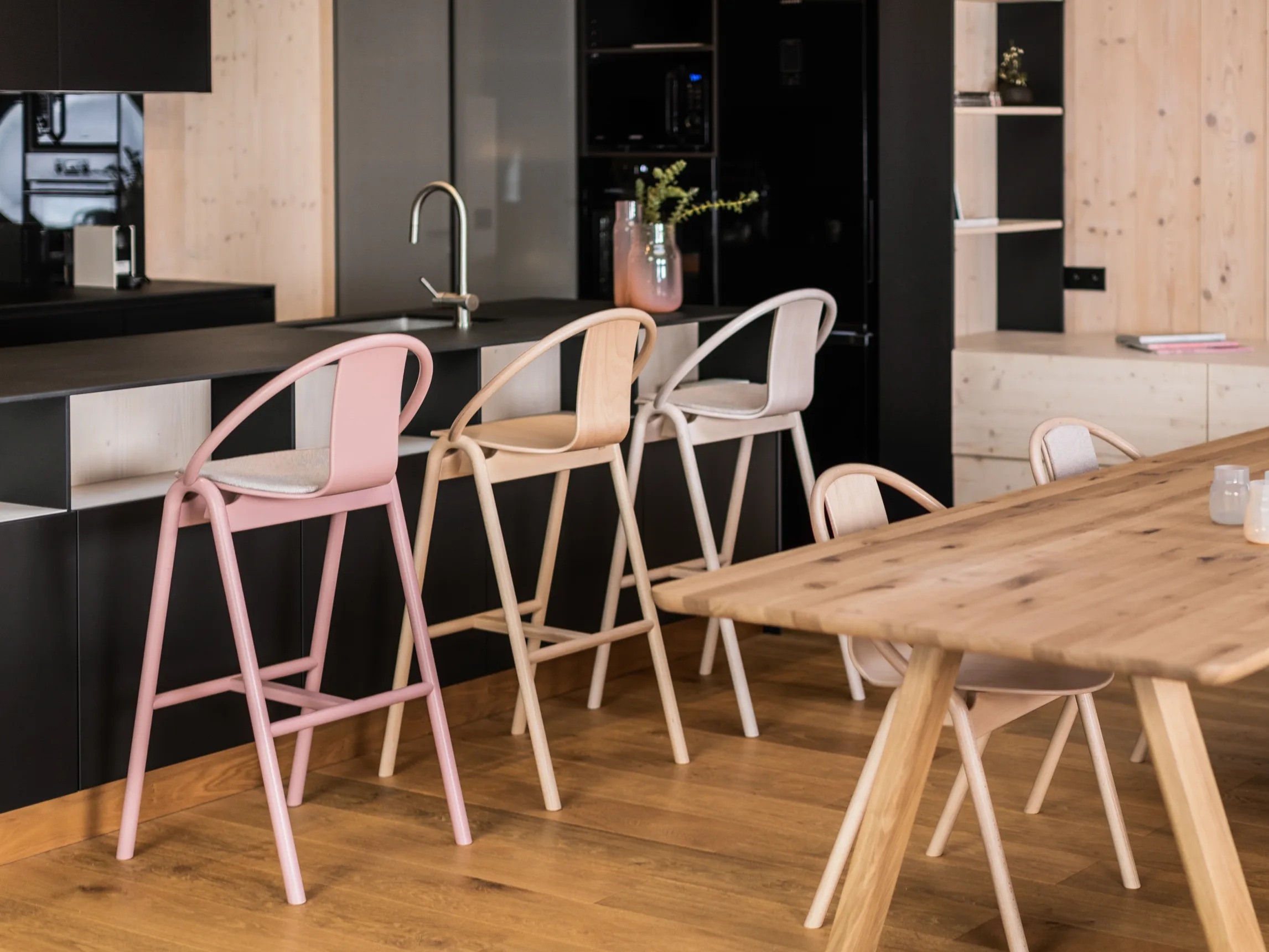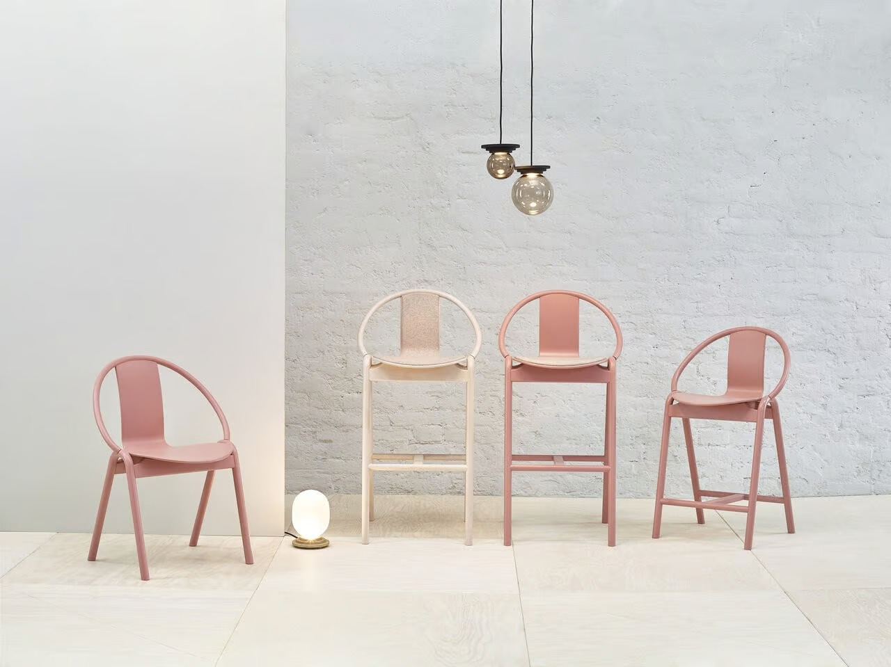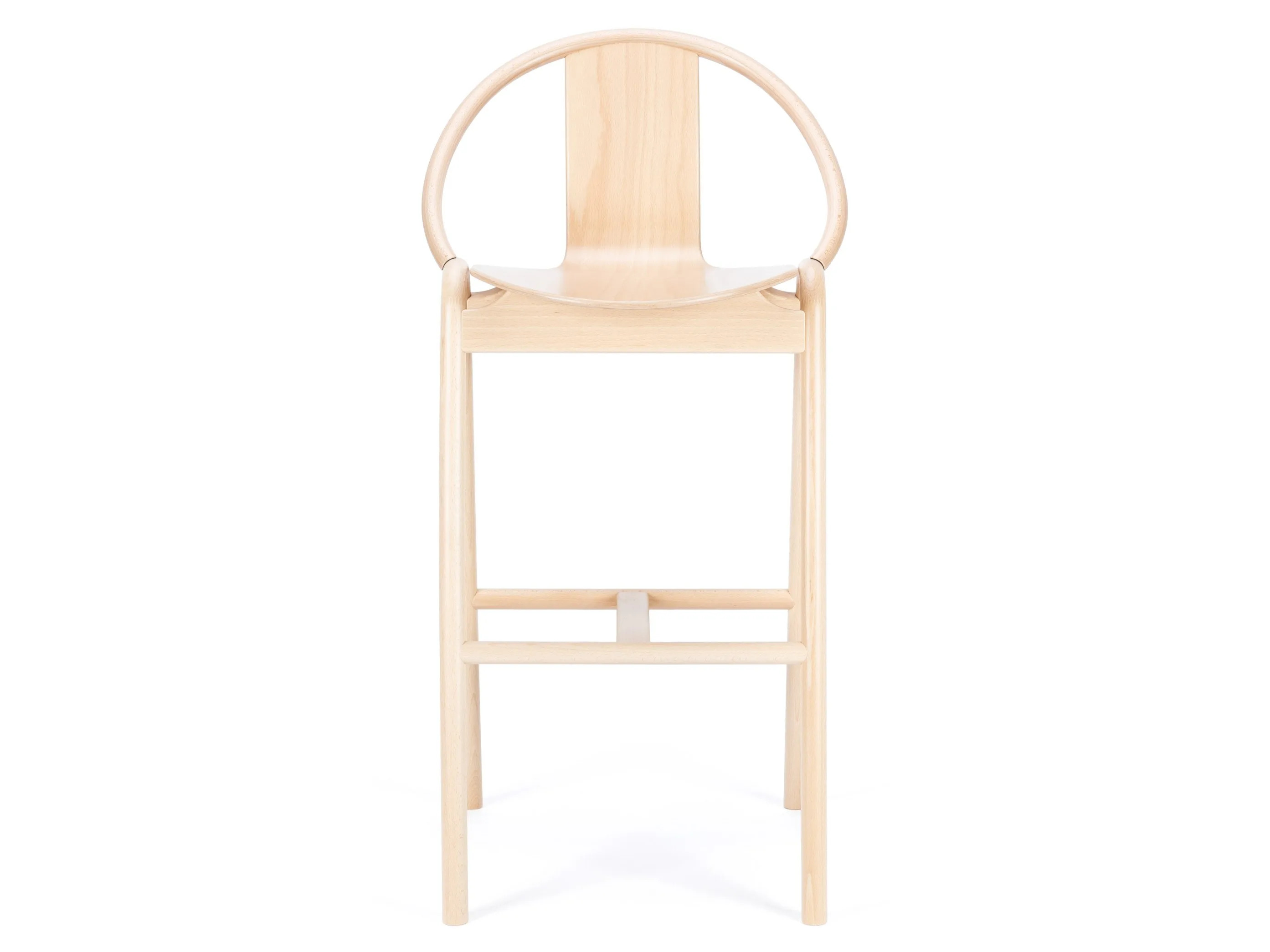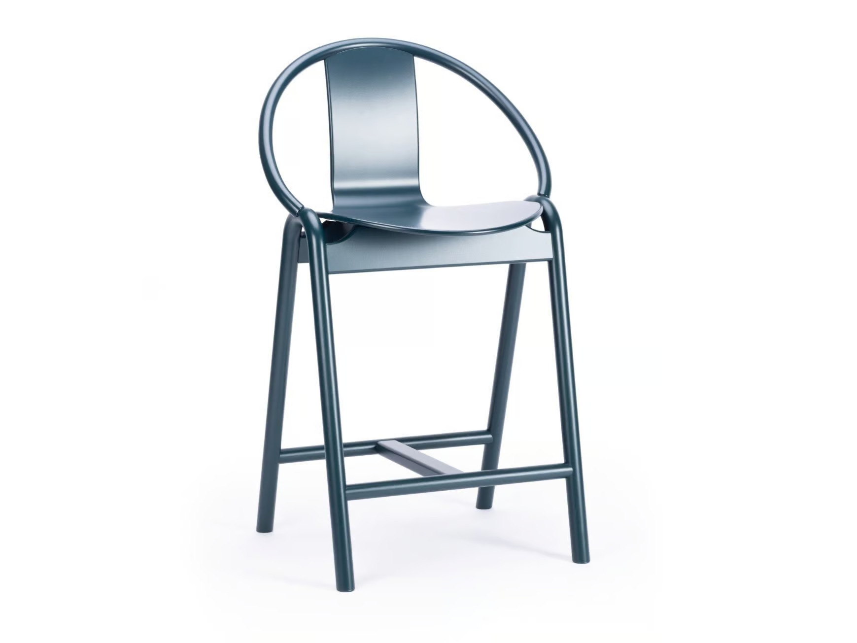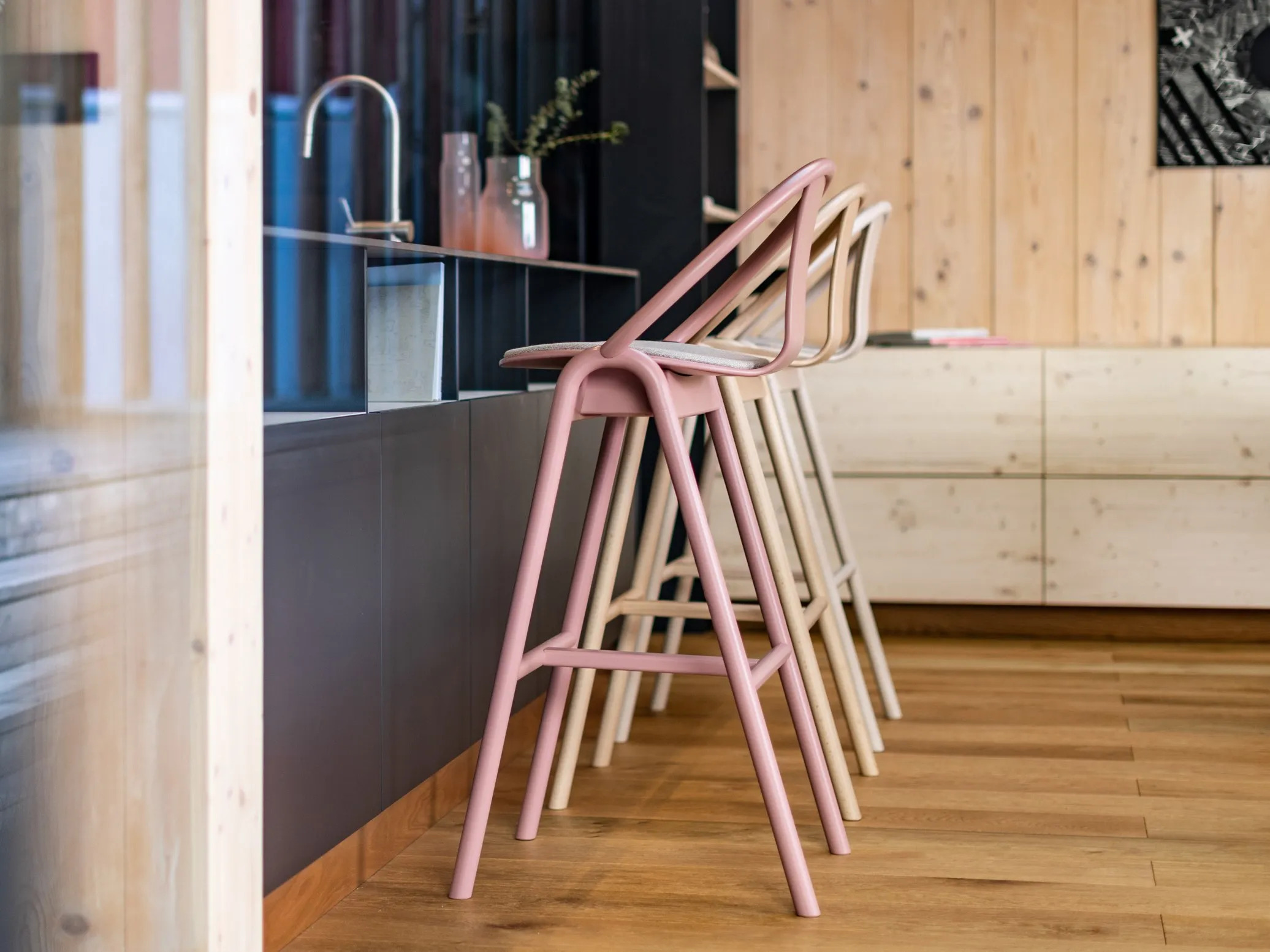 The AGAIN high stool, designed by Alex Gufler, is a versatile seating option ideal for restaurants, conference rooms, coworking spaces, cafés, event venues, and educational institutions. This wooden barstool features a plywood seat and backrest, available in two heights and various wood finishes. The design showcases a sophisticated interplay of TON’s renowned wood bending techniques and Gufler’s expertise in furniture design. The stool’s generous curves, typically seen in metal furniture, present a unique challenge when crafted in wood, demanding exceptional craftsmanship to ensure durability and strength. The Grand Slam design combines TON’s signature bent wooden rods with a visually light, gently curved plywood seat, achieving a seamless appearance without visible joins. This modern design is perfect for dining tables and café settings, offering ergonomic and durable seating that complements any conference room furniture. The stackable design enhances functionality, making it a practical choice for dynamic spaces.