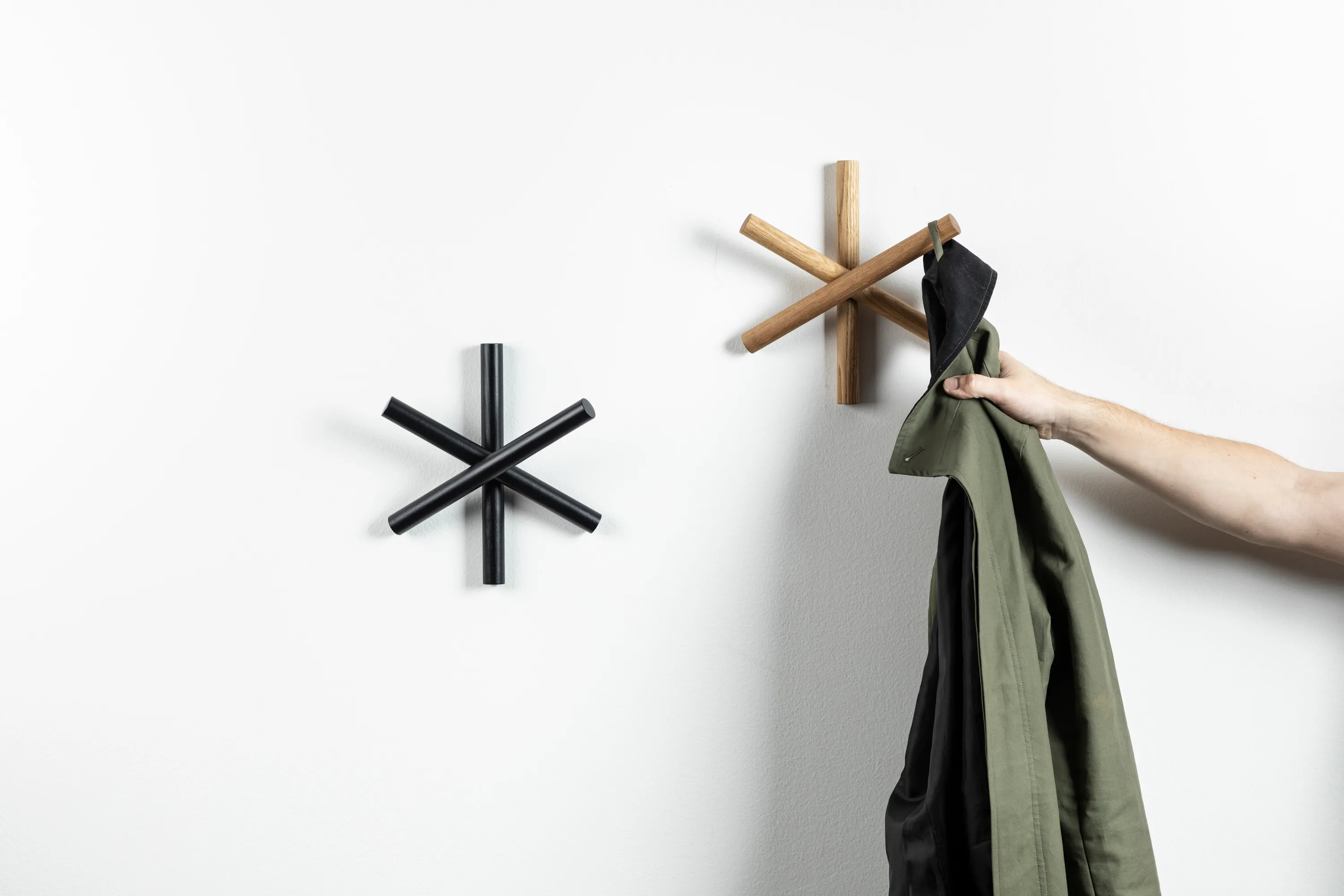 Crafted from beech or oak offcuts, the Logs coat hanger exemplifies innovative design by the German studio Büro Famos. This minimalist, star-shaped accessory is a testament to resourceful craftsmanship, utilizing high-quality wood remnants from TON furniture production. The design, conceived by Hanna Litwin and Romin Heide, focuses on simplicity and functionality, transforming surplus materials into stylish office accessories. The packaging further reflects this sustainable approach, repurposing cardboard previously used for shipping chairs. Additionally, the packaging process supports social initiatives by employing individuals with disabilities within the TON company complex. The versatile design of Logs allows for various configurations, whether displayed individually or in groups, with each hanger available in different PANTONE shades. This product serves as a durable cable management system and a practical stationery storage solution, enhancing office décor with its unique aesthetic.