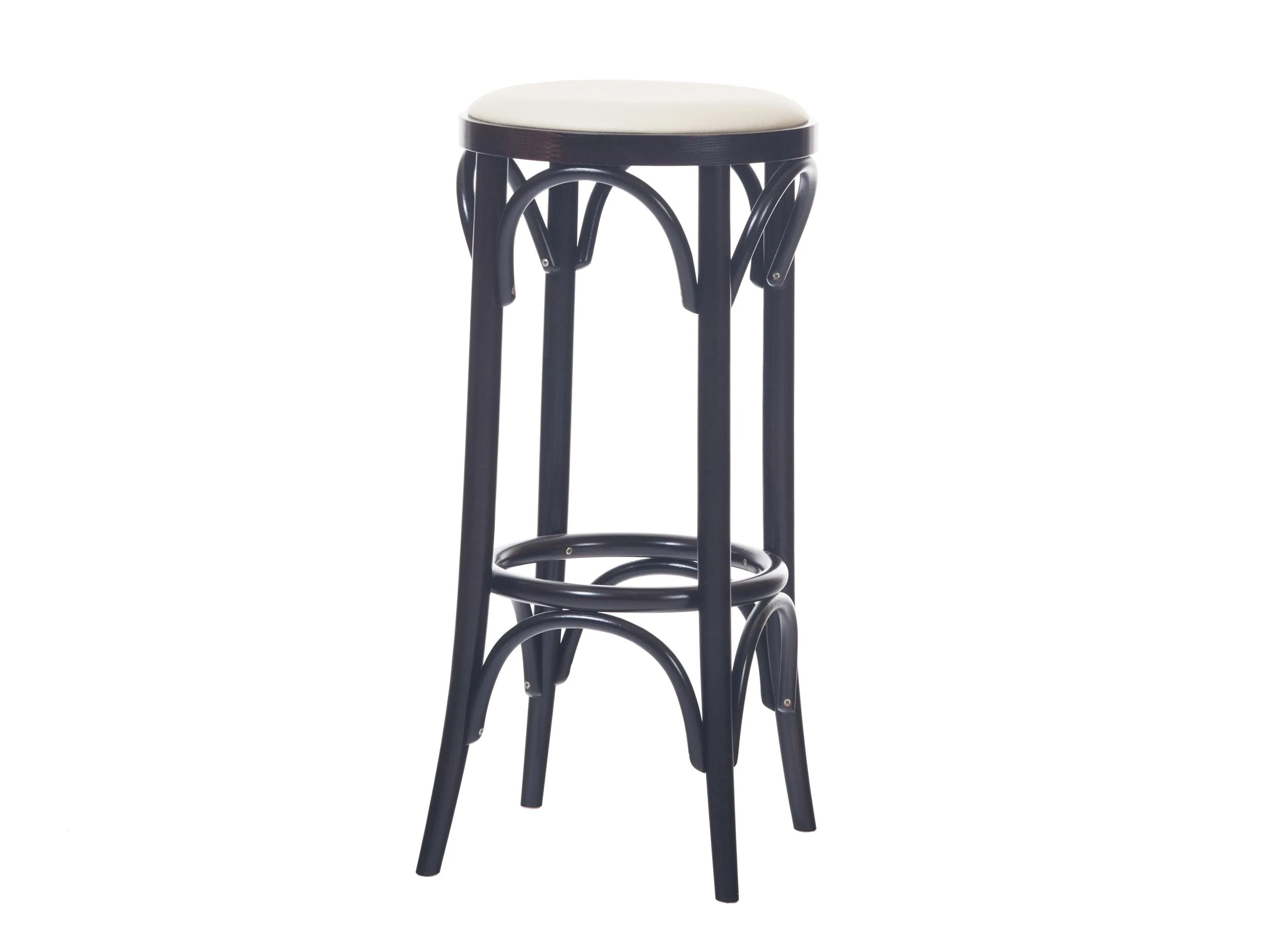 The N° 73 stool offers a blend of classic aesthetics and modern functionality, making it an ideal choice for dining tables in restaurants, conference room furniture, and café chairs. Its design features eight manually bent beech leg joints, providing a distinctive and timeless appeal. The stool's integrated cushion ensures comfort, making it suitable for durable seating in coworking spaces, event venues, and educational institutions. Its stackable nature allows for efficient storage, catering to the needs of banquet halls and event spaces. The option to enhance the seat with decorative studs adds a touch of elegance, aligning with the modern design tables and ergonomic chairs often sought in contemporary settings.
