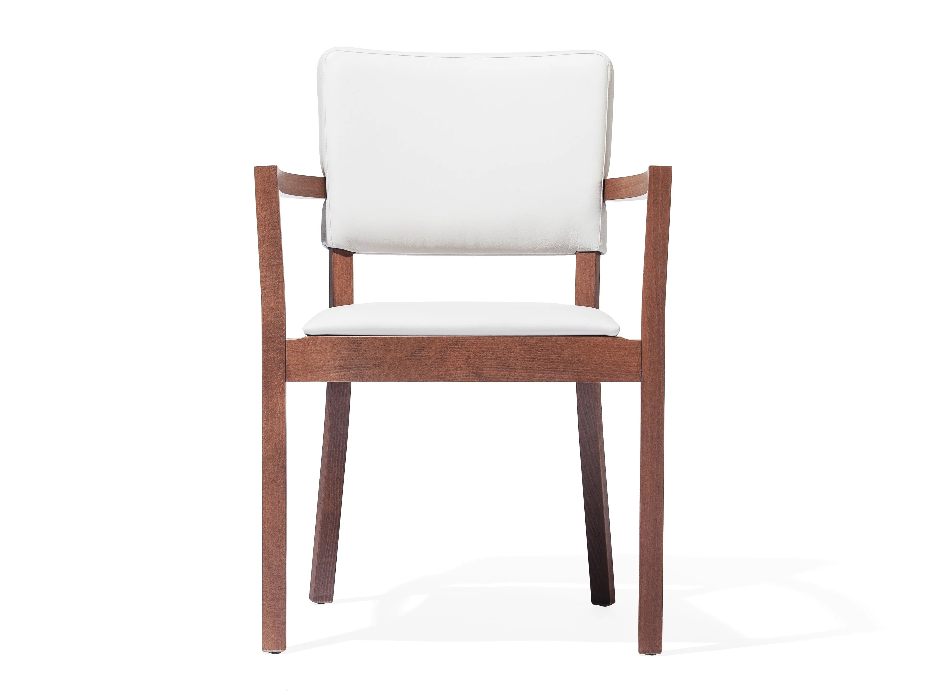 The TREVISO chair, part of the TON collection, offers a versatile seating solution ideal for restaurants, conference rooms, coworking spaces, cafés, event venues, and educational institutions. This chair features a wooden frame with a fabric-upholstered seat and back, complemented by armrests for added comfort. Its stackable design ensures easy storage, making it a practical choice for dynamic environments. The chair's modern design, characterized by a padded rectangular back, quadrangular seat, and subtly curved legs, blends seamlessly with various interior styles. Available in multiple color options, it provides durable seating that complements dining tables and café settings. The ergonomic design supports comfort during extended use, making it suitable for conference room furniture and other professional settings.