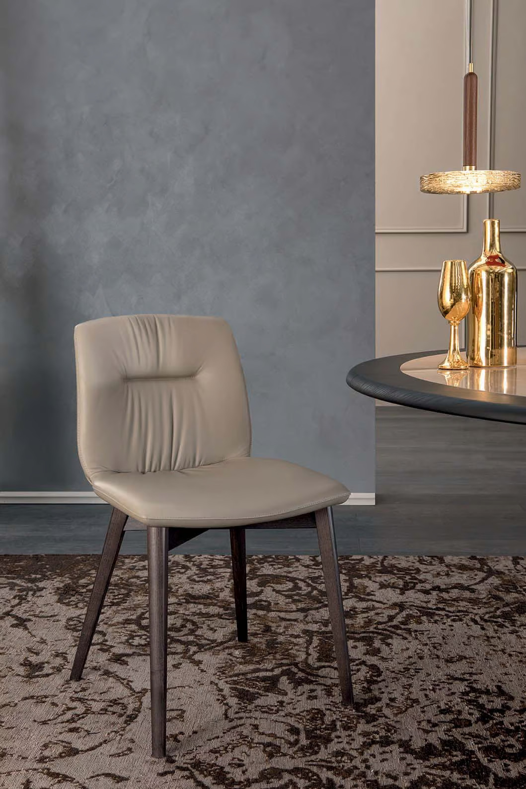 The ALEXIA chair features a robust wooden structure, available in Canaletto walnut, dark oak heat-treated, and black ash finishes. Designed for comfort, it includes plush padding, making it an ideal choice for dining tables, conference rooms, and café settings. Its versatility is enhanced by a wide selection of leathers and eco-leathers, allowing for customization to suit various interior styles. This ergonomic seating solution is perfect for restaurants, coworking spaces, and educational institutions. The stackable design ensures easy storage, making it a practical option for event spaces and banquet halls. ALEXIA combines modern design with durable seating, fitting seamlessly into any contemporary environment.