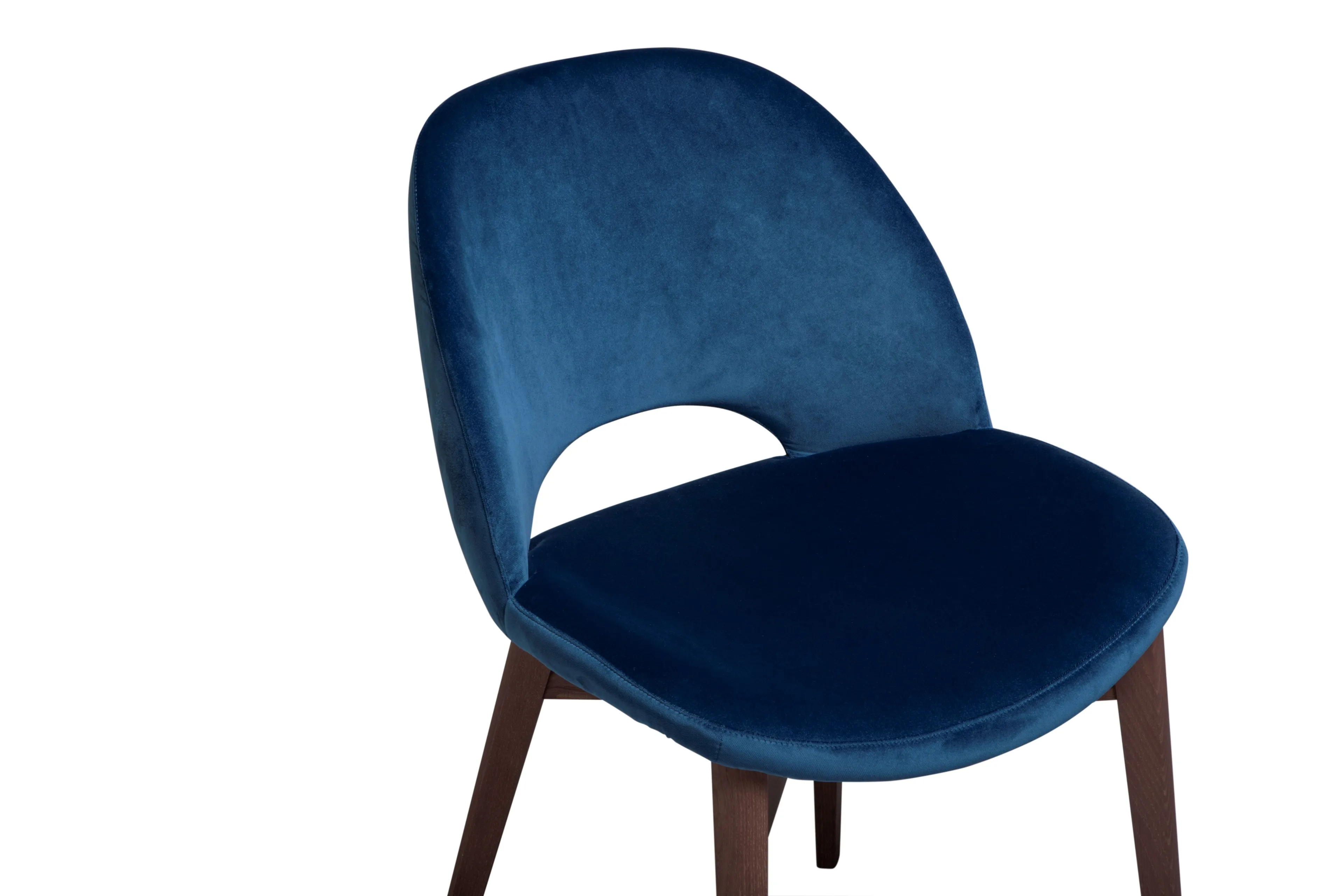The BEETLE upholstered chair features a sturdy 4-legged base crafted from Canaletto walnut and black ash, offering a blend of durability and elegance suitable for dining tables and modern design tables. Its seat is upholstered in deep blue Vega velvet, providing a touch of sophistication, with options available in leather or eco-leather for versatile styling. Ideal for restaurants, conference rooms, coworking spaces, cafés, event venues, and educational institutions, this chair combines ergonomic comfort with a sleek aesthetic. Designed for practicality, these stackable chairs are perfect for spaces requiring flexible and durable seating solutions, seamlessly fitting into various settings as part of conference room furniture or café chairs.