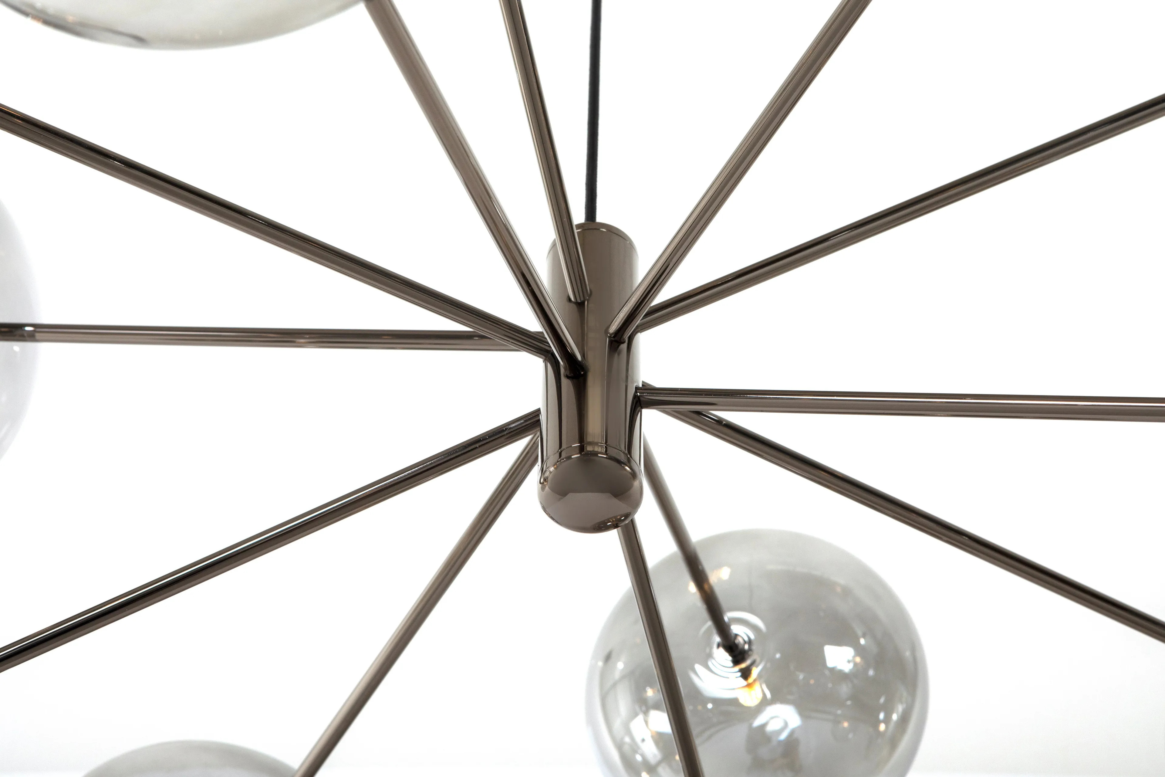 Inspired by the delicate form of a dandelion, the BREATH pendant lamp offers a unique approach to LED interior lighting. This modern chandelier design is available in two distinct styles: transparent glass paired with a black chrome metal structure, and fumè glass complemented by a carbon grey frame. Ideal for hotels, offices, retail spaces, restaurants, and residential interiors, this decorative pendant light provides ambient lighting that enhances any setting. Its energy-efficient lighting design ensures sustainability without compromising on style, making it a perfect choice for those seeking modern LED interior lighting solutions.
