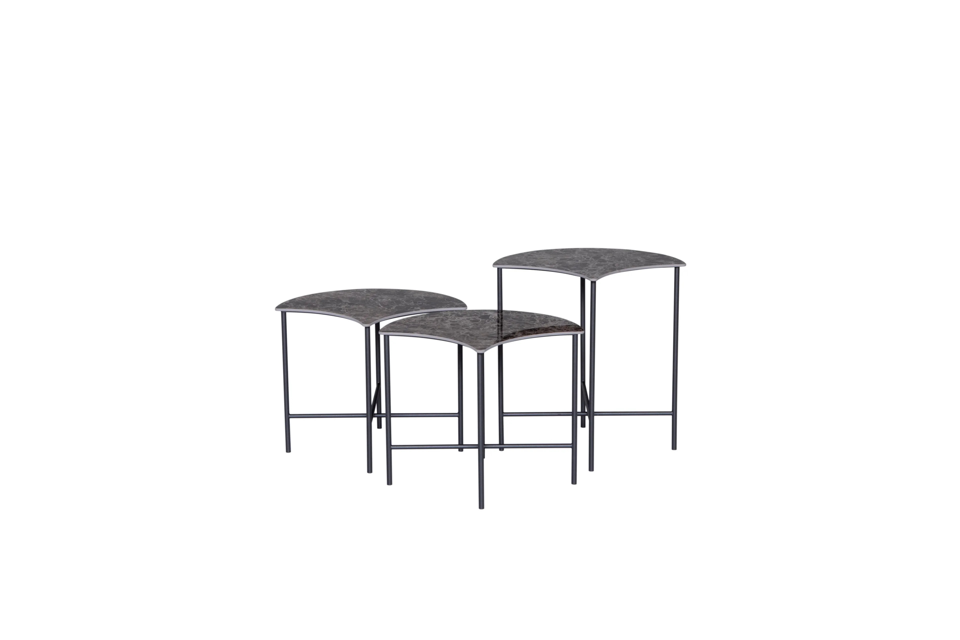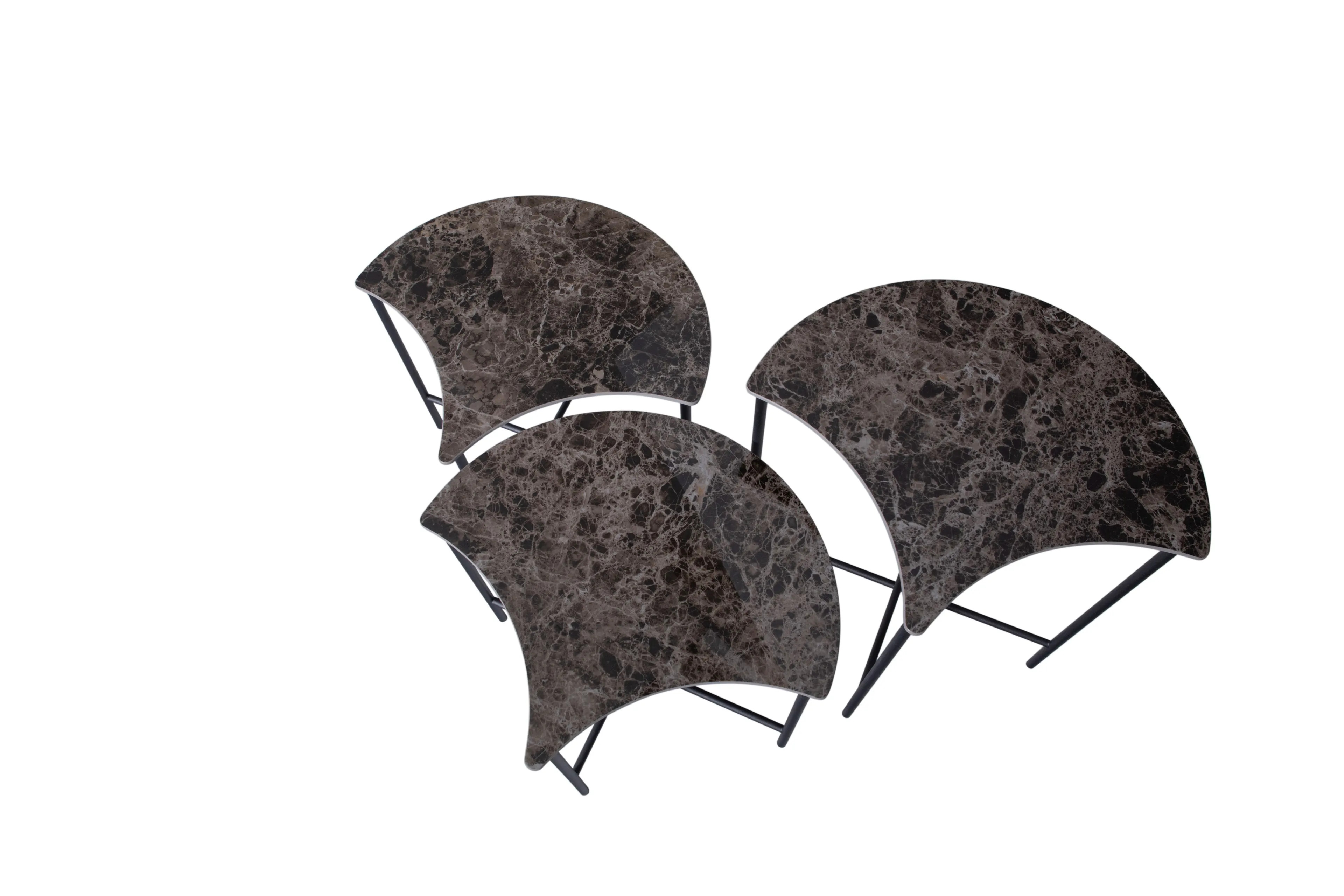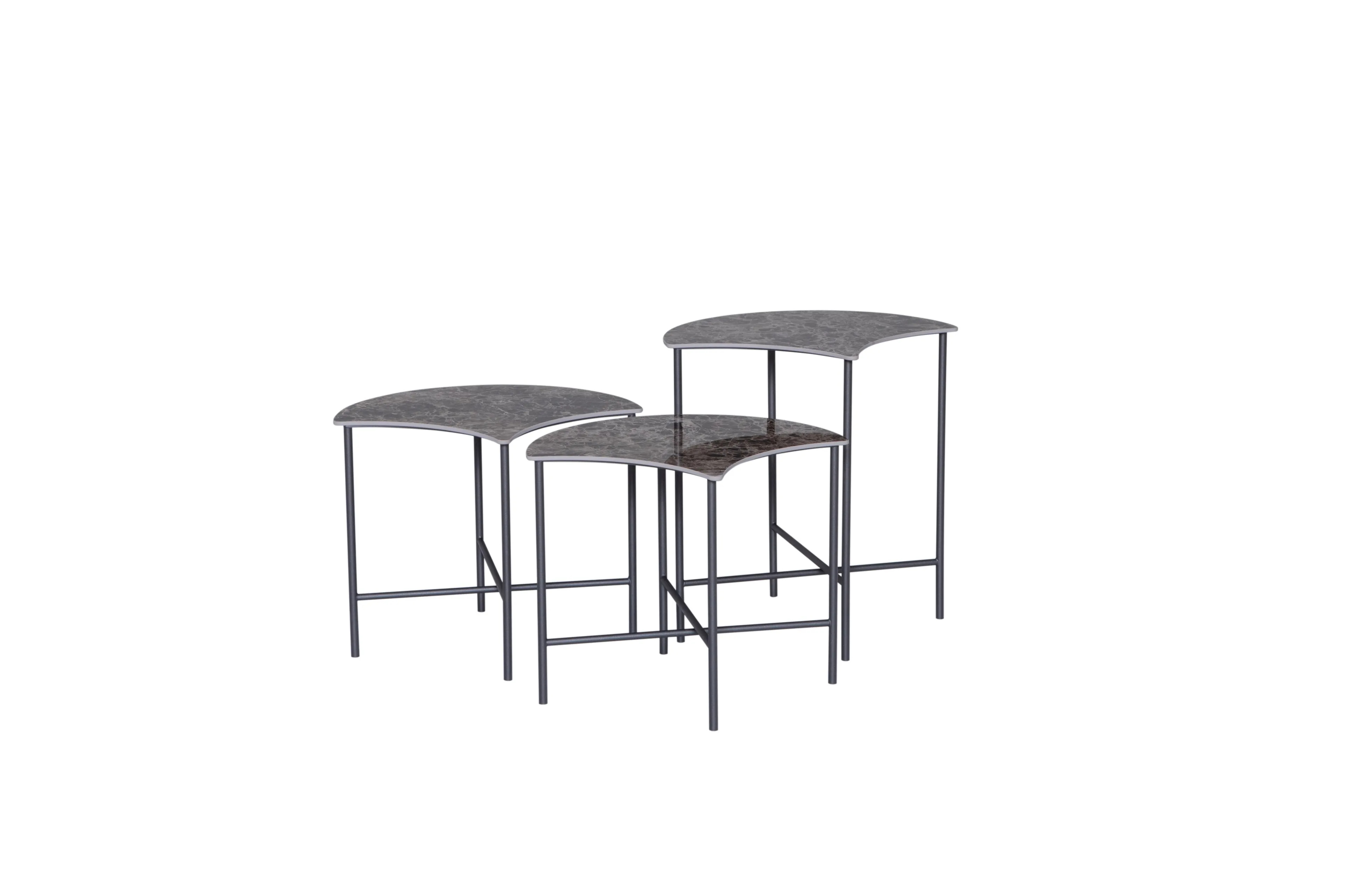 The GINCO collection features tables with a nature-inspired design, characterized by a light tubular frame and a fan-shaped top reminiscent of the Ginco leaf. These modern design tables are ideal for restaurants, conference rooms, coworking spaces, cafés, event venues, and educational institutions. The tables maintain a harmonious aesthetic even when placed side by side, showcasing an elegant and distinctive design. Available finishes for the porcelain stoneware top include onyx grey, statuario altissimo, Portoro, onyx amber, and Emperador. The metal structure is offered in matt white, carbon grey, and matt stone bronze. Complementing these tables, the collection includes ergonomic and stackable café chairs, providing durable seating solutions suitable for various settings.