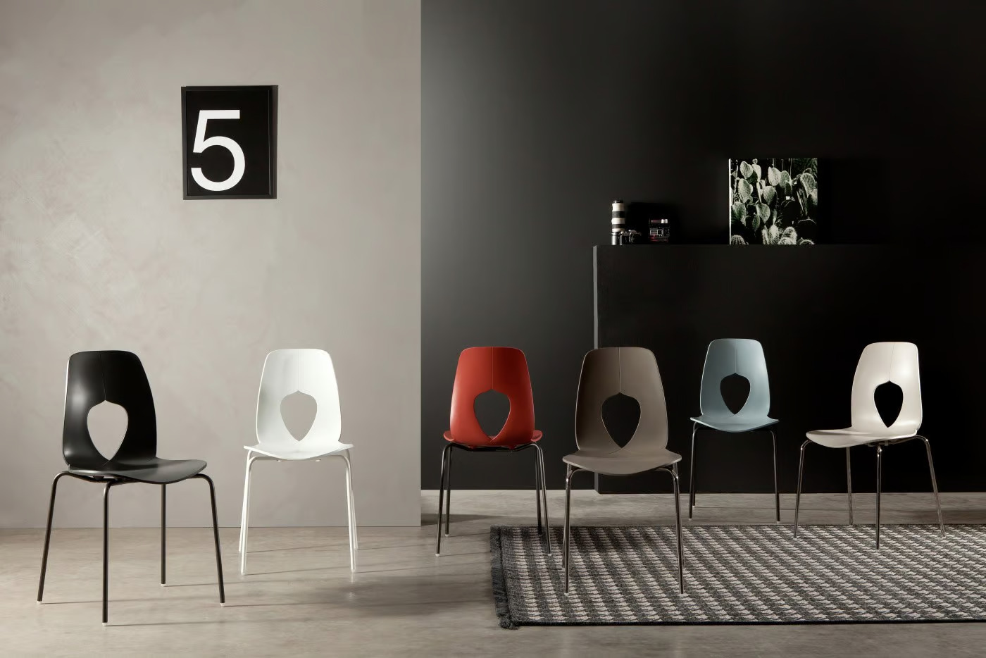 The HOLE chair is crafted from polypropylene, offering a blend of durability and eco-sustainability. Its lacquered or chromed metal frame complements a range of upholstery colors, including white, cadetto blue grey, brick red, grey sand, and mud. This versatile seating solution is suitable for various environments such as restaurants, conference rooms, coworking spaces, cafés, event venues, and educational institutions. Designed with modern aesthetics, it pairs well with dining tables and other contemporary furniture. The ergonomic design ensures comfort, while the stackable feature provides practical storage options. Ideal for settings requiring durable seating, the HOLE chair seamlessly integrates into any space, enhancing the functionality and style of conference room furniture and café chairs alike.
