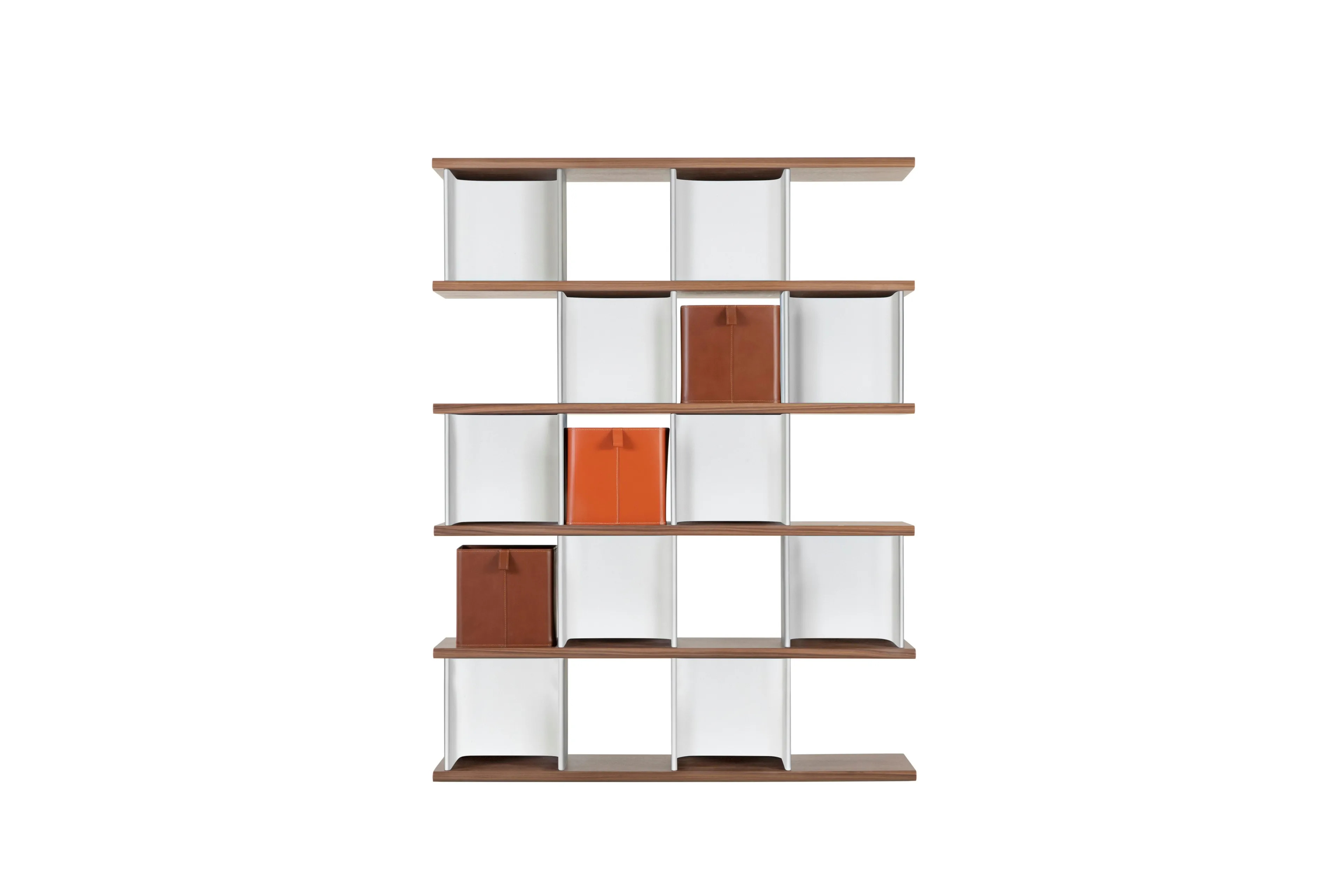 The KASPAR Bookcase serves as both a functional storage solution and a stylish room divider. Crafted from curved wood, it features an elegant design enhanced by leather or Vienna straw baskets. This modular storage furniture offers a customizable aesthetic, allowing you to select from a variety of finishes for the shelves and structure. Ideal for offices, boutique shops, hotels, libraries, and coworking spaces, it provides a versatile and minimalist storage unit that complements any environment. Its space-saving design makes it suitable for retail shelving solutions and hotel room storage, while its durable construction ensures longevity. The KASPAR Bookcase seamlessly integrates into diverse settings, offering both practicality and sophistication.
