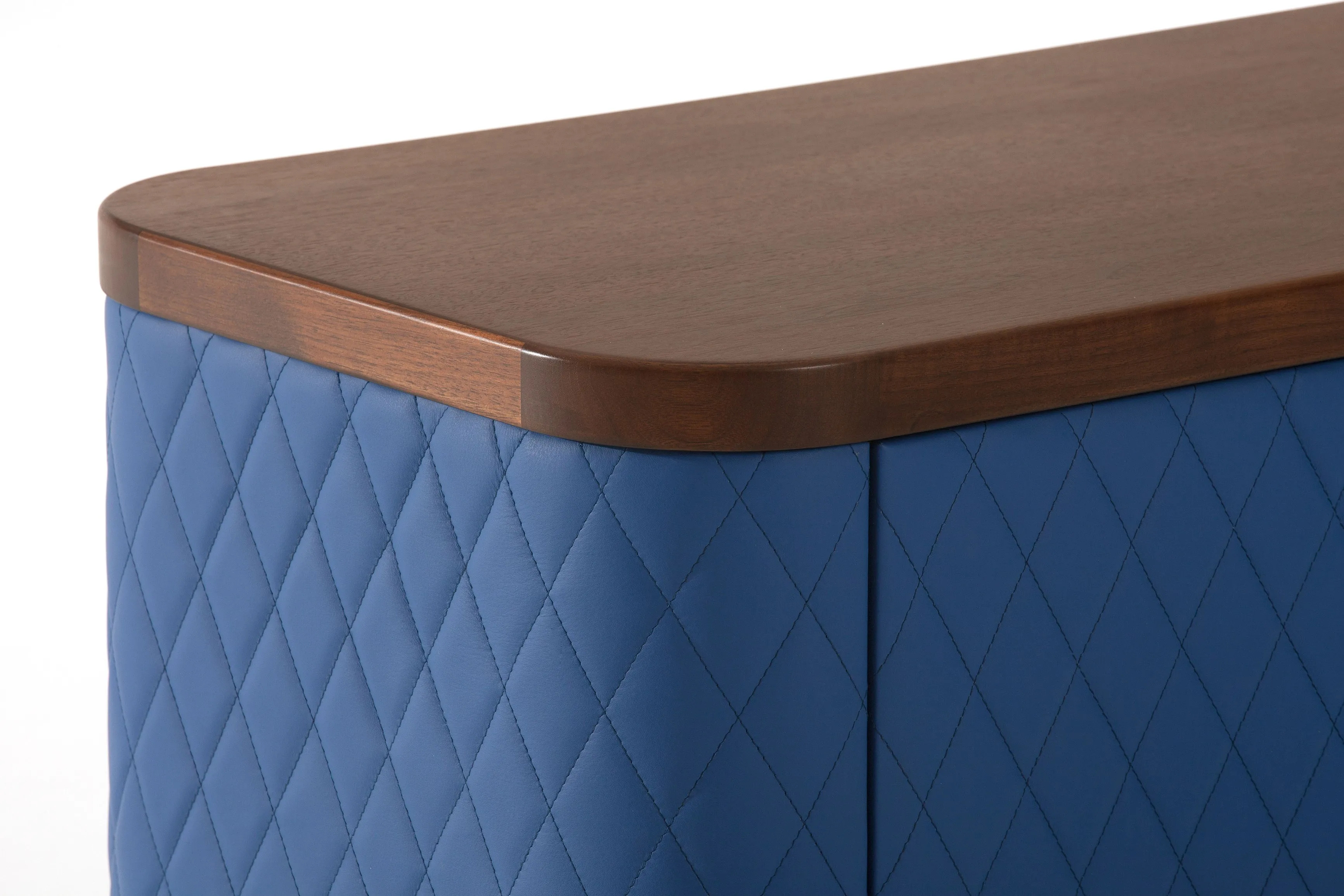 The TIFFANY sideboard offers a blend of elegance and functionality, ideal for diverse environments such as offices, boutique shops, hotels, libraries, and coworking spaces. Crafted from ash wood, it features a choice of Canaletto walnut, dark oak, or natural oak finishes, seamlessly paired with a leather or eco-leather quilted covering. This design exemplifies the finest Italian craftsmanship, merging distinct materials into a harmonious piece. TIFFANY serves as a versatile storage solution, suitable for modular storage units, space-saving furniture, and lockable office cabinets. Its minimalist design complements modern conference tables and ergonomic office chairs, while its durability makes it a reliable choice for retail shelving solutions and hotel room storage. The sideboard's sophisticated aesthetic and practical design make it a valuable addition to any setting, offering both style and utility.