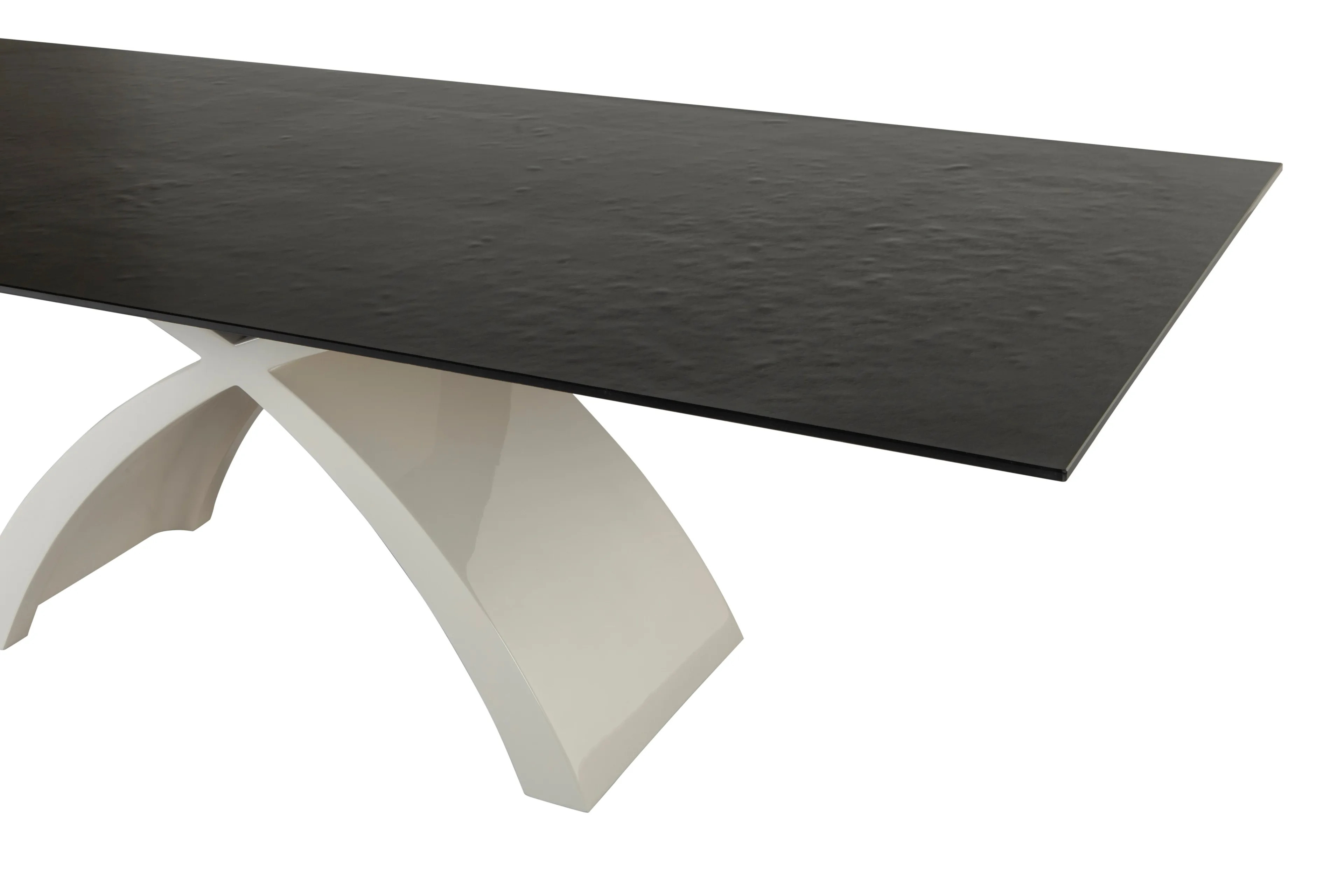 The TOKYO stained glass table offers versatility with its fixed and extendible versions, featuring an aluminum guide-bar and elegant glass tops. Its cultured marble legs, characterized by dynamic lines, can be customized with a RAL finish, providing a personalized touch to any setting. This table seamlessly blends contemporary and classic aesthetics, making it a suitable choice for dining tables in restaurants, conference room furniture, and modern design tables in coworking spaces. The wooden extendible top enhances its adaptability, allowing for numerous configurations. Ideal for educational institutions and event venues, the TOKYO table complements durable seating options like café chairs, ergonomic chairs, and stackable chairs, ensuring a cohesive and stylish environment.