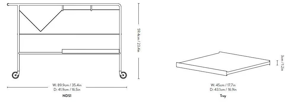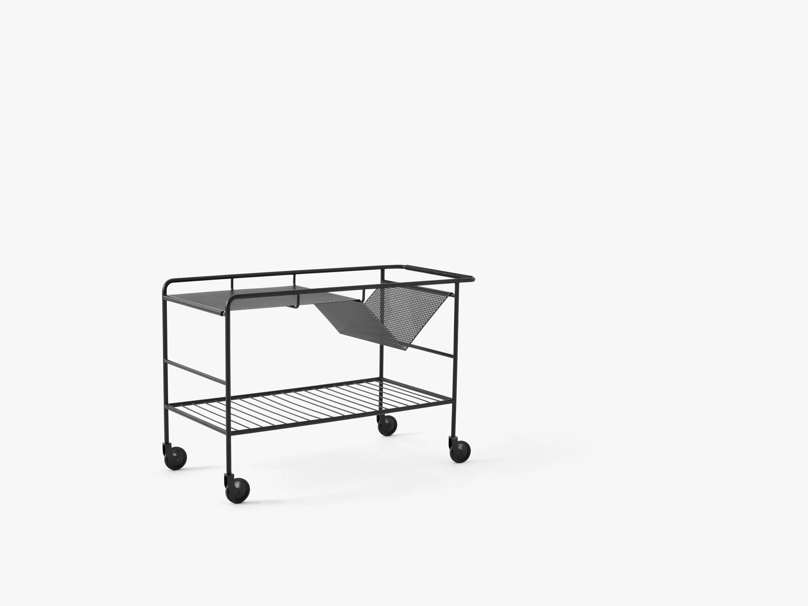 The ALIMA NDS1 is a versatile modular storage unit designed to accommodate a variety of environments, from offices and boutique shops to hotels and libraries. Its unique V-shaped design offers an efficient space-saving solution, ideal for organizing magazines, drawings, and other items. Constructed from durable powder-coated steel, this storage furniture features walnut or oak trays and a leather handle, ensuring both functionality and style. The trolley is crafted through a meticulous process of bending and welding tubes, with a leather cord intricately webbed around the handle. Available in chrome and black metal finishes, as well as lacquered oak and walnut wooden finishes, the ALIMA NDS1 serves as a minimalist storage unit that seamlessly integrates into any setting. Produced in China by Nine United, this piece exemplifies quality and design excellence.