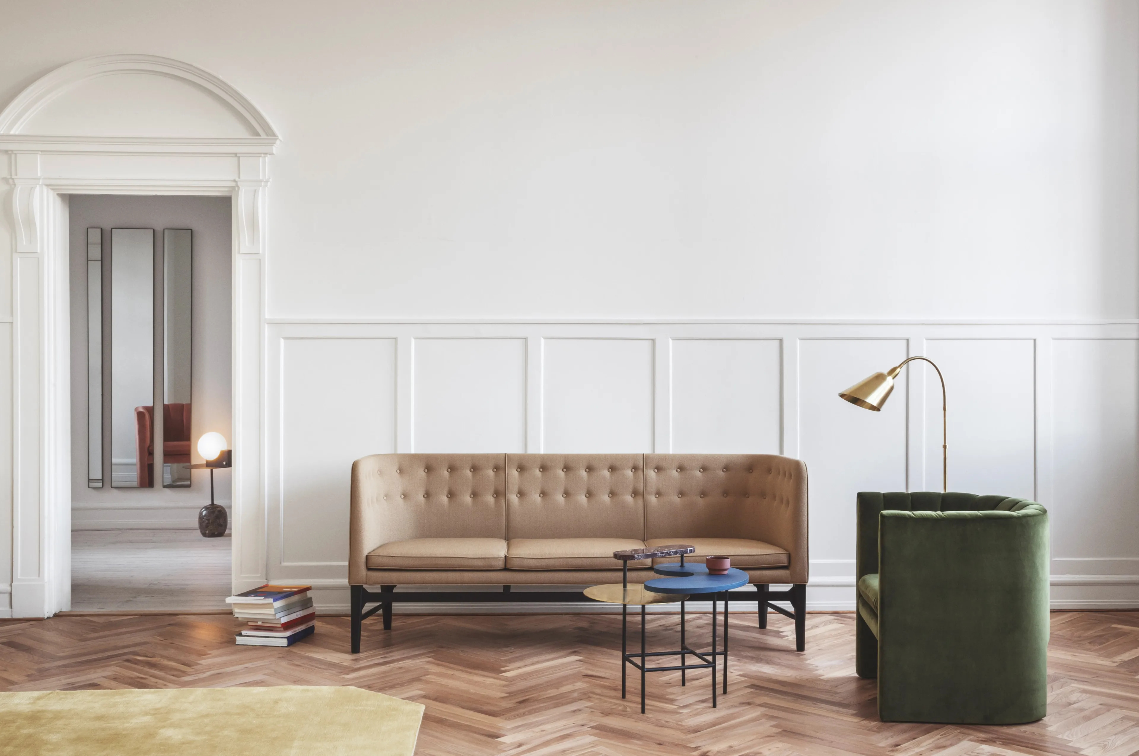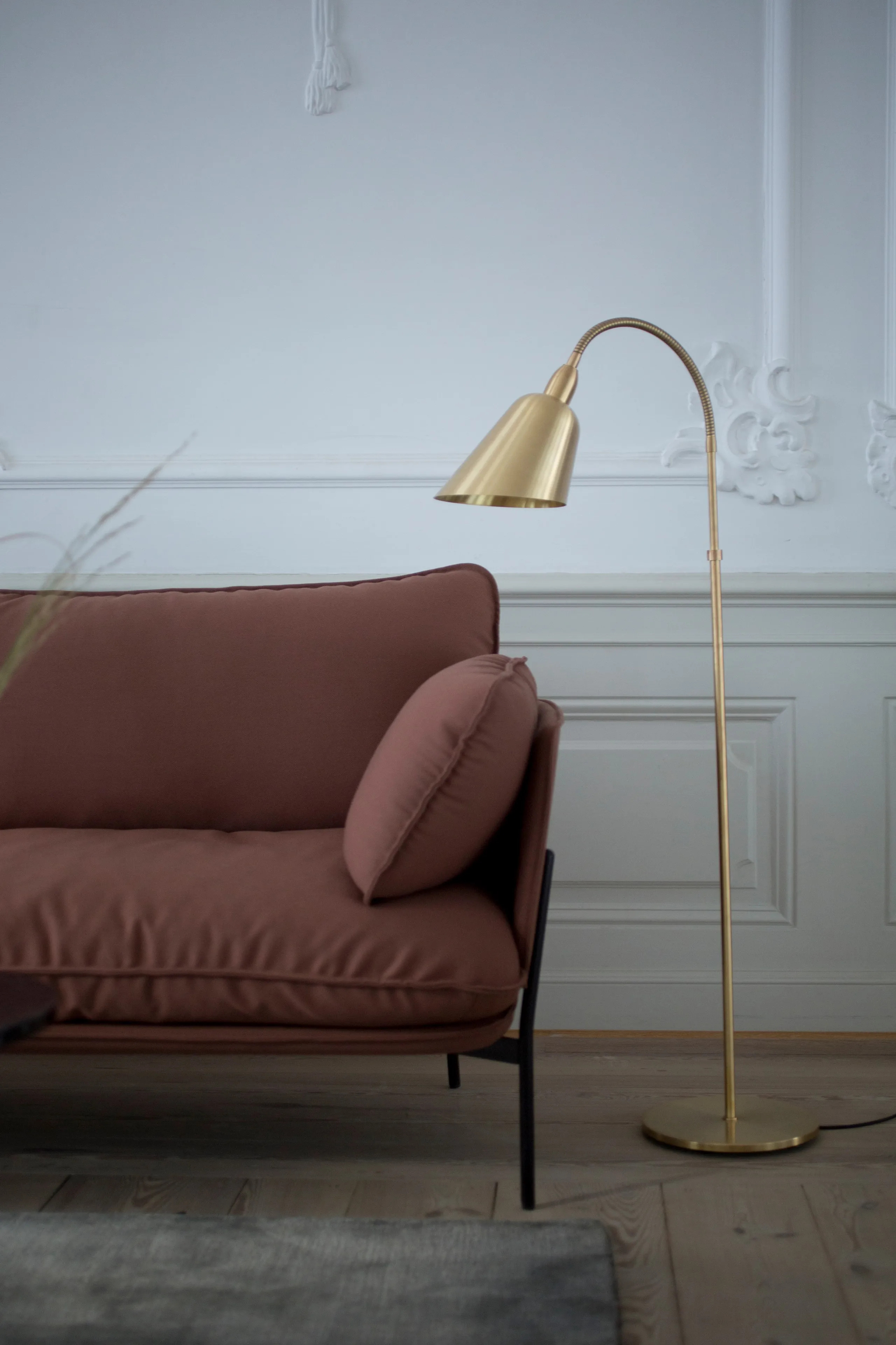 The BELLEVUE AJ7 lamp, designed by renowned Danish architect Arne Jacobsen, seamlessly blends the minimalism of the Modernist Movement with Bauhaus functionalism. This iconic piece, a hallmark of Danish Modernism, is characterized by its elegant lines and organic forms. The lamp's shade is crafted from a single piece of metal, available in satin polished and lacquered brass or a combination of lacquered aluminum and steel, with a cast iron base. It features a 2-meter fabric cord with an on-off switch. Available in Black & Steel, Black & Brass, White & Brass, and Satin Polished Brass, it operates at 220-240V – 50HZ and supports E27 bulbs up to 25 watts, compatible with energy classes A++ to E. The lamp is CE, IP20, and Class II certified. Clean with a soft, dry cloth, ensuring the electricity supply is switched off beforehand.