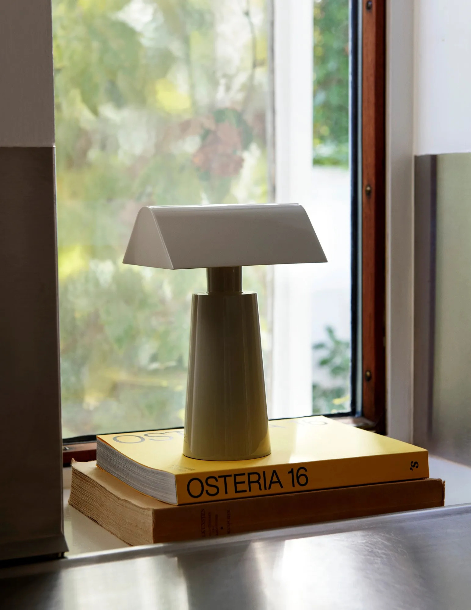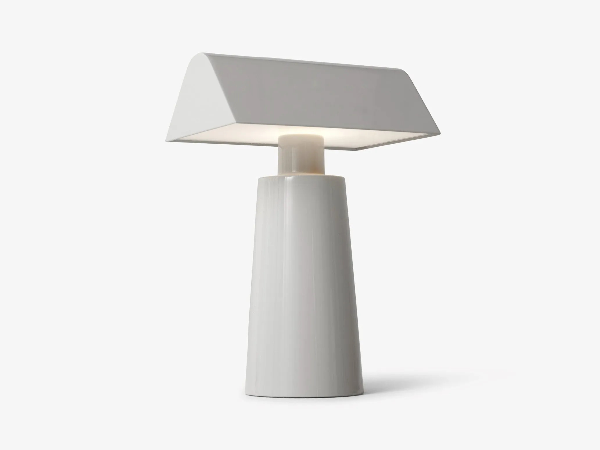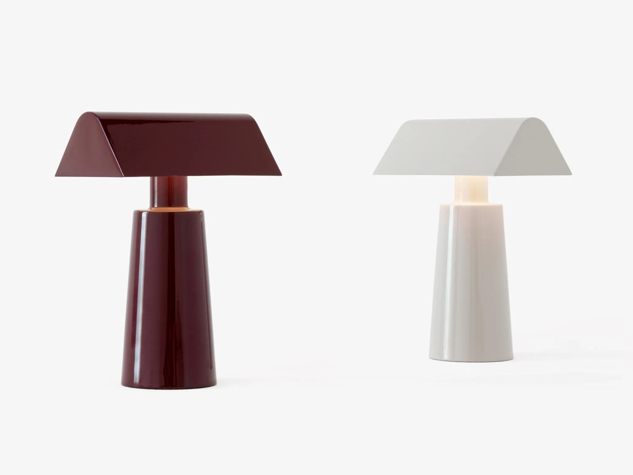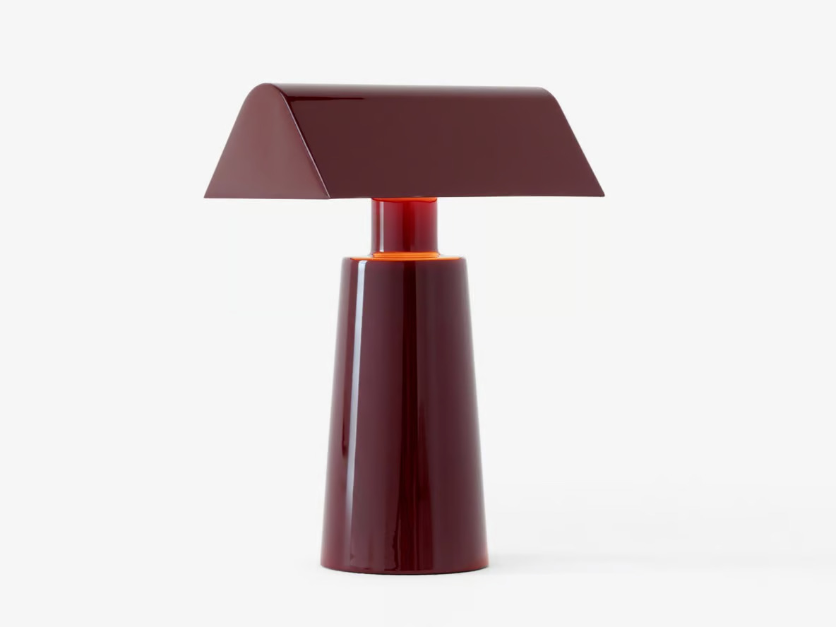 The CARET MF1 offers a versatile lighting solution, seamlessly blending work and home environments. Inspired by the classic 'bankers lamps' with a modern twist, this piece features a sleek, linear silhouette crafted entirely from lacquered steel. Its design includes a rounded base and a long, pyramid-shaped top, providing soft, diffused ambient lighting. Available in Dark Burgundy and Silk Grey, it complements various interior styles. The lamp is constructed with spun and welded metal, while the battery compartment is made from molded ABS. It operates on a rechargeable battery with an 11-hour lifespan and a 3.5-hour charging time. The LED light source delivers 100 lumens with a color temperature of 2700K and a CRI of over 85, ensuring energy-efficient lighting. The dimmable feature offers four levels of brightness, enhancing its functionality in diverse settings.