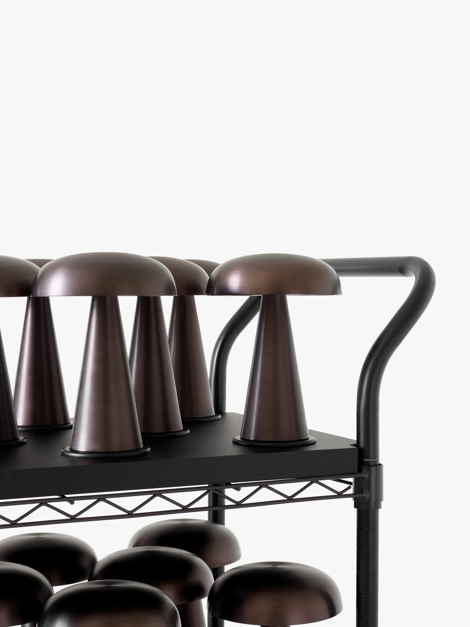 The COMO SC53, designed by Space Copenhagen, is a versatile LED interior lighting solution ideal for hotels, offices, retail spaces, restaurants, and residential interiors. This modern chandelier design features a robust anodized aluminum base that elegantly tapers into a softly curved, mushroom-shaped shade. As a decorative pendant light, it offers ambient lighting with three dimmable settings (100%, 70%, 40%) and operates for up to 11 hours on a single charge, extendable to 20 hours with an additional battery. The energy-efficient lighting design includes a 1W LED bulb with a 100-lumen output and a color temperature of 2700K, ensuring a warm and inviting atmosphere. Easily rechargeable via a magnetic USB cable or an optional charging tray, the COMO SC53 is crafted for indoor use, with a replaceable battery and bulb available from &Tradition.
