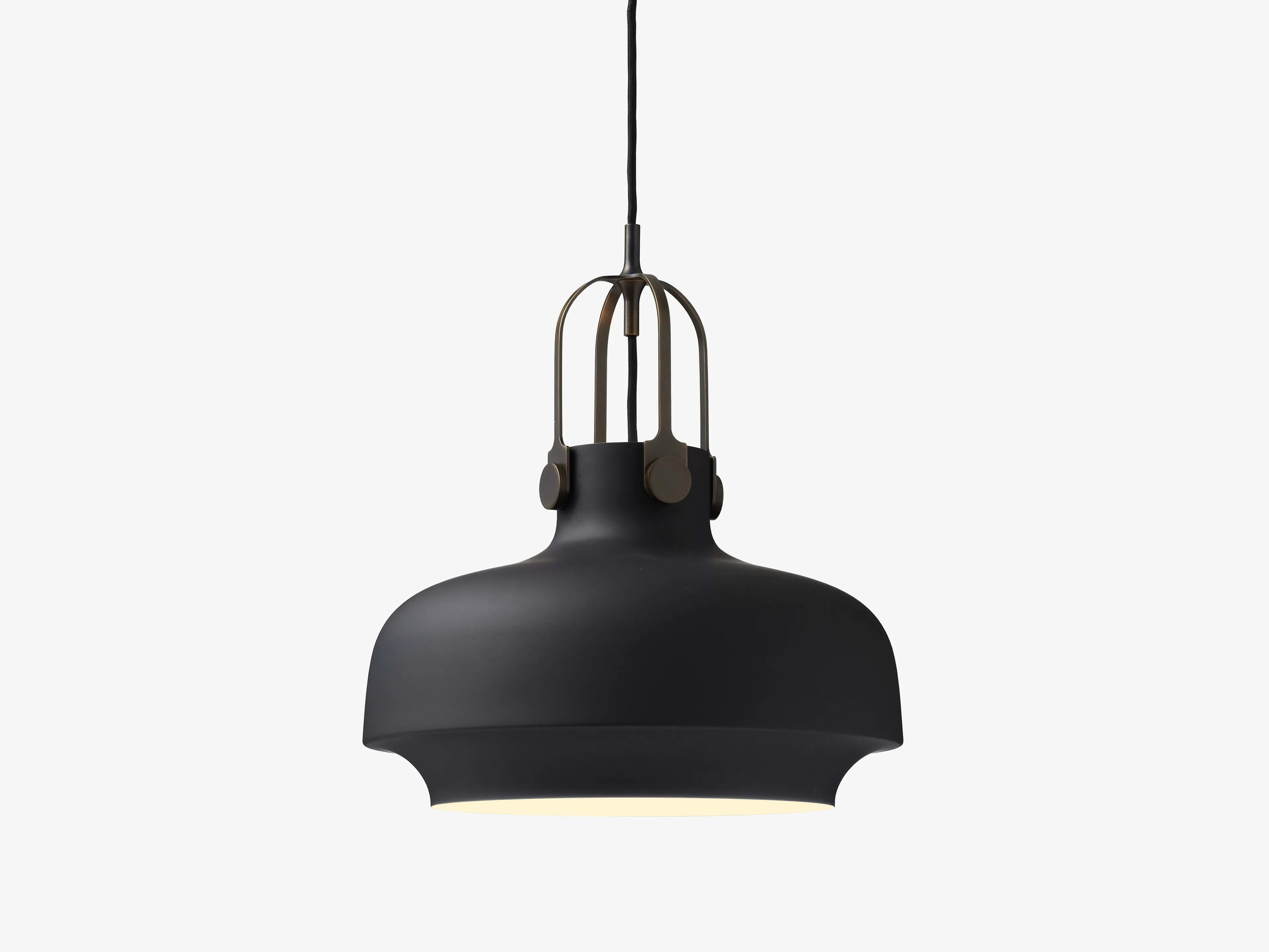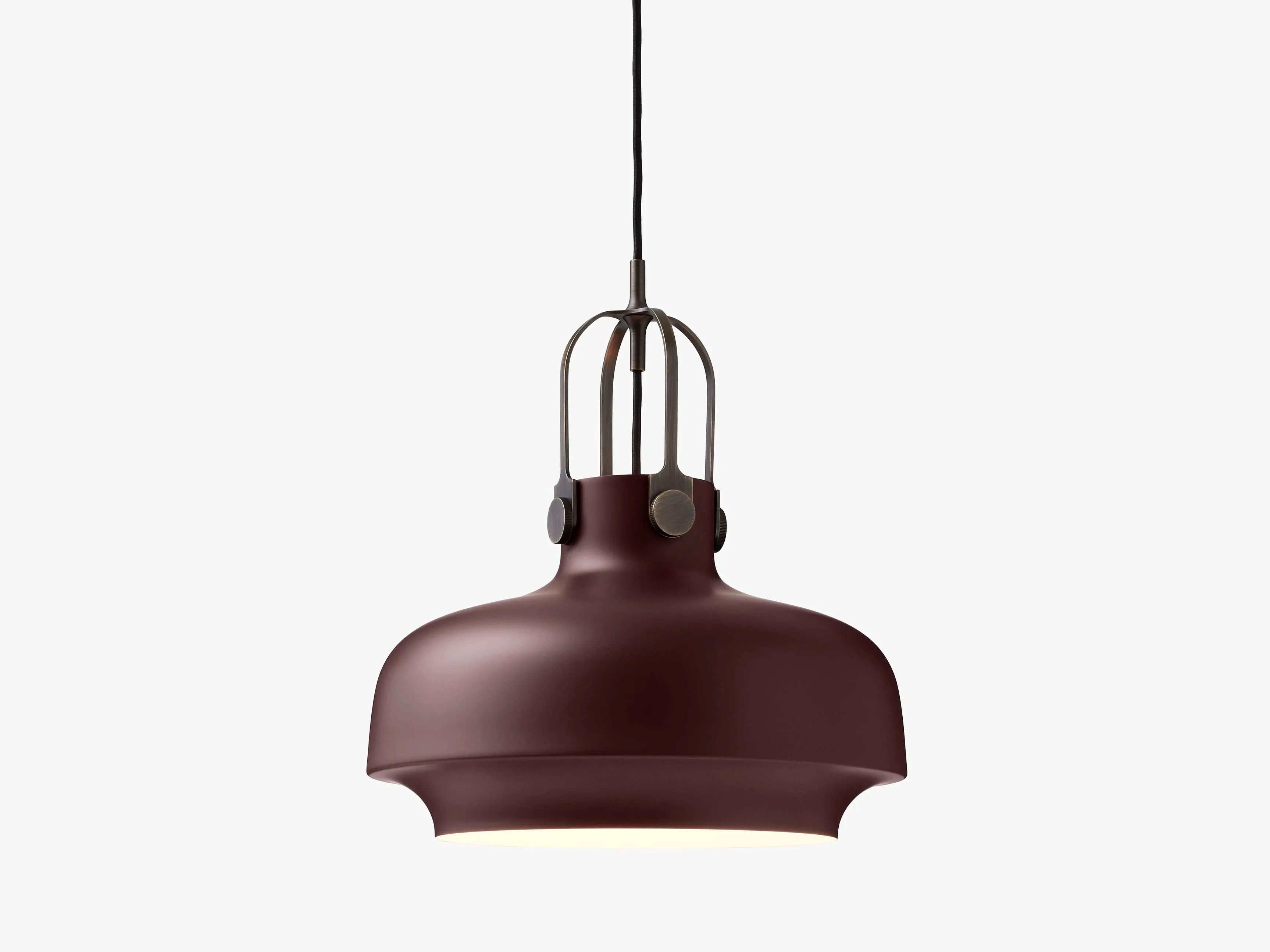 The COPENHAGEN SC7 Metal Pendant Lamp embodies a harmonious blend of classic and modern aesthetics, ideal for diverse environments such as hotels, offices, retail spaces, restaurants, and residential interiors. Crafted with a spun metal shade and a bronzed brass bracket, this decorative pendant light offers a sophisticated industrial charm. Available in matt finishes of Black, Stone, and Plum, it features a 4-meter black textile cord. Designed for LED interior lighting, it supports E27 bulbs up to 100 watts, compatible with energy classes A++ to E, ensuring energy-efficient lighting. The lamp operates on 220-240V at 50Hz and includes a canopy. Certified with CE, IP20, and Class II, it is suitable for indoor use. For maintenance, clean with a soft, dry cloth, ensuring the power supply is off.