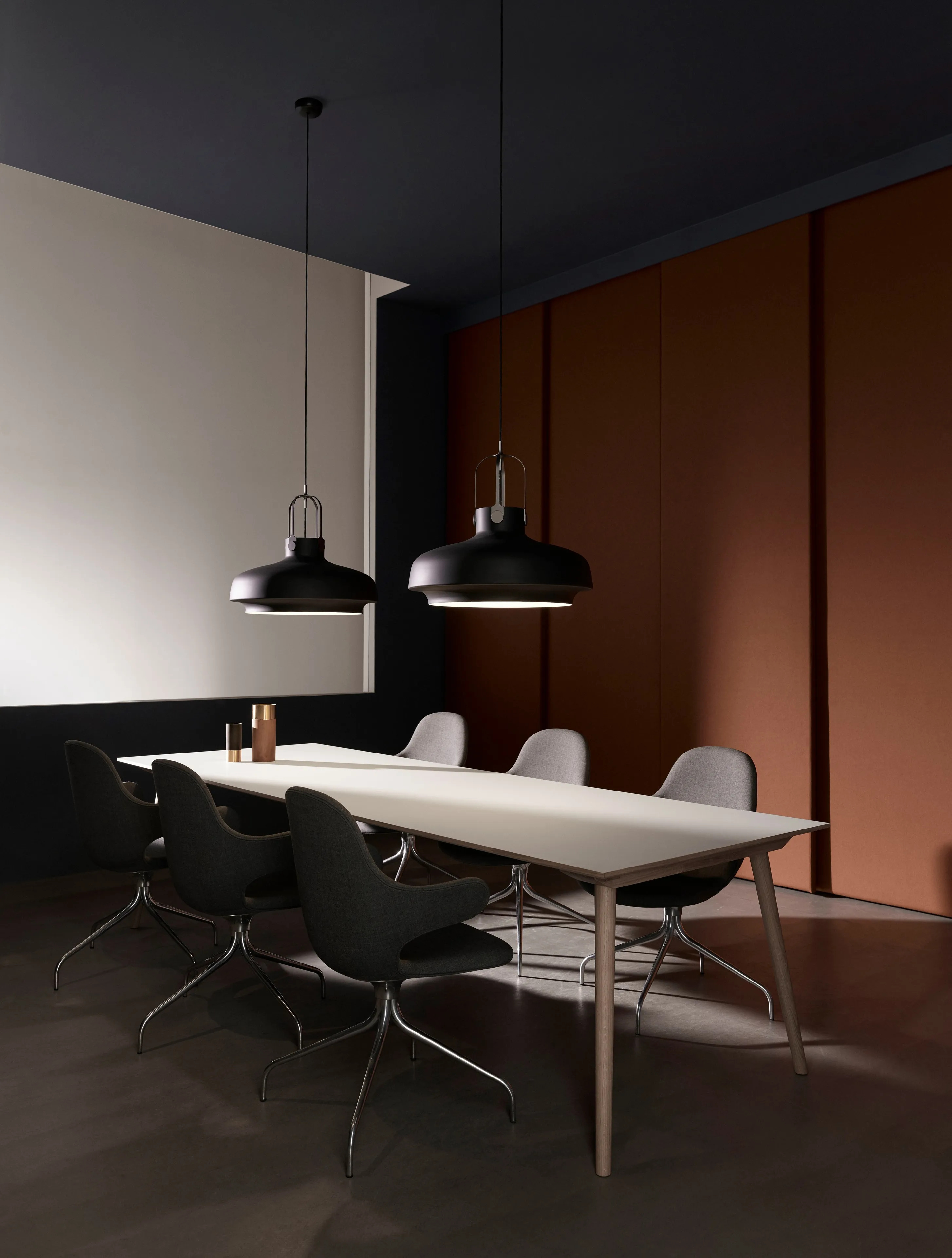 The COPENHAGEN SC8 pendant light embodies a harmonious blend of classic and modern aesthetics, ideal for hotels, offices, retail spaces, restaurants, and residential interiors. This decorative pendant light features a shade crafted from a single piece of lacquered aluminum, paired with a bronzed brass bracket that undergoes a specialized plating process for a refined matte finish. Available in Matt Black, Matt Stone, and Matt Plum, it offers versatile options for various interior styles. Designed for LED interior lighting, it supports E27 bulbs up to 150 watts and is compatible with energy-efficient lighting classes A++ to E. The 6-meter fabric cord provides flexibility in installation, while the included canopy ensures a seamless setup. Certified with CE, IP20, and Class II, this modern chandelier design is both functional and stylish. Cleaning is straightforward with a soft, dry cloth, ensuring the fixture remains a centerpiece of ambient lighting.