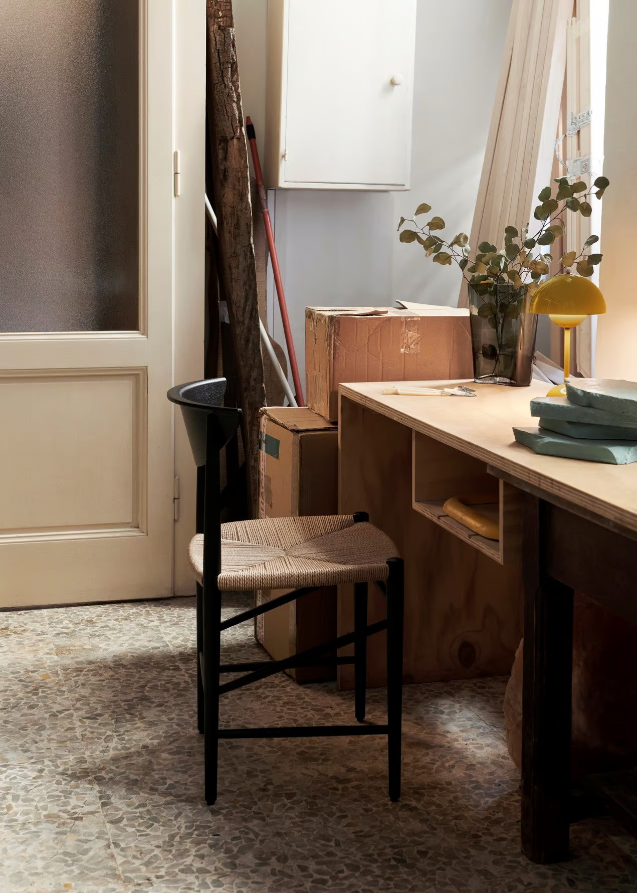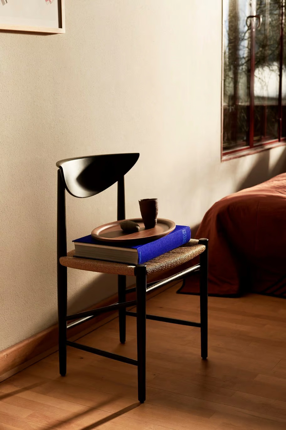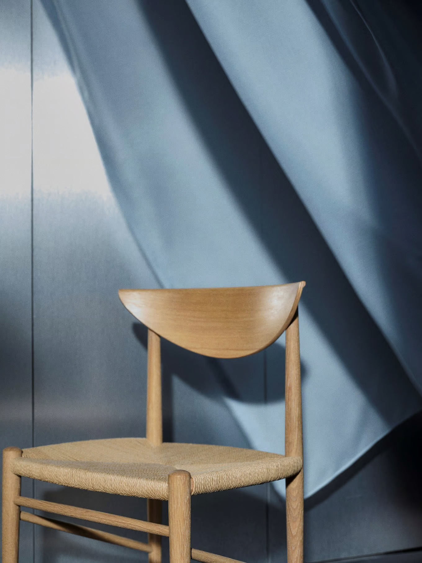 The DRAWN HM3 chair, designed by Hvidt & Mølgaard, exemplifies Danish design through its traditional craftsmanship and use of organic materials. Ideal for dining tables in restaurants, conference room furniture, or café chairs, it offers a blend of modern design and durability. Available in oiled oak, oiled walnut, soaped oak, and black lacquered oak, the chair comes in two styles: a wider model with armrests and one without. For added comfort, a cushion in Prescott black or cognac leather is available. Constructed from solid wood, form-pressed wood veneer, and hand-woven paper cord, the chair is stackable and tested for strength and safety under EN 16139 Level 2 standards. Produced by Kvist Industries A/S in Latvia, it ensures reliable and ergonomic seating for various settings.