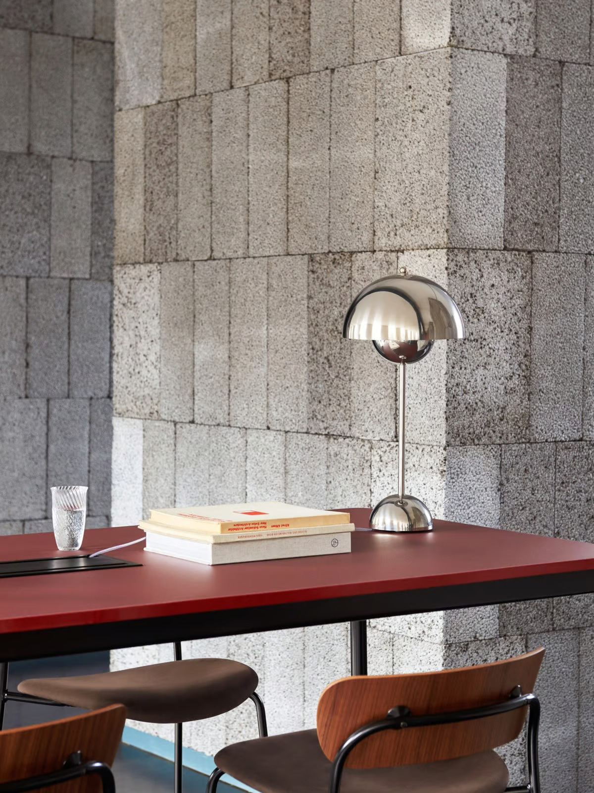 The FLOWERPOT VP3 lamp, designed by Verner Panton, embodies the spirit of the late 60s with its modern chandelier design, reflecting a shift towards open-mindedness and harmony. Crafted from lacquered metal, brass, or stainless steel, this decorative pendant light features two spun metal shades. Available in a variety of colors, including Tangy Pink, Mustard, and Cobalt Blue, it complements diverse interior aesthetics. The lamp operates on 220-240V and supports an E27 bulb up to 40 watts, compatible with energy classes A++ to E, promoting energy-efficient lighting. With a 2-meter clear PVC cord, it is suitable for indoor environments like hotels, offices, and retail spaces. Certified with CE, IP20, and Class II, it ensures safety and reliability. For maintenance, use a soft, dry cloth and ensure the power supply is off during cleaning.