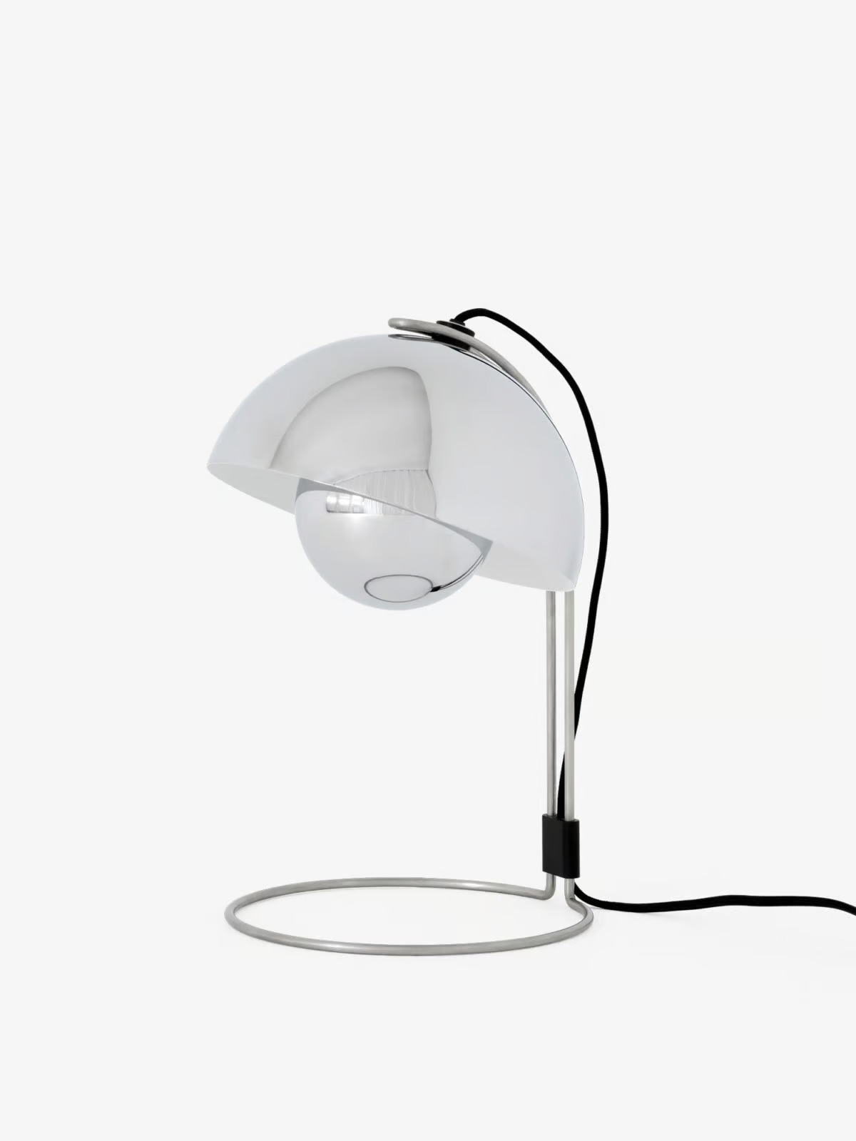 The FLOWERPOT VP4 lamp, designed by Verner Panton, embodies the spirit of the late 60s with its modern chandelier design, reflecting a shift towards open-mindedness and harmony. Crafted from lacquered metal, this piece features two shades formed through deep drawing, offering a sleek and contemporary aesthetic. Ideal for hotels, offices, retail spaces, restaurants, and residential interiors, it provides ambient lighting that complements various settings. Compatible with E27 bulbs up to 40 watts, it supports energy-efficient lighting designs, accommodating bulbs from energy class A++ to E. The lamp operates on 220-240V at 50Hz and includes a 2-meter fabric cord. Available in matte black, matte white, and chrome-plated finishes, it is certified with CE, IP20, and Class II standards. For maintenance, use a soft, dry cloth, ensuring the power supply is off during cleaning.