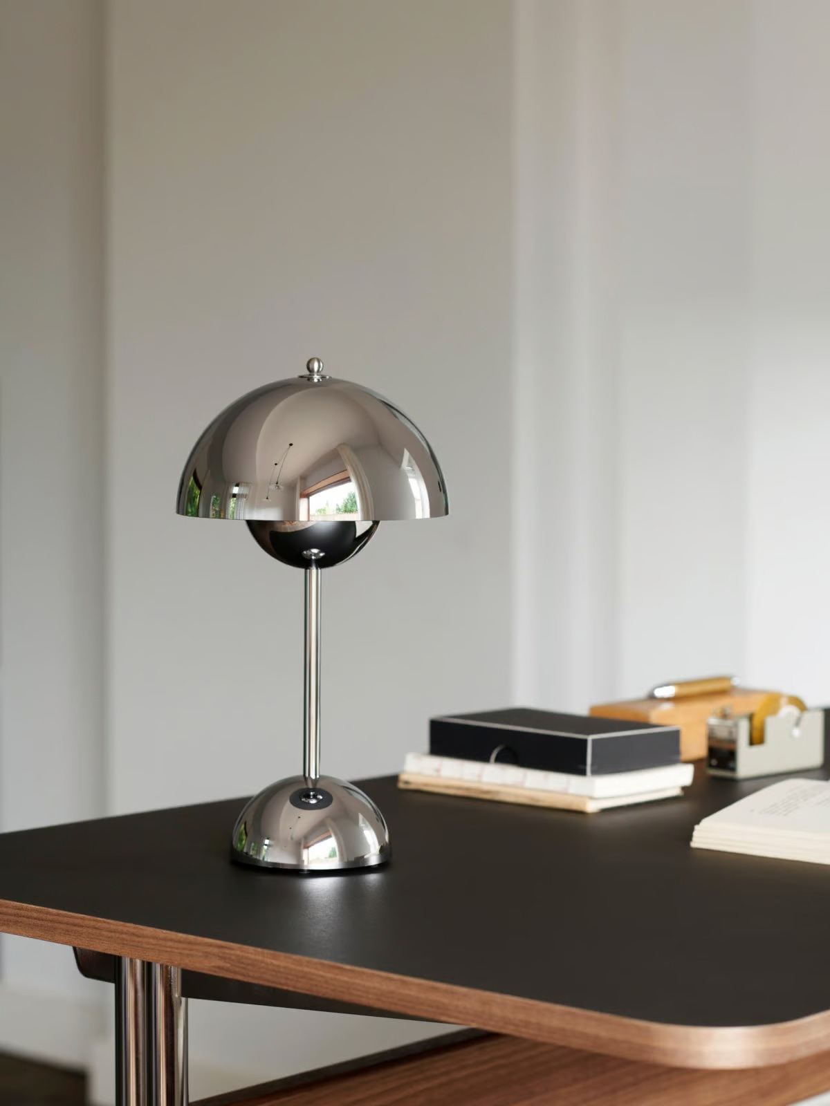 The FLOWERPOT VP9, designed by Verner Panton, is a versatile LED interior lighting solution that combines modern chandelier designs with energy-efficient lighting. This portable, lightweight lamp features a rounded pendant suspended from a semi-domed upper shade, crafted from durable polycarbonate and steel. Available in a variety of contemporary colors, it offers ambient lighting suitable for hotels, offices, retail spaces, restaurants, and residential interiors. The VP9 is equipped with a USB charging cable, providing up to 10 hours of illumination after an 8-hour charge. Its 3W LED board delivers 104 lumens with a color temperature of 2700K, ensuring a warm glow. The lamp includes a dimmer with three levels of brightness and is compatible with energy-efficient lighting designs. Certified with CE, CB, and IP44, it is intended for indoor use but can be temporarily used outdoors.