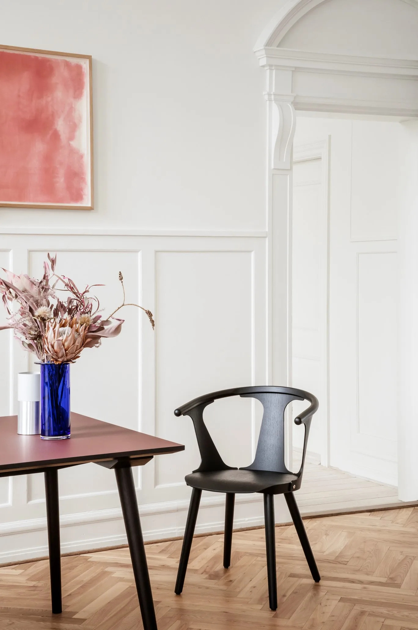 The IN BETWEEN SK6 table, designed by Sami Kallio, embodies the essence of Scandinavian design and craftsmanship. It combines traditional woodworking techniques with a keen attention to detail, making it ideal for restaurants, conference rooms, coworking spaces, cafés, event venues, and educational institutions. The tabletop features oak veneer on both the surface and edges, while the legs are crafted from solid wood, ensuring durability and stability. Wood blocks securely attach the legs to the tabletop, enhancing its robust construction. Available in clear lacquered oak, smoked lacquered oak, and black lacquered oak, this table complements various interior styles. Certified for strength, durability, and safety under EN 15373 Level 2, it is a reliable choice for environments requiring durable seating and modern design tables.