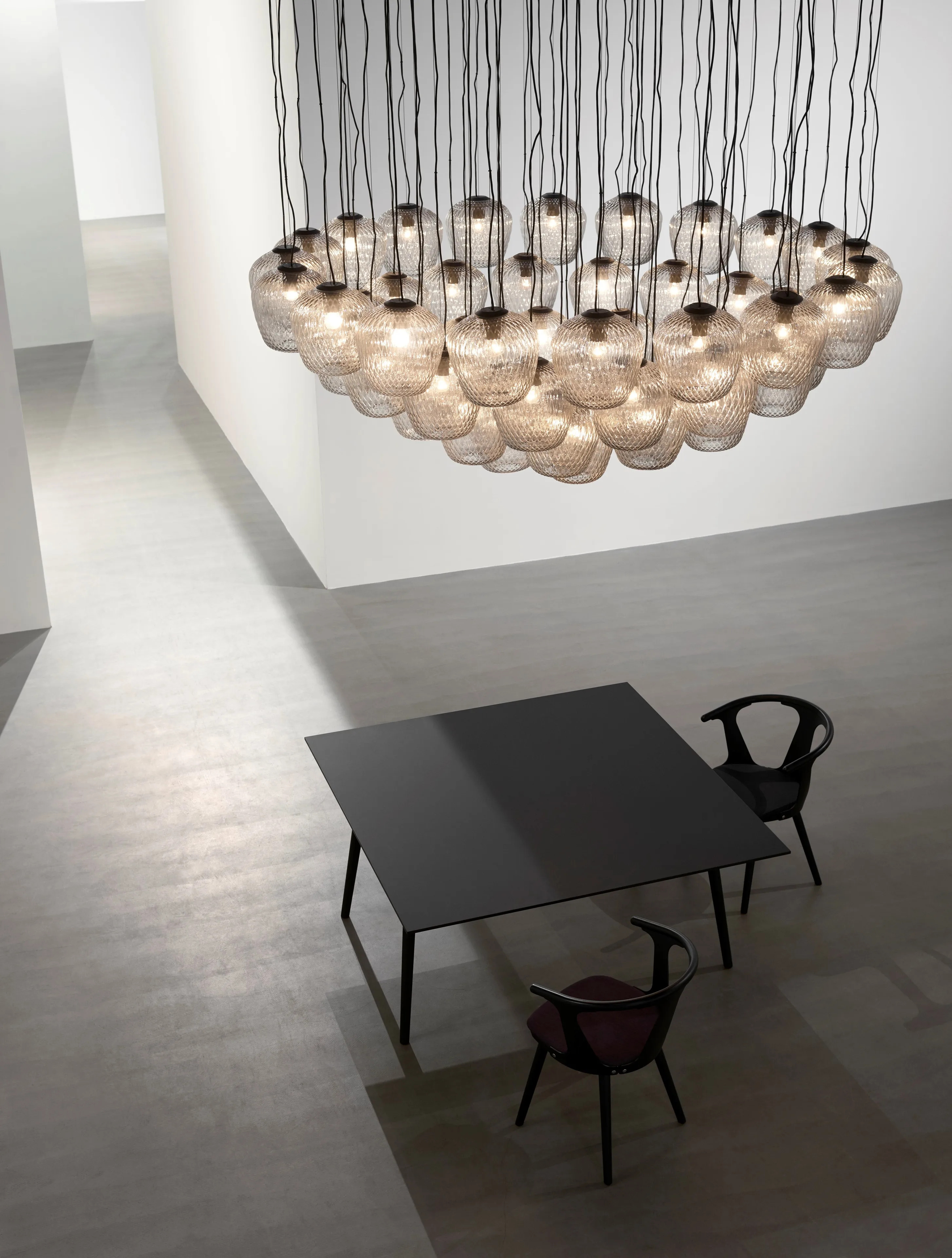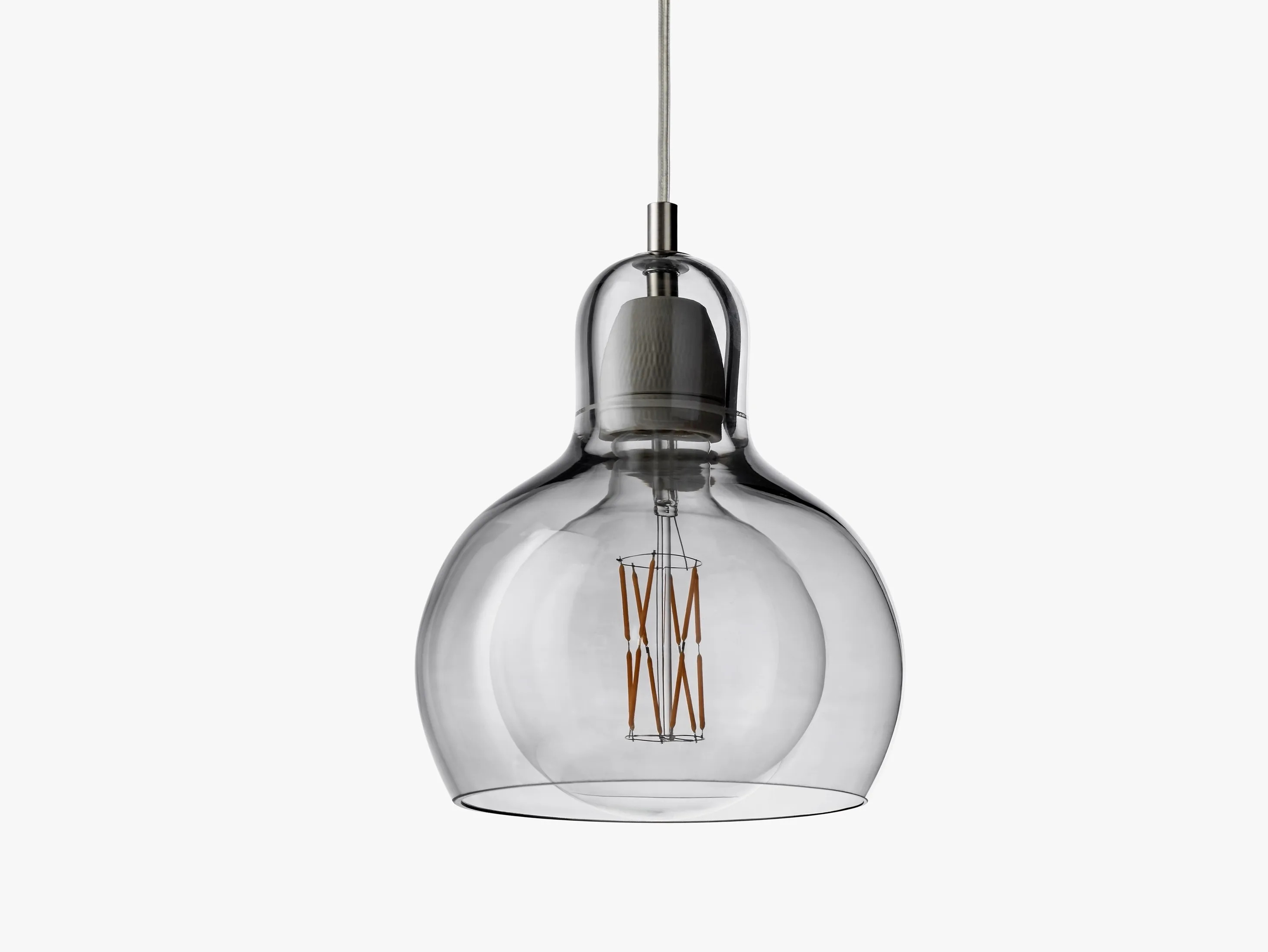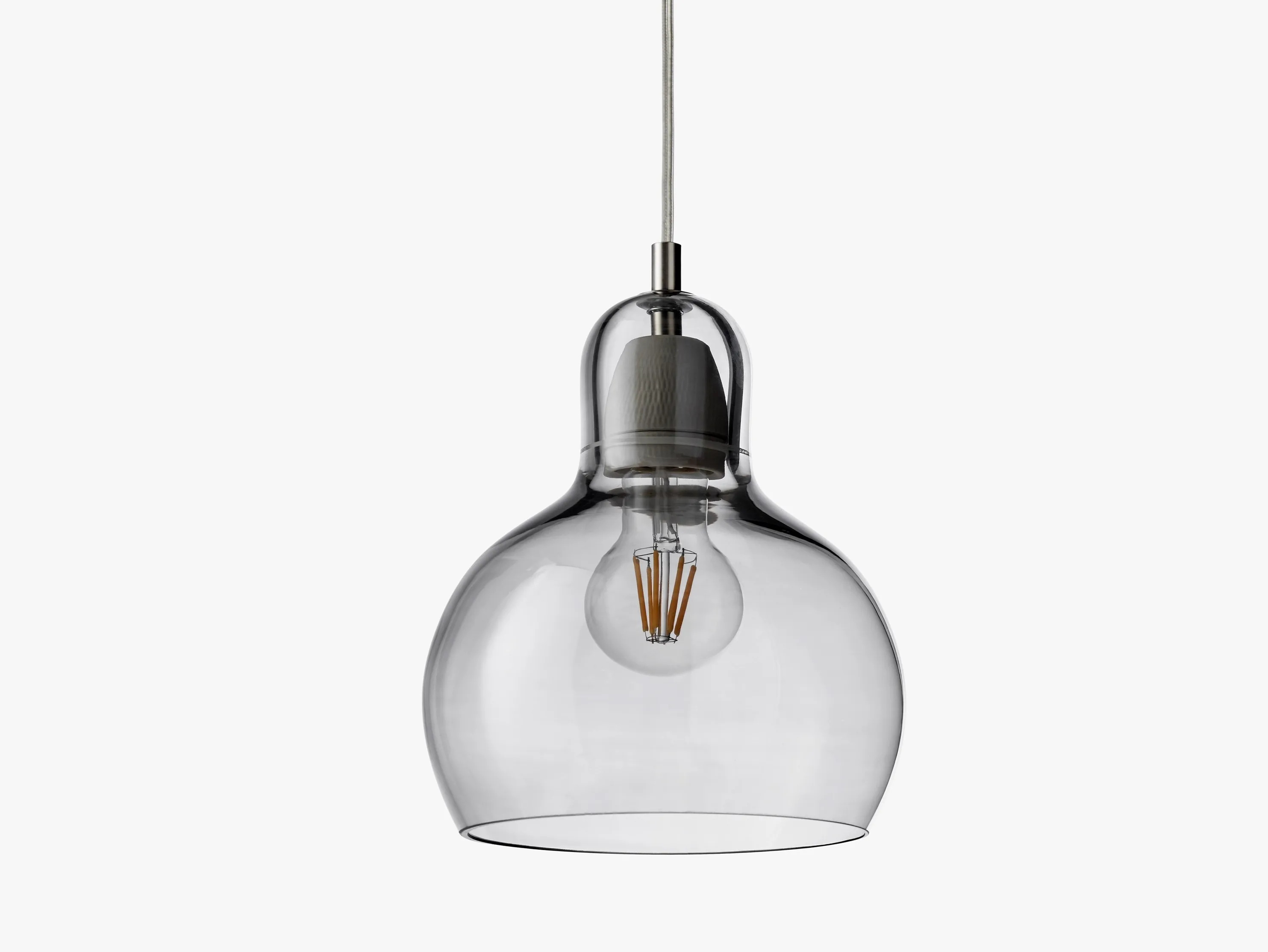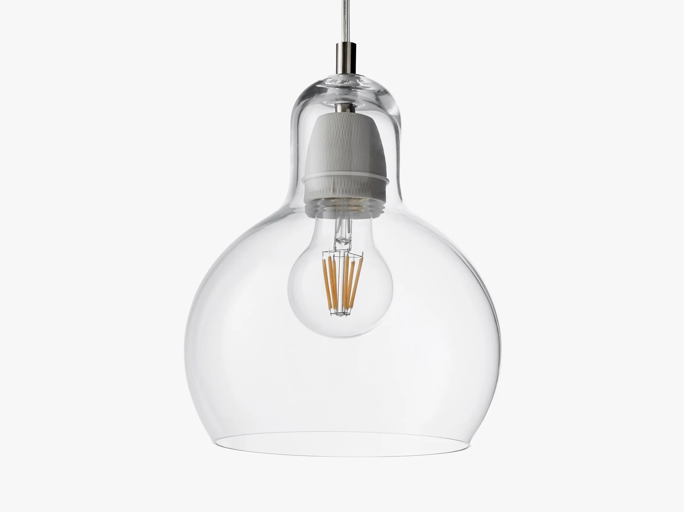 The MEGA BULB SR2 offers a sophisticated solution for LED interior lighting in expansive spaces such as hotels, offices, retail environments, and restaurants. This decorative pendant light, a larger counterpart to the original Bulb, is crafted with mouth-blown glass, showcasing unique irregularities that highlight the artisan's skill in transforming raw materials into a modern chandelier design. Available in clear, silver lustre, and gold finishes with either PVC or fabric cords, it complements various interior styles. The porcelain lamp holder supports an E27 bulb up to 60 watts, compatible with energy-efficient lighting designs rated A++ to E. Operating at 220-240V, 50Hz, the luminaire includes a 300cm cord and canopy. Certified to CE, IP20, and Class II standards, it requires a soft dry cloth for maintenance, ensuring longevity in ambient lighting applications.