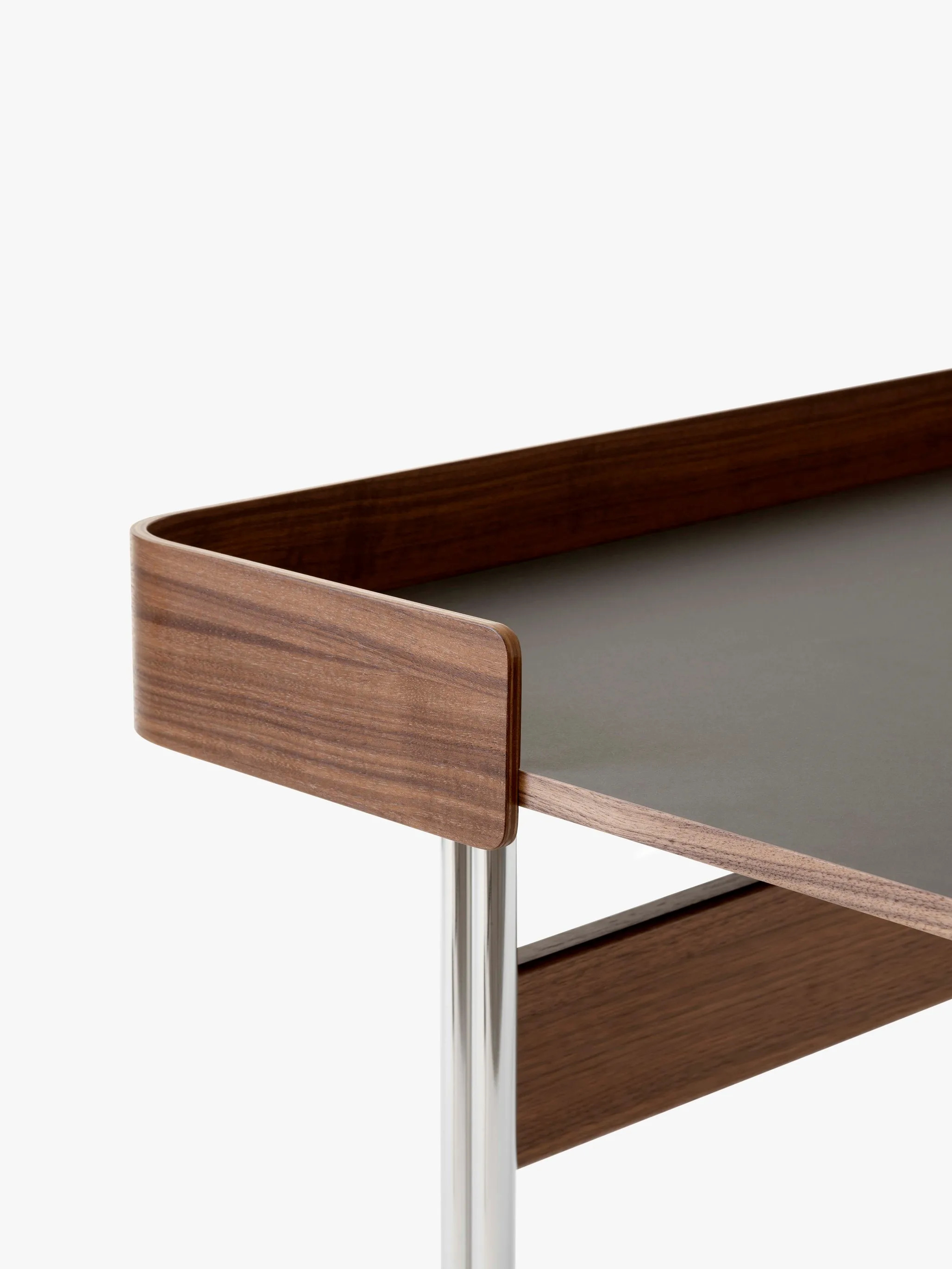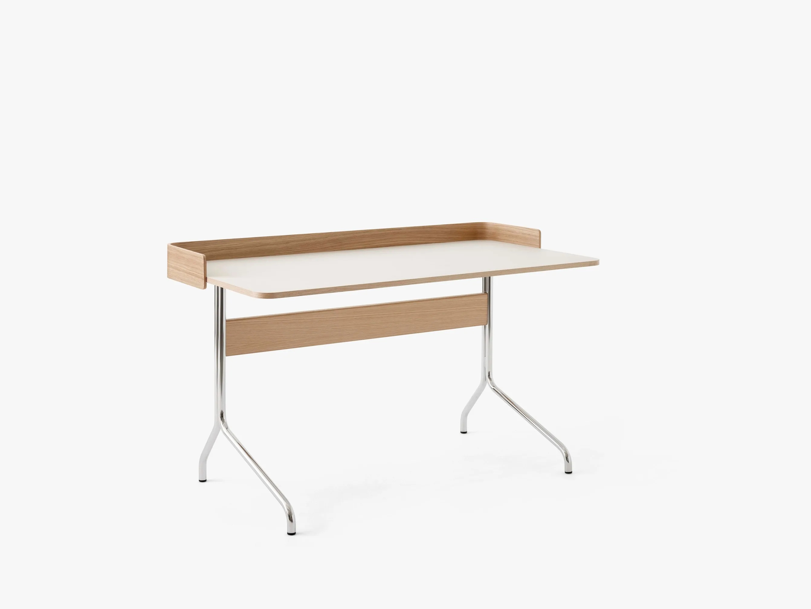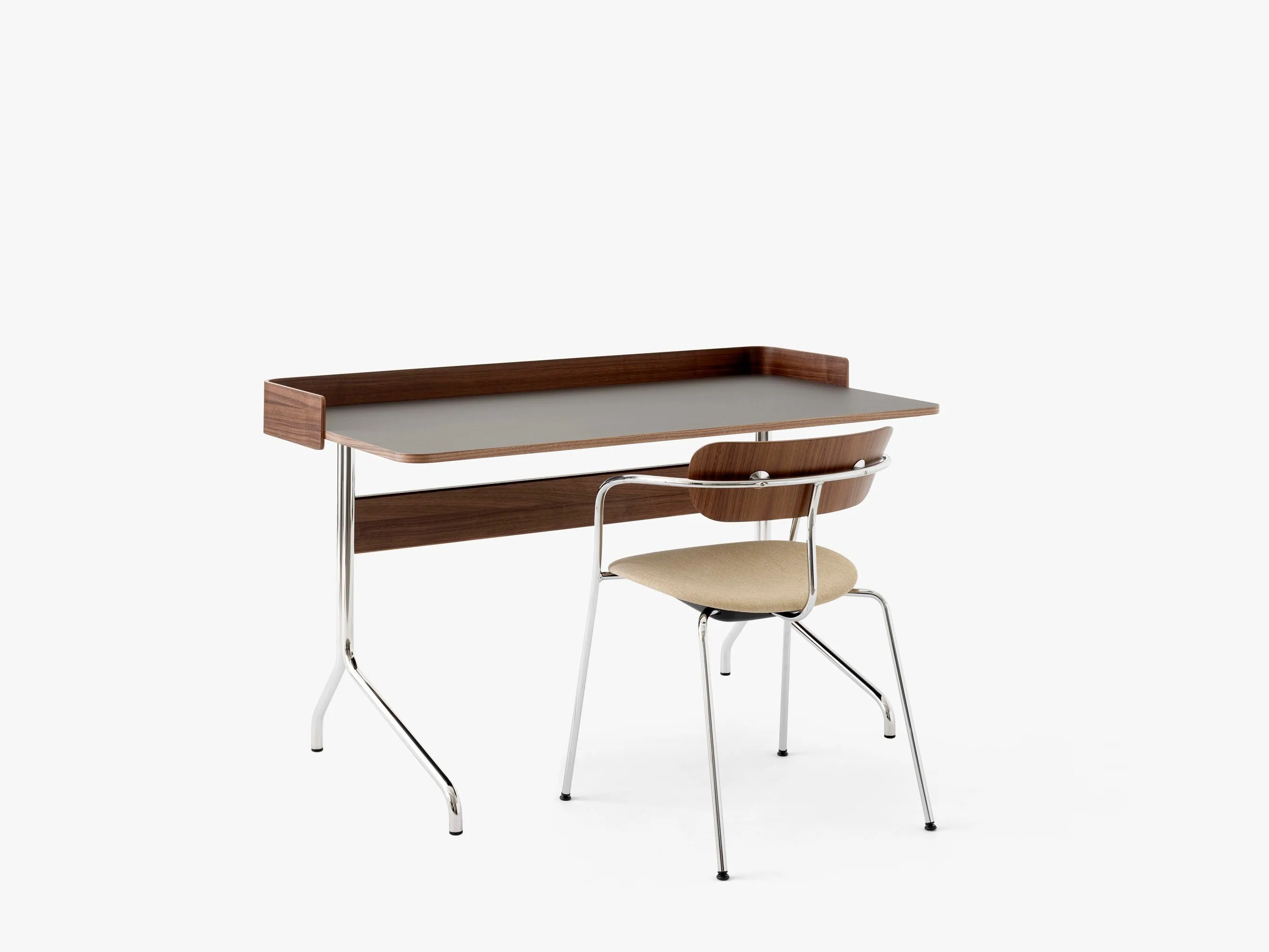 The PAVILION AV17 series, inspired by the renowned Langelinie Pavilion, offers a blend of modern design and functionality, ideal for restaurants, conference rooms, coworking spaces, cafés, event venues, and educational institutions. This collection features dining tables and café chairs crafted with durable materials, ensuring longevity in high-traffic areas. The tables are constructed with a linoleum-laminated tabletop and veneered edges, supported by bent steel tube legs, providing a sleek and sturdy foundation. Available in finishes like Mushroom Linoleum with lacquered oak and Iron Linoleum with lacquered walnut, these tables complement various interior styles. The ergonomic and stackable chairs offer practical seating solutions, enhancing the versatility of conference room furniture. Manufactured in Denmark by Kvist Industries A/S, the PAVILION AV17 series combines aesthetic appeal with practical design.
