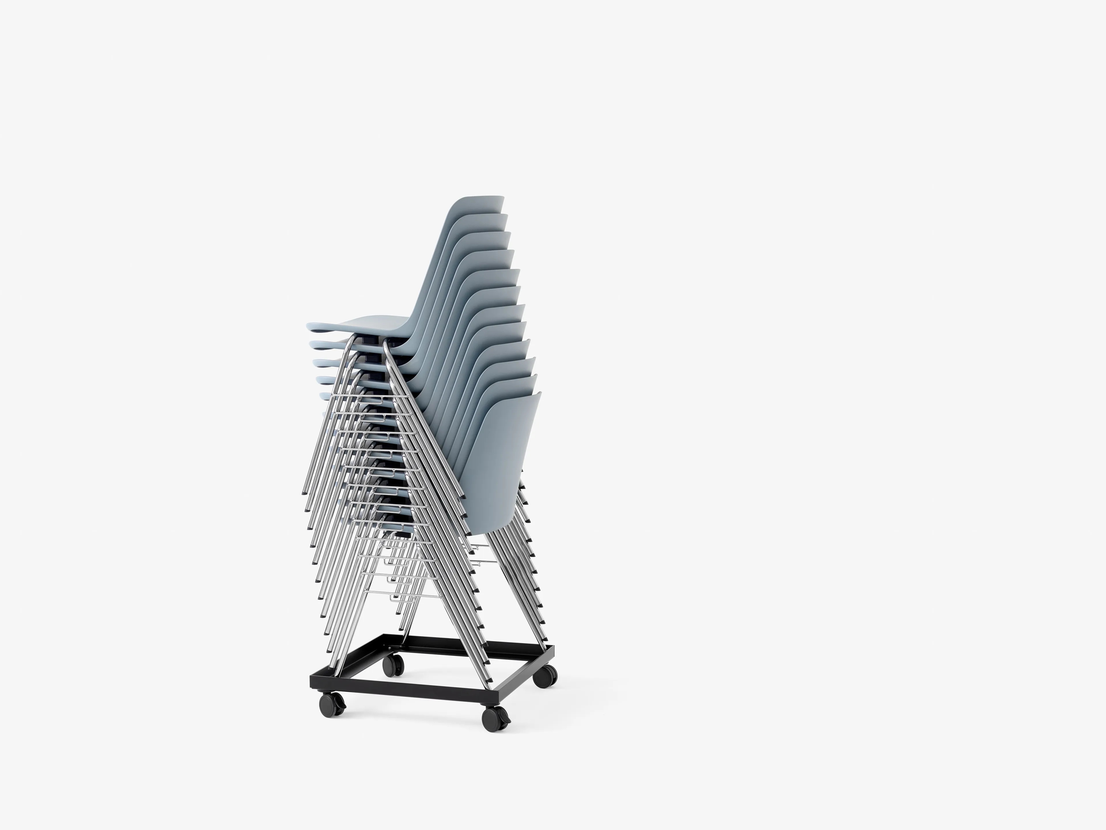 The RELY HW27 offers a blend of sustainability and modern design, ideal for restaurants, conference rooms, coworking spaces, cafés, event venues, and educational institutions. Crafted from 100% recycled polypropylene with fiberglass, this chair features a minimalist yet practical design by Hee Welling. Its ergonomic form ensures comfort, while the stackable design allows for efficient storage, accommodating up to 12 chairs. Available in a spectrum of contemporary colors, the chair can be customized with a variety of upholstery options for added comfort. The durable steel tube base, finished in chrome, complements its sleek appearance. Standard plastic gliders ensure smooth movement, with felt gliders available upon request. This versatile piece seamlessly integrates into any setting, providing durable seating solutions for dining tables, café chairs, and conference room furniture.