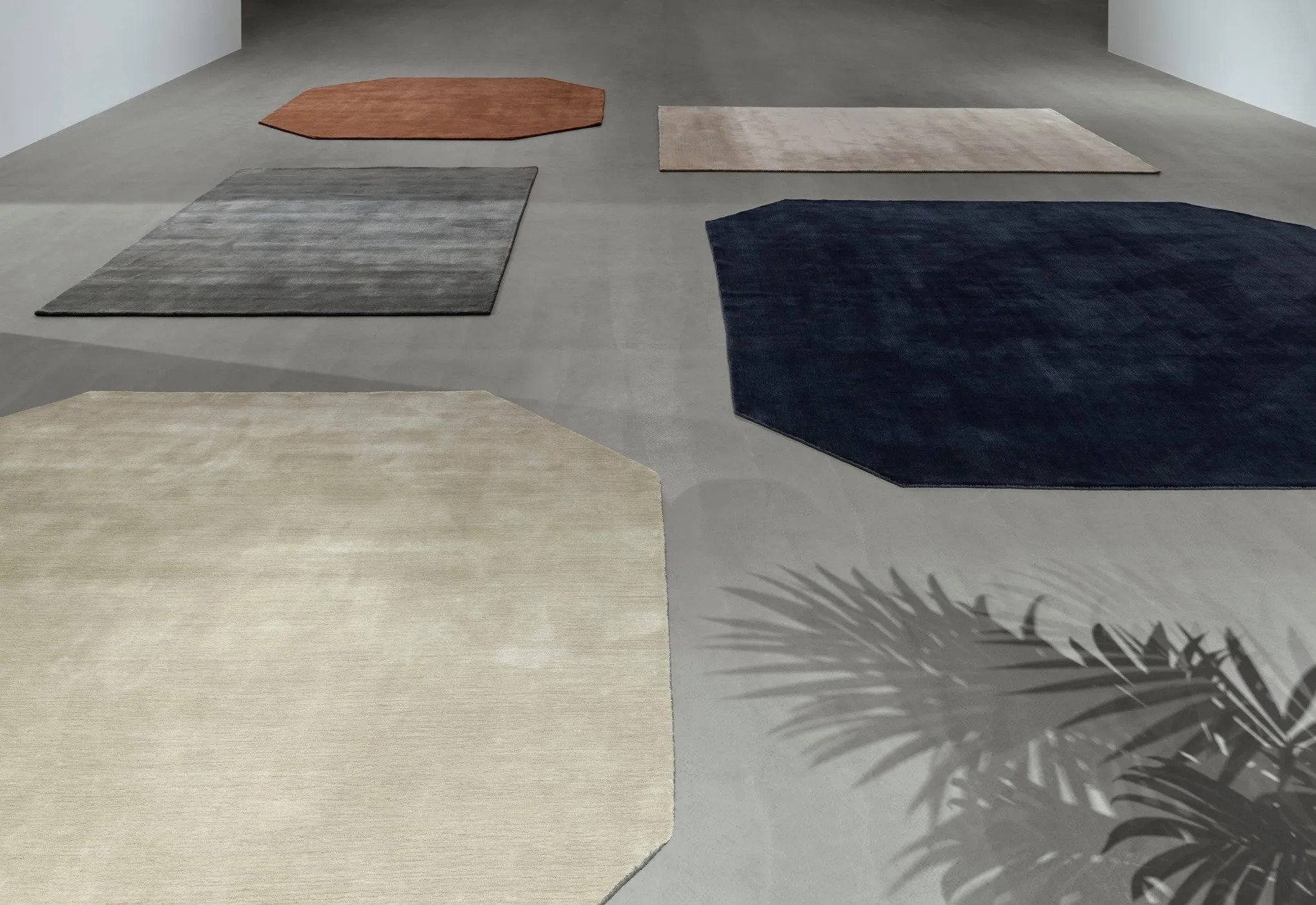THE MOOR AP5 collection emphasizes texture, shape, and rich color depth, offering a sophisticated alternative to patterned designs. Created by founders Tanja Vibe and Petra Olsson Gendt, these luxury rugs and carpets are designed to unify a space both visually and emotionally, providing a sense of cohesion and grounding. Available in six distinct colors, each piece is meticulously handloom-woven, resulting in a dense, soft texture with a velvet-like appearance. The subtle sheen, achieved by blending a small amount of viscose with pure New Zealand wool, enhances its exclusivity. Ideal for hotels, restaurants, cafés, and interior designers seeking durable area rugs, these custom-made rugs for interiors are suitable for indoor use. Available colors include Golden Brown, Red Heather, Blue Midnight, Green Pine, Beige Dew, and Grey-blue Thunder. For maintenance, dry cleaning is recommended.