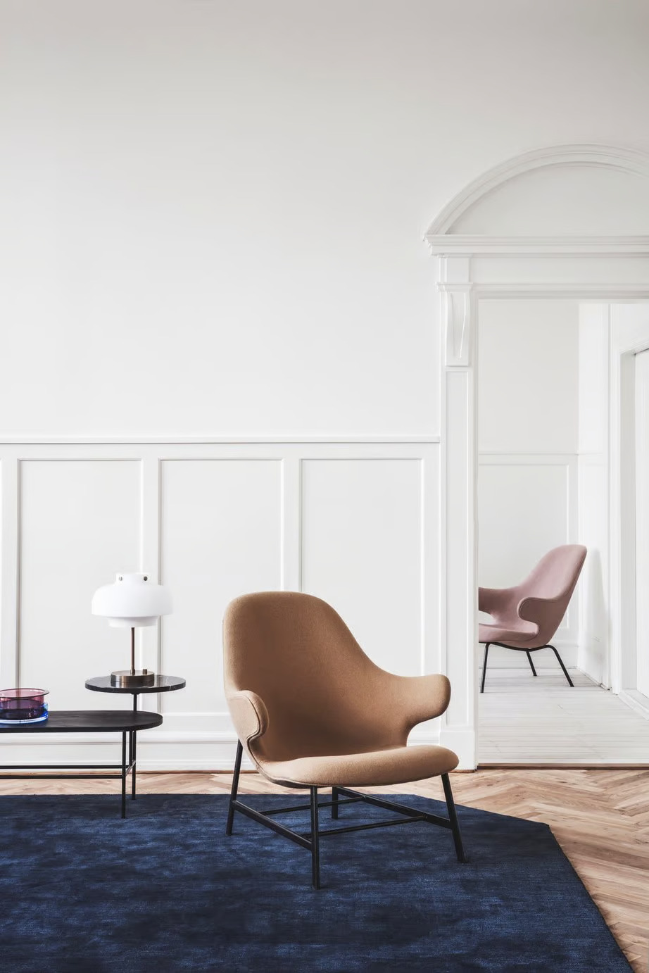 THE MOOR AP8 collection emphasizes texture, shape, and rich color depth, offering a sophisticated alternative to patterned designs. Created by Tanja Vibe and Petra Olsson Gendt, these luxury rugs and carpets are designed to unify spaces both visually and emotionally. Available in six distinct colors, they provide versatile designer textile solutions for various interiors. The handloom-woven production technique results in a dense, soft texture with a velvet-like appearance, enhanced by a subtle sheen from a blend of 85% pure New Zealand wool and 15% viscose. Ideal for durable area rugs in hotels, these custom-made rugs for interiors are suitable for indoor environments. Available colors include Golden Brown, Red Heather, Blue Midnight, Green Pine, Beige Dew, and Grey-blue Thunder. For maintenance, dry cleaning is recommended.