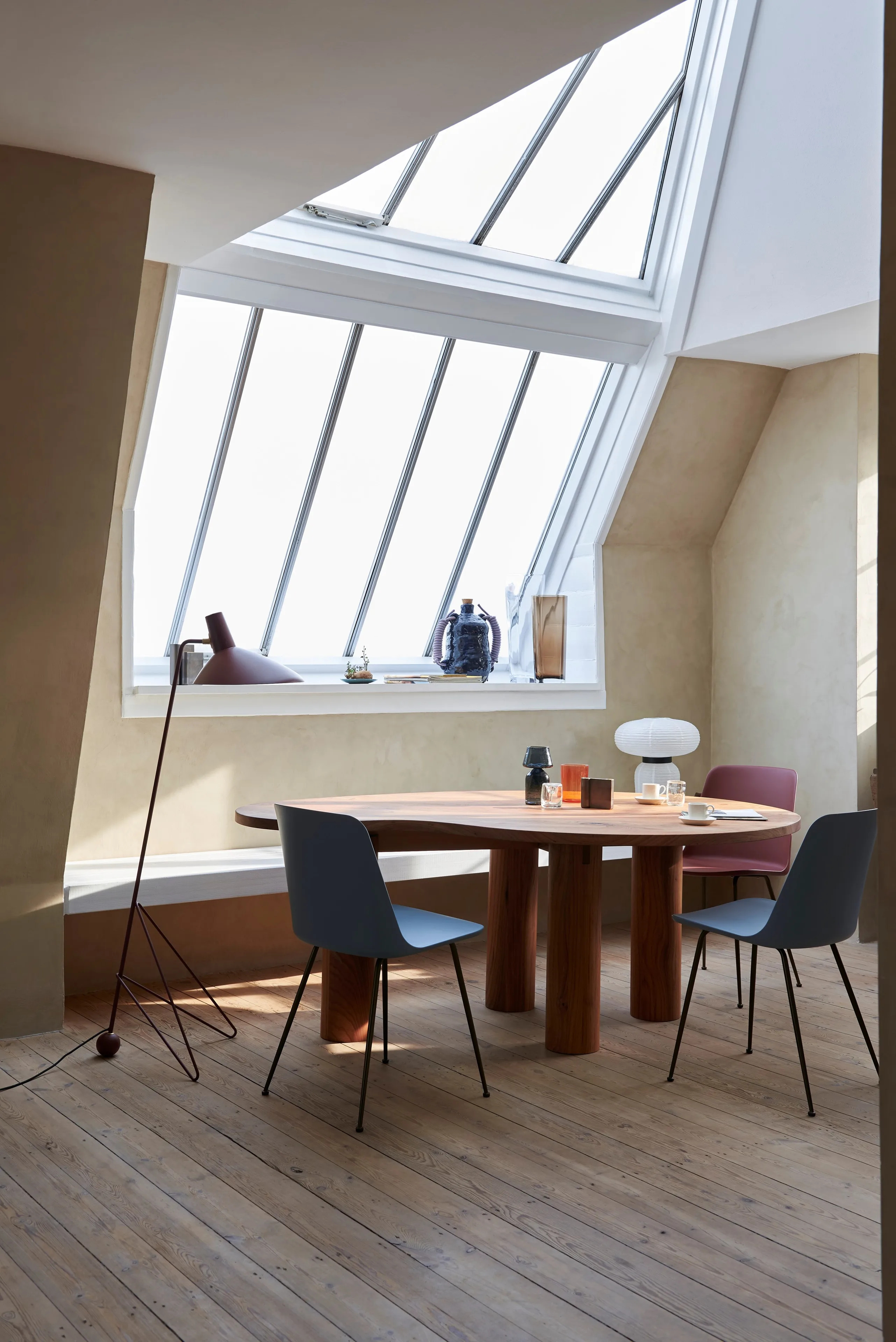 The TRIPOD HM8 embodies the minimalist elegance of Hvidt & Mølgaard's 1953 design, now crafted for modern spaces. This LED interior lighting fixture features a lacquered steel frame with brass accents, offering a harmonious blend of simplicity and subtle curves. Available in Black, Maroon, and Moss, it complements various interior styles. The shade, spun from a single piece of aluminum, is fixed and non-adjustable, ensuring consistent ambient lighting. The base, constructed from bent steel tubes, is welded for durability and finished with a satin matte lacquer. Compatible with E27 bulbs up to 60 watts, it supports energy-efficient lighting designs. The 2-meter fabric cord includes an on/off switch for convenience. Certified with CE, IP20, and Class II standards, this decorative pendant light is suitable for indoor environments. Clean with a soft, dry cloth, ensuring the power supply is off during maintenance.
