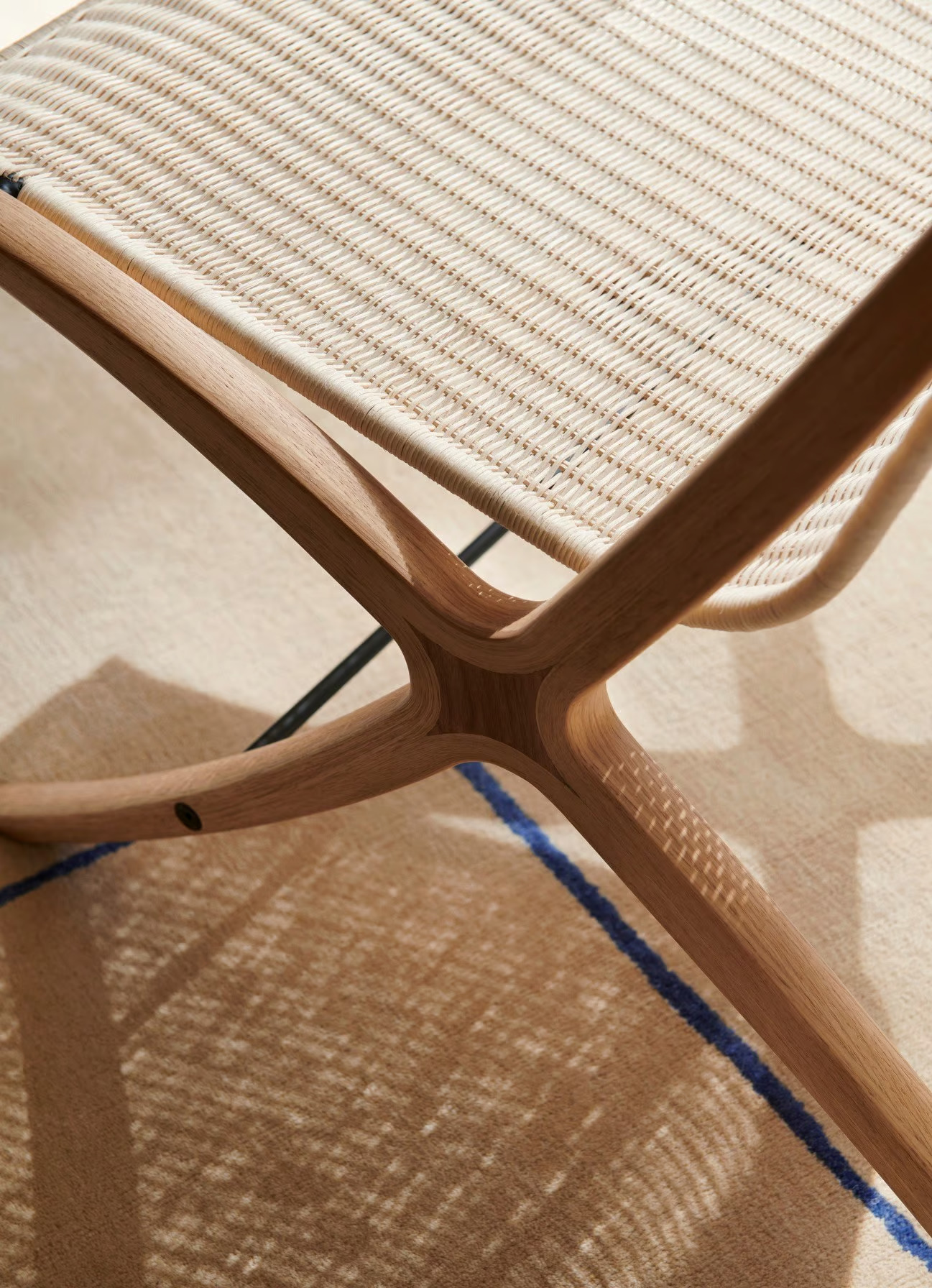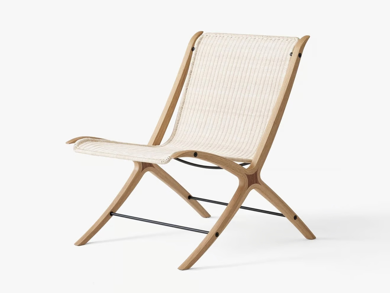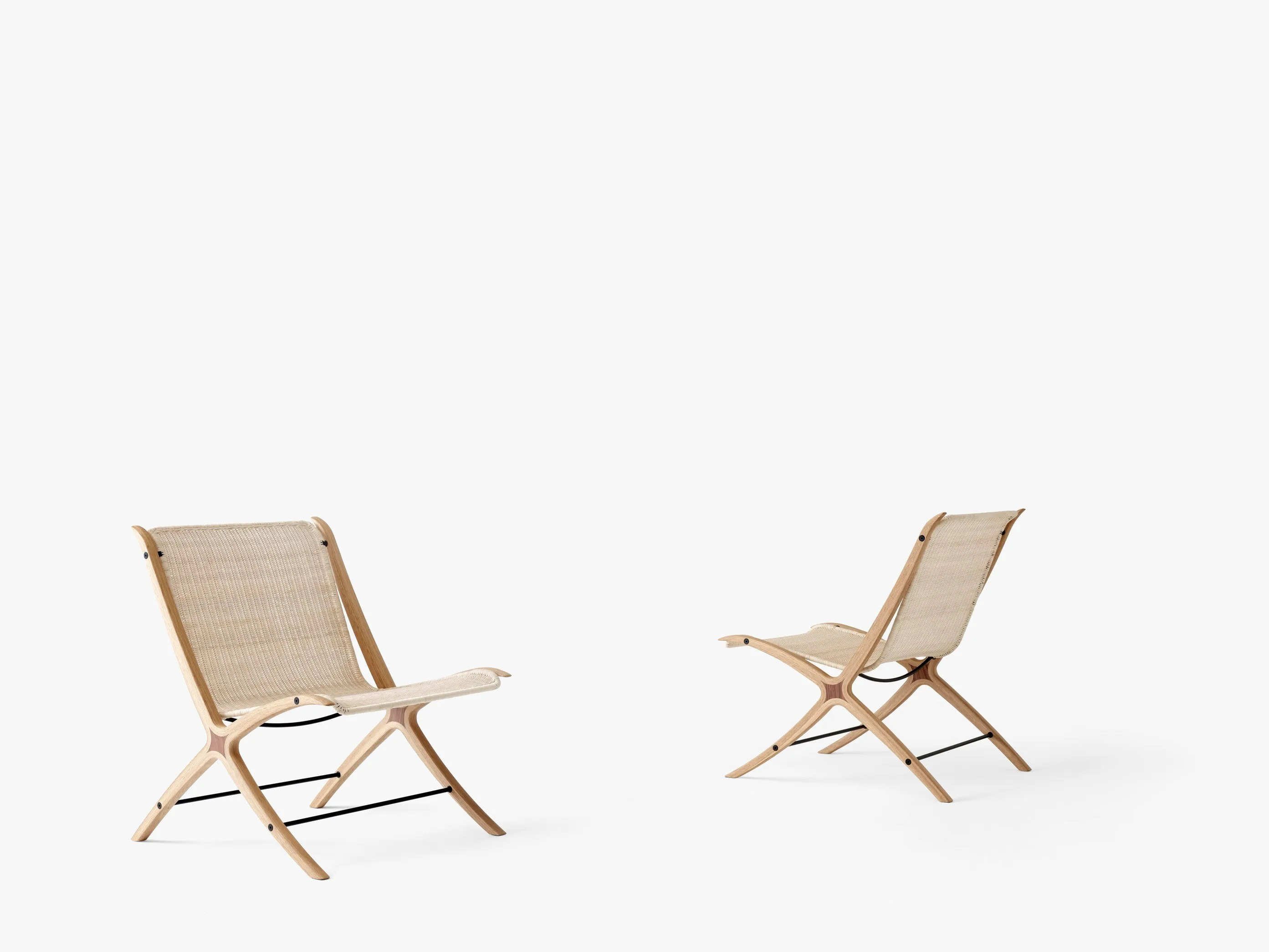 The X HM10 offers a blend of modern lounge furniture and timeless design, ideal for hotels, cafés, lounges, waiting rooms, and residential interiors. Crafted by the renowned Danish design duo Hvidt & Mølgaard, this piece features a laminated wooden frame inspired by vintage tennis rackets, showcasing a unique sloping silhouette. The oak frame with walnut inserts and a natural rattan seat provides both durability and elegance. The production process involves form-pressing veneer sheets around a solid wood insert, milled into shape, and finished with a lacquer. The natural rattan is intricately woven around a powder-coated stainless steel frame, ensuring a robust and stylish seating solution. Produced in China by NUSH, the X HM10 is a testament to quality craftsmanship and sophisticated design.