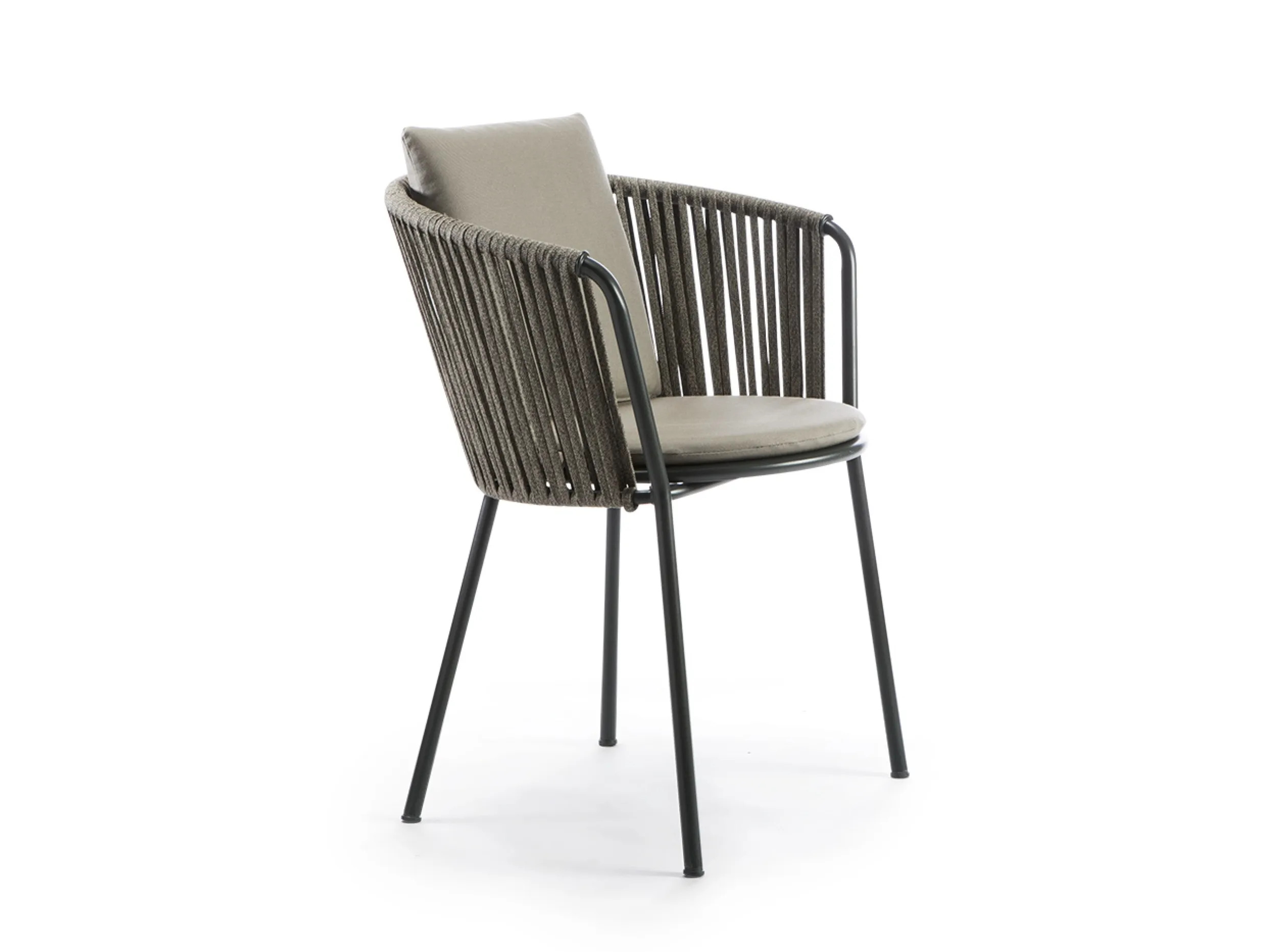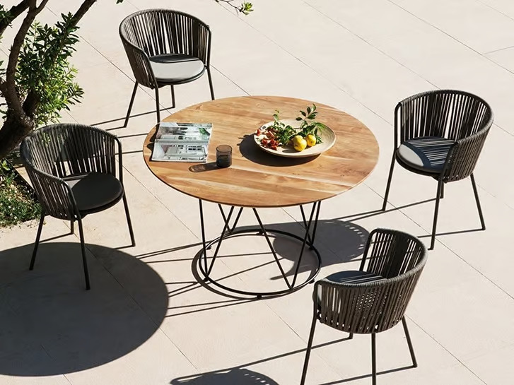 The DAISY ROPE garden chair combines synthetic rope craftsmanship with fabric cushions, offering a versatile seating solution for diverse environments. Available in a range of colors, this chair is designed to complement dining tables and modern design tables in restaurants, conference rooms, coworking spaces, cafés, and event venues. Its ergonomic design ensures comfort, making it an ideal choice for educational institutions and banquet halls. The chair's stackable feature provides practical storage and space-saving benefits, while its durable construction ensures long-lasting use. Perfectly suited for café chairs and conference room furniture, the DAISY ROPE chair seamlessly blends style with functionality, enhancing any setting with its contemporary appeal.