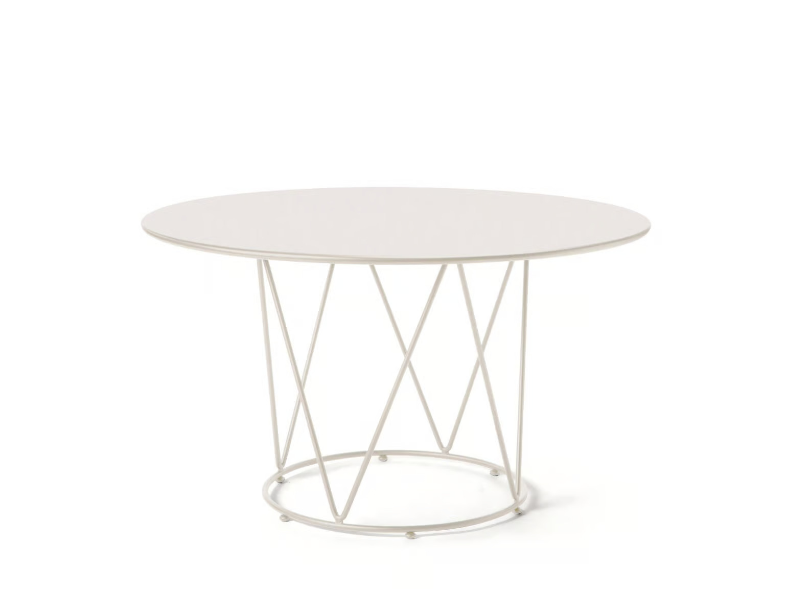 The DAISY round table features a metal top and structure, available in various finishes and three distinct sizes. This collection embodies a contemporary aesthetic, blending basic geometric shapes with clean lines to create a dynamic and functional setting. Ideal for both indoor and outdoor environments, DAISY seamlessly fits into diverse spaces such as restaurants, conference rooms, coworking areas, cafés, event venues, and educational institutions. Its versatile design makes it a suitable choice for dining tables and conference room furniture. The table's robust construction ensures durability, while its modern design complements ergonomic and stackable café chairs, providing practical and stylish seating solutions.