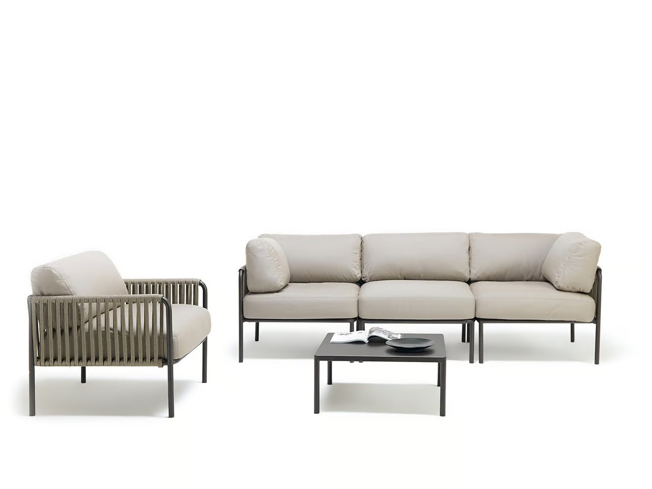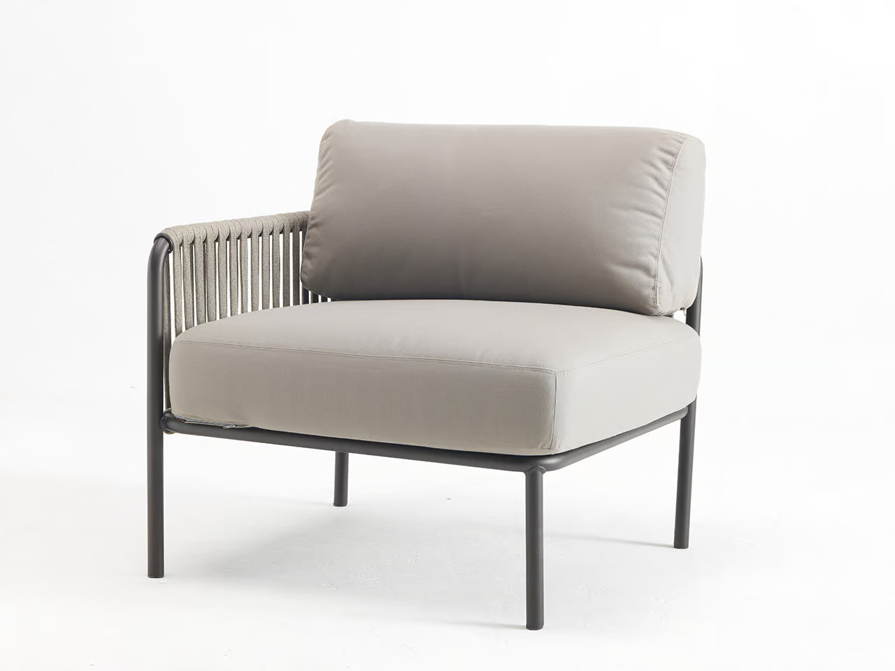 The KEY WEST corner armchair features a padded metal structure enveloped in acrylic fabric, available in a variety of colors. This collection emphasizes elegance, charm, and functionality, making it ideal for resorts, cafés, restaurants, outdoor event planners, and beachside hotels. The armchair is part of a versatile range of modular outdoor seating, designed to offer contemporary and adaptable seating solutions. Crafted with the latest generation materials, it ensures durability and resilience, suitable for all-weather conditions. This piece complements garden furniture sets and serves as a comfortable addition to poolside loungers. Its robust design and durable construction make it a reliable choice for those seeking durable patio chairs and all-weather outdoor furniture.