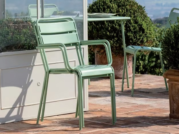 The TWIST Chair with armrests is a versatile seating solution designed for various environments, including restaurants, conference rooms, coworking spaces, cafés, event venues, and educational institutions. This metal armchair is available in a range of colors, offering flexibility to match diverse interior and exterior settings. Its durable construction makes it ideal for both indoor and outdoor use, ensuring longevity in high-traffic areas. The chair's ergonomic design provides comfort, while its stackable feature allows for efficient storage, making it a practical choice for spaces that require adaptable seating arrangements. Perfectly complementing modern design tables, the TWIST Chair enhances any setting with its sleek and functional aesthetic.