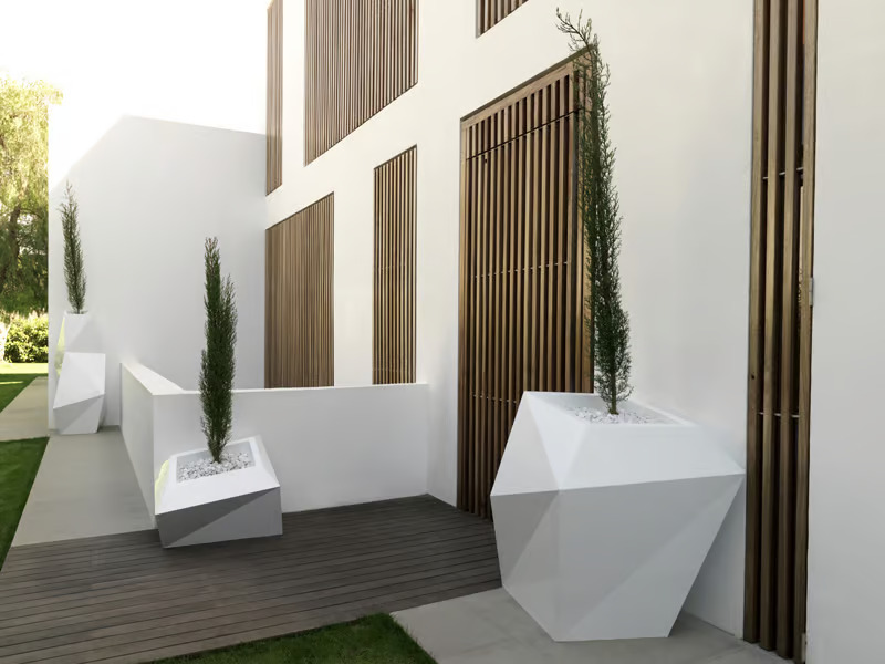 The FAZ Low Garden Vase, part of the modular outdoor collection designed by Ramón Esteve for VONDOM, embodies a harmonious blend of elegance and durability. Crafted from high-quality resin using rotational molding, this piece is designed to withstand the elements, making it ideal for resorts, cafés, restaurants, outdoor event planners, and beachside hotels. Its mineral-inspired design seamlessly integrates with contemporary architecture, offering a sophisticated touch to any setting. The vase's ergonomic shape ensures it complements both terraces and dining areas without compromising on style or comfort. Available in a variety of finishes and colors, the FAZ collection is renowned for its all-weather resilience, making it a perfect addition to any garden furniture set or modular outdoor seating arrangement.
