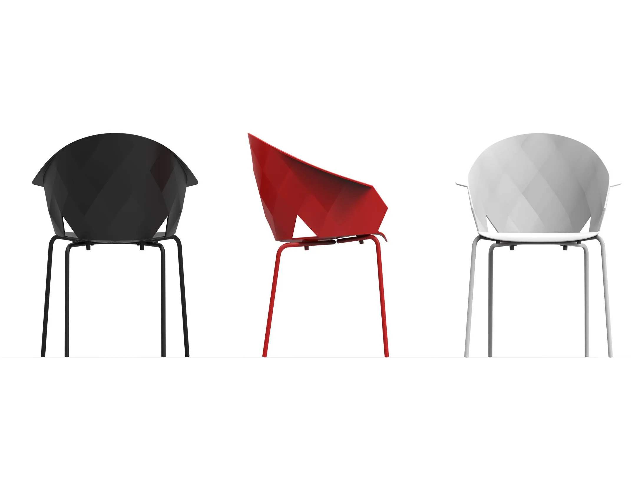 The VASES collection, designed by Valencian designer JM Ferrero, offers a versatile range of furniture, planters, and lighting. Inspired by the geometric elegance of diamonds, these pieces deliver a striking visual presence. The collection now includes a modern set of stools and tables, ideal for both indoor and outdoor settings. The bar stool features a stainless steel footrest and base, with a seat crafted from injected plastic, echoing the collection's signature diamond-inspired design. The bar table boasts a round steel base and a polyethylene central support, topped with HPL available in various colors. These durable seating options and modern design tables are perfect for dining tables, café chairs, and conference room furniture, offering stackable and ergonomic solutions for diverse environments.