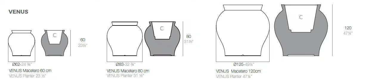 The VENUS collection, crafted by Marcel Wanders for Vondom, is designed to enhance outdoor spaces with its elegant and versatile features. Available in three sizes, these pieces are perfect for resorts, cafés, restaurants, and beachside hotels. The collection's color palette and texture provide a sophisticated warmth, ideal for creating a glamorous atmosphere. Manufactured using advanced rotomoulding techniques, each piece ensures durability and attention to detail, making it suitable for all-weather conditions. This modular outdoor seating option is complemented by the availability of integrated lighting, adding a touch of refinement to any setting. Ideal for those seeking durable outdoor furniture, these all-weather chairs and garden furniture sets offer both style and functionality.